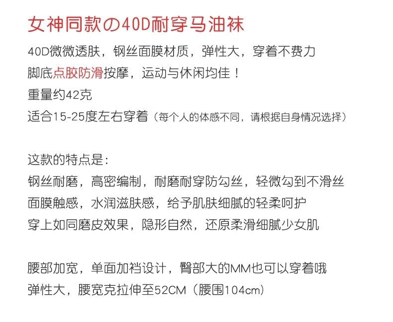 40d 실크 마스크, 마유 양말, 봄 여름 배 조절 및 엉덩이 리프팅, 광택 레그 아티팩트, 걸림 방지, 흔적 커버, 보이지 않는 워터 글로시 스타킹