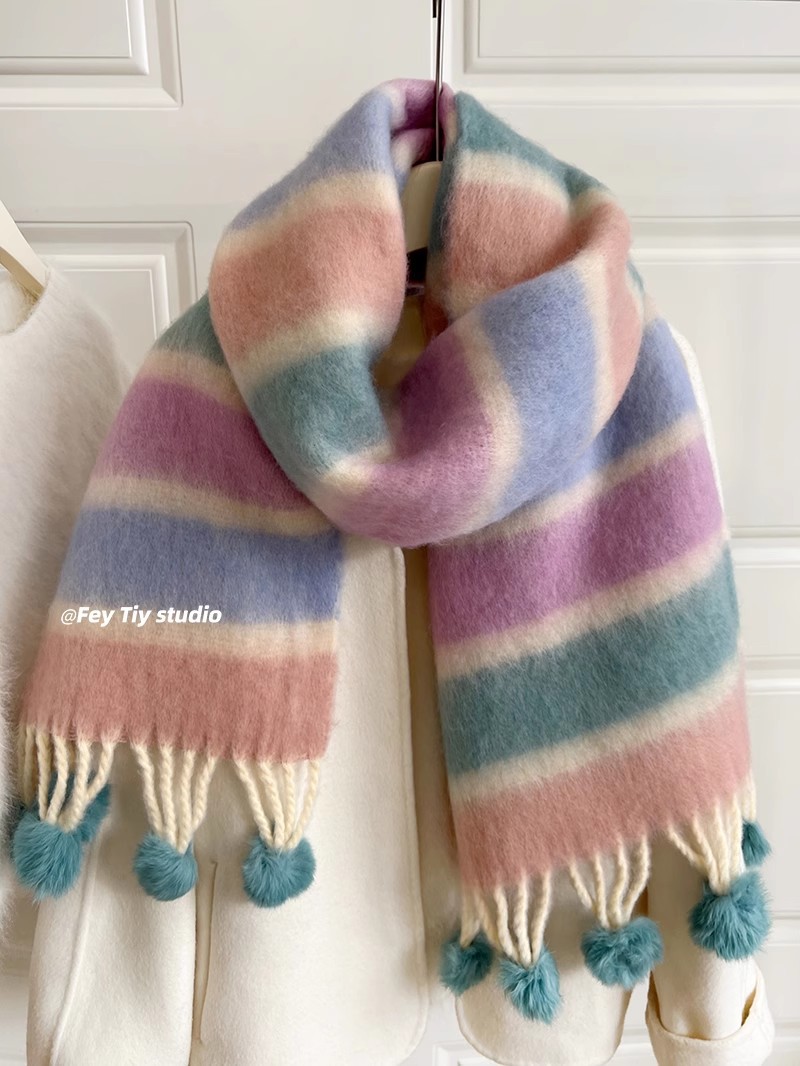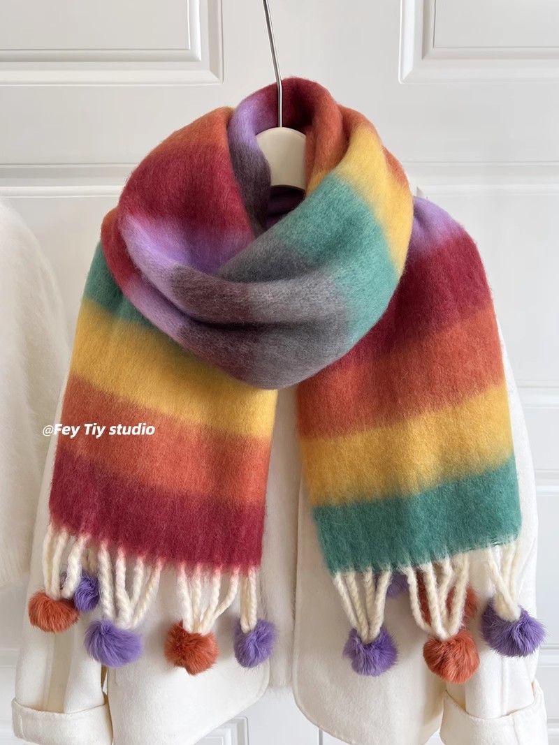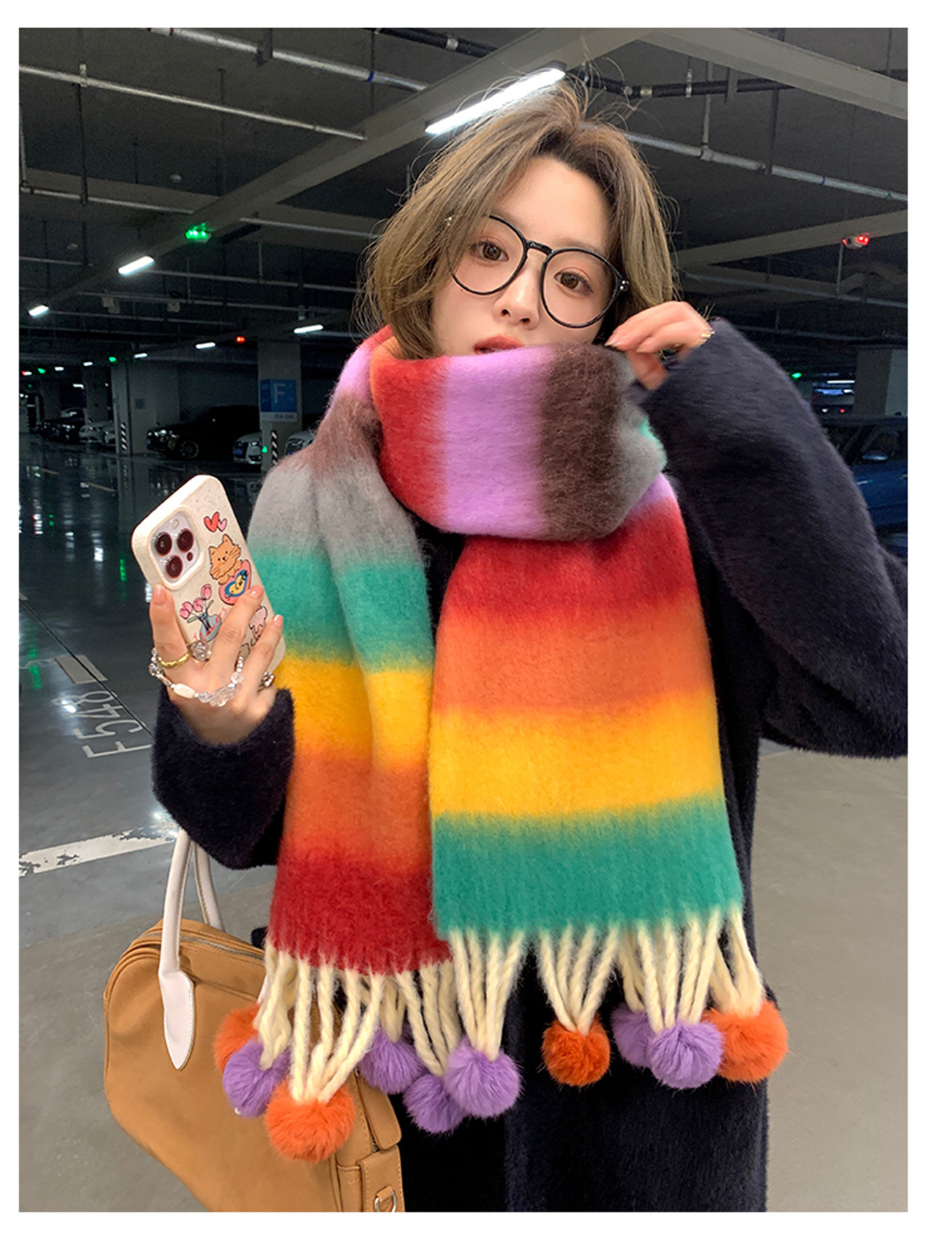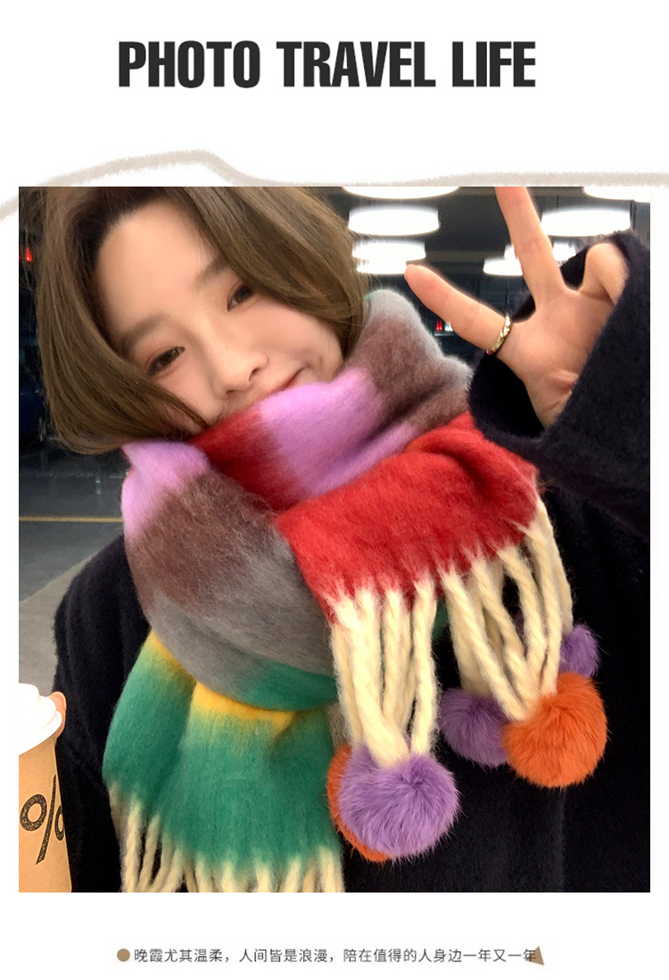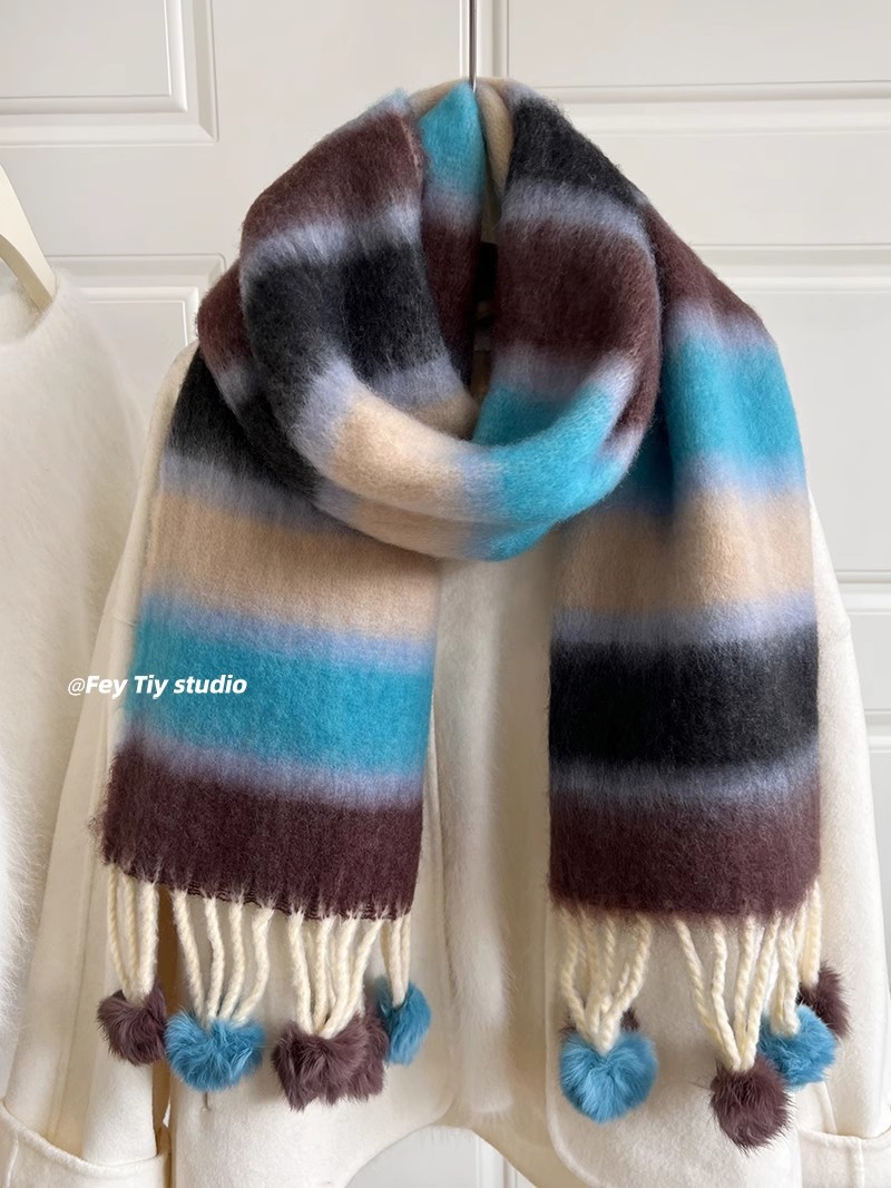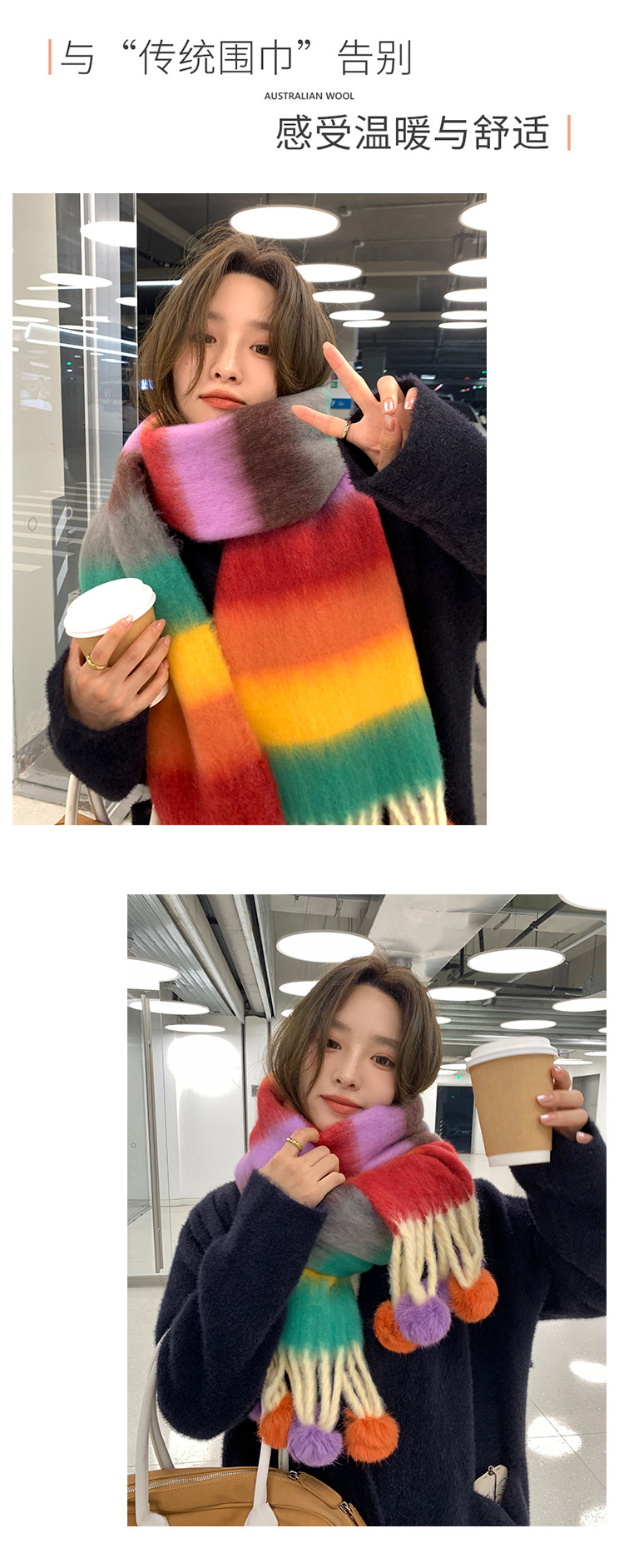 고급 무지개 색 모셀 모피 볼 스카프 목도리 여성 이중 사용 가을과 겨울 따뜻한 한국식 스카프스토어 가기