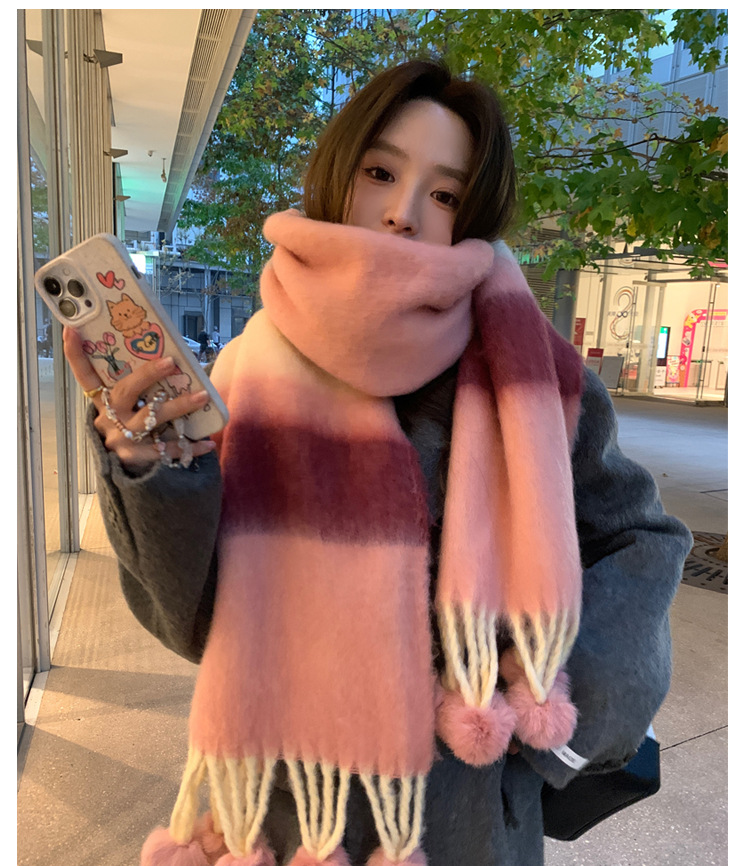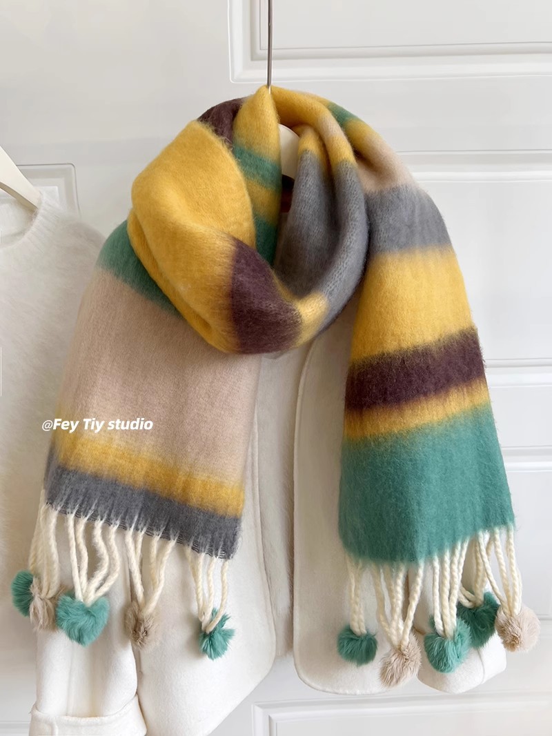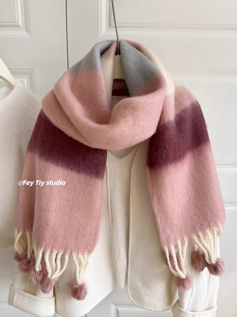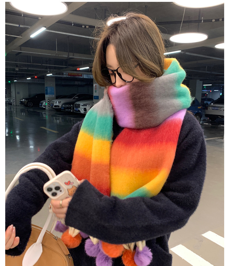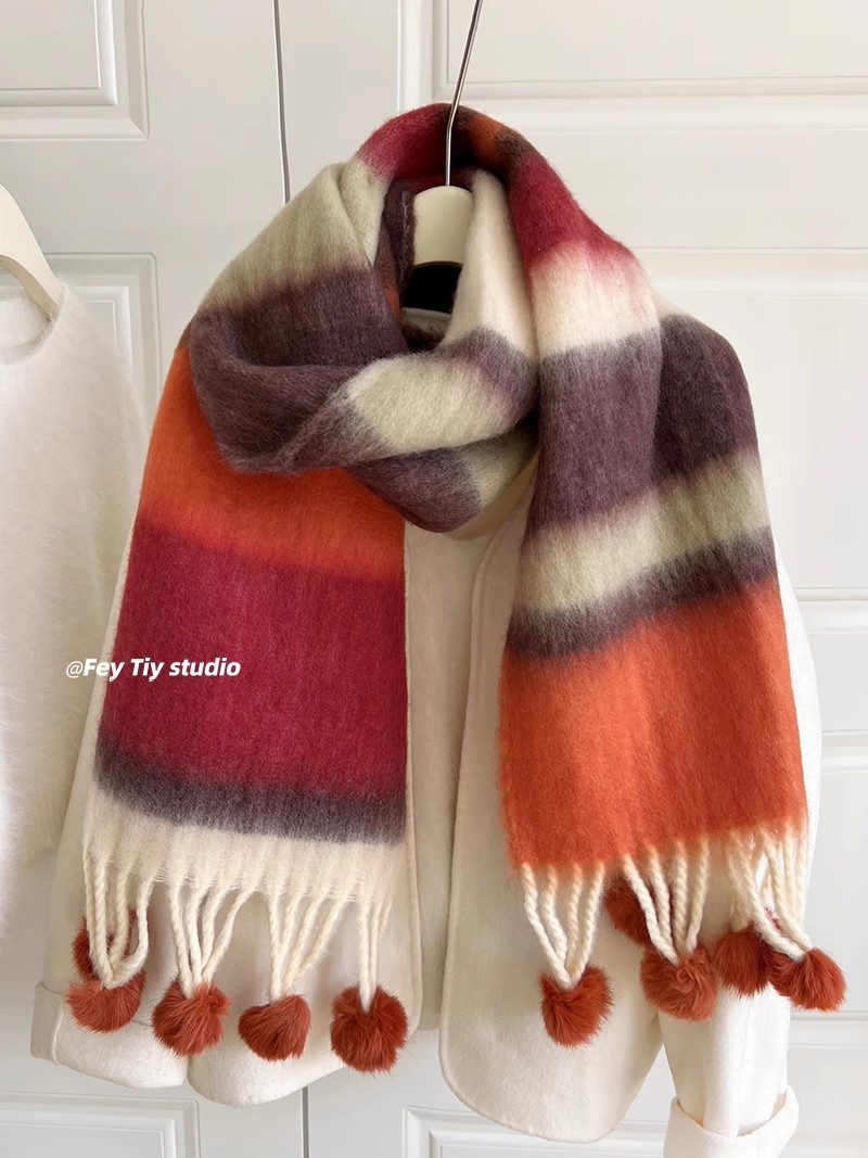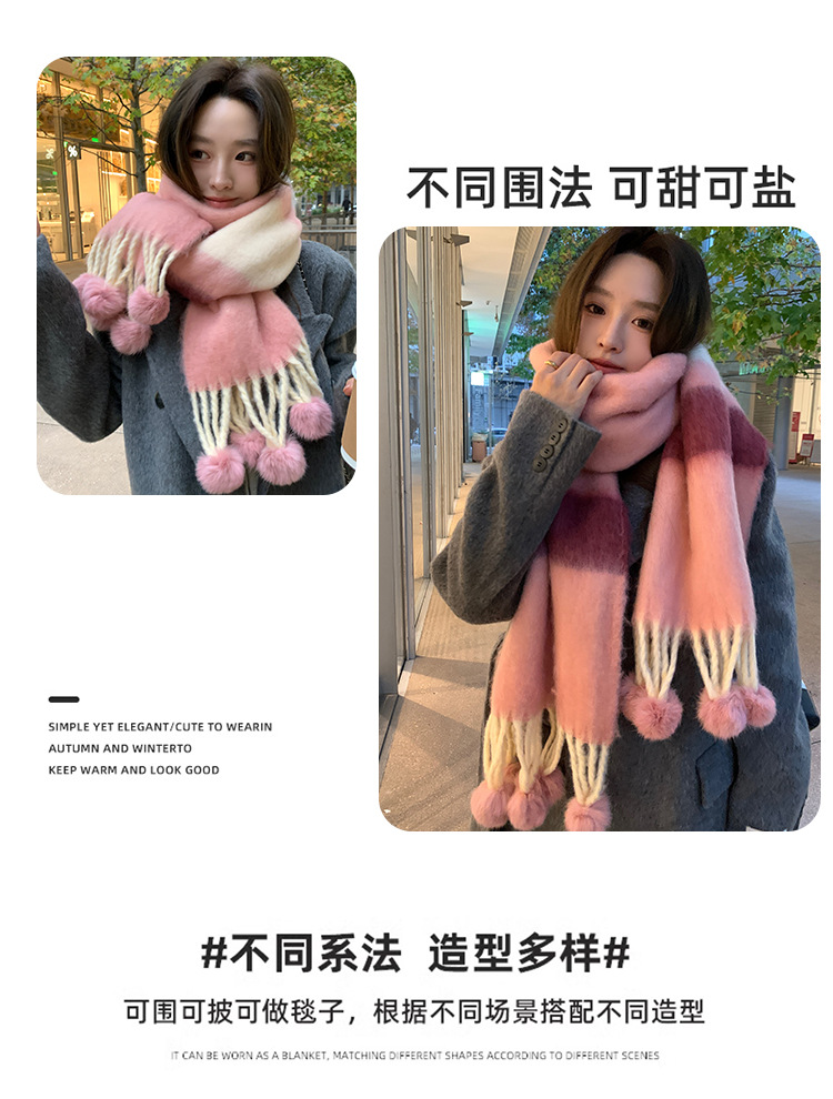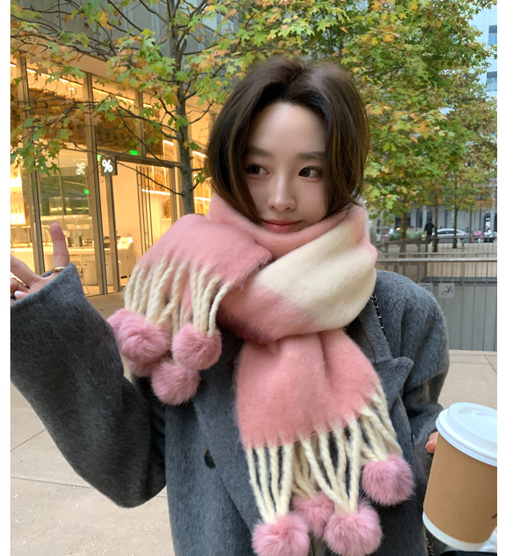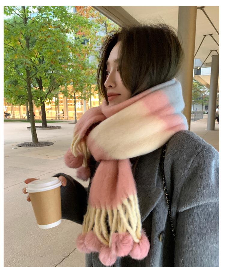 고급 무지개 색 모셀 모피 볼 스카프 목도리 여성 이중 사용 가을과 겨울 따뜻한 한국식 스카프스토어 가기