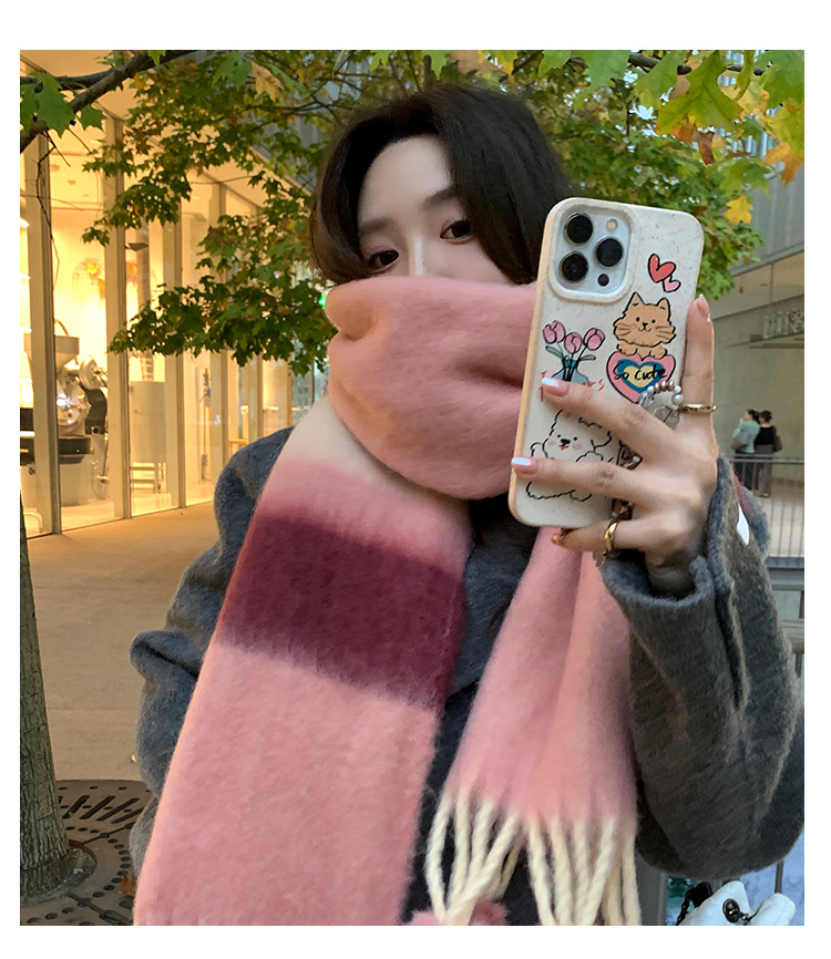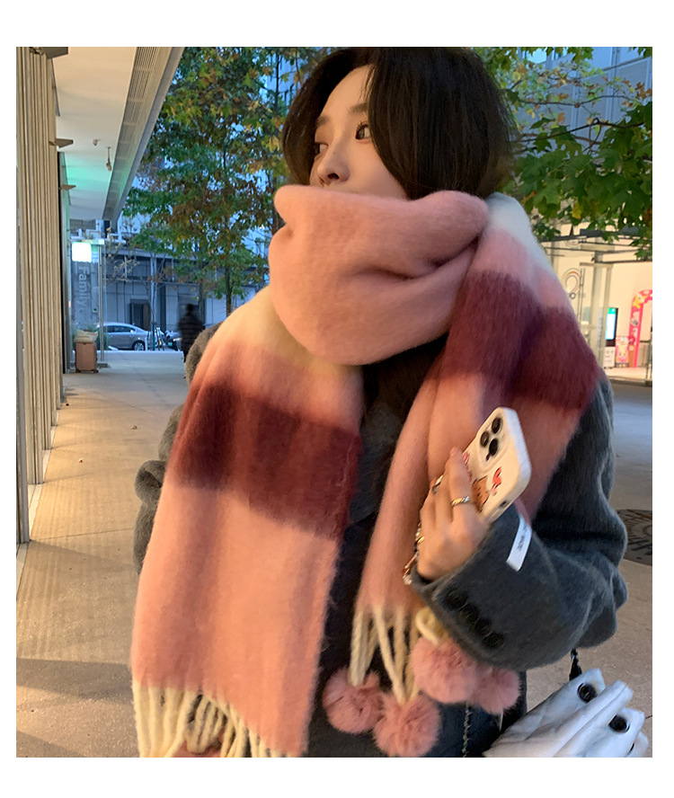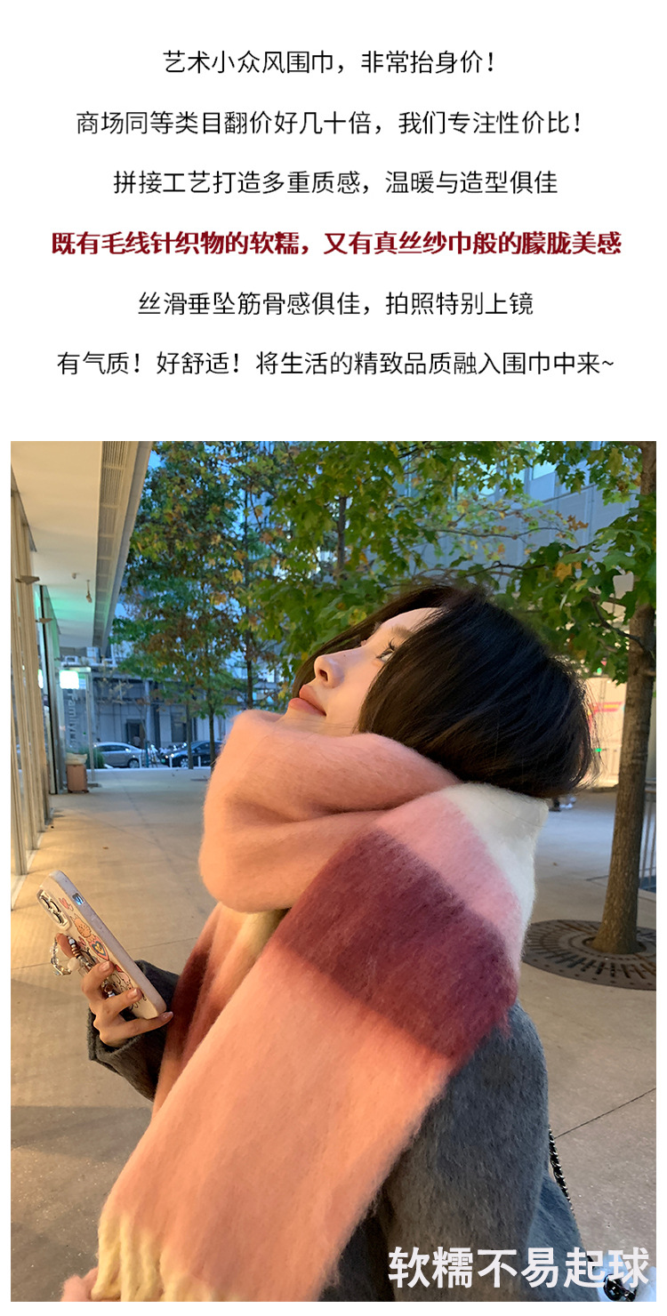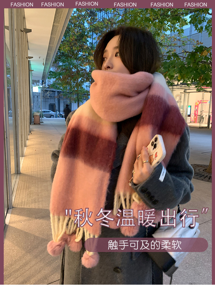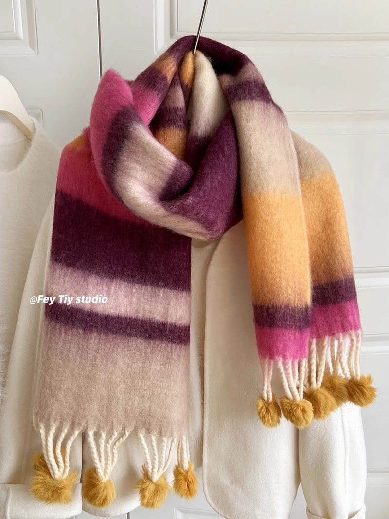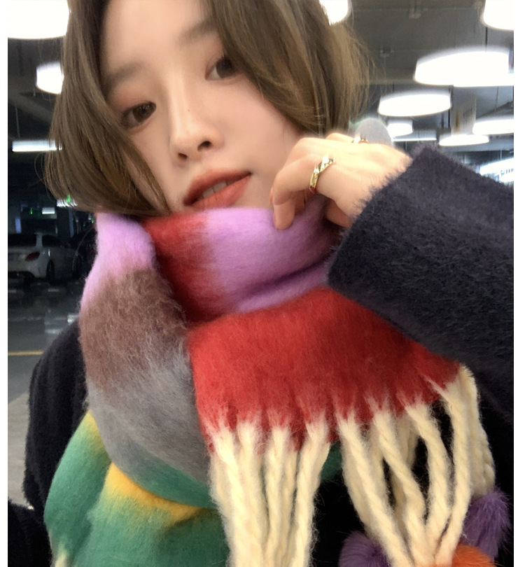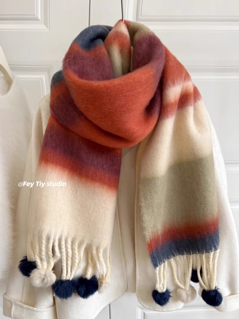 고급 무지개 색 모셀 모피 볼 스카프 목도리 여성 이중 사용 가을과 겨울 따뜻한 한국식 스카프스토어 가기