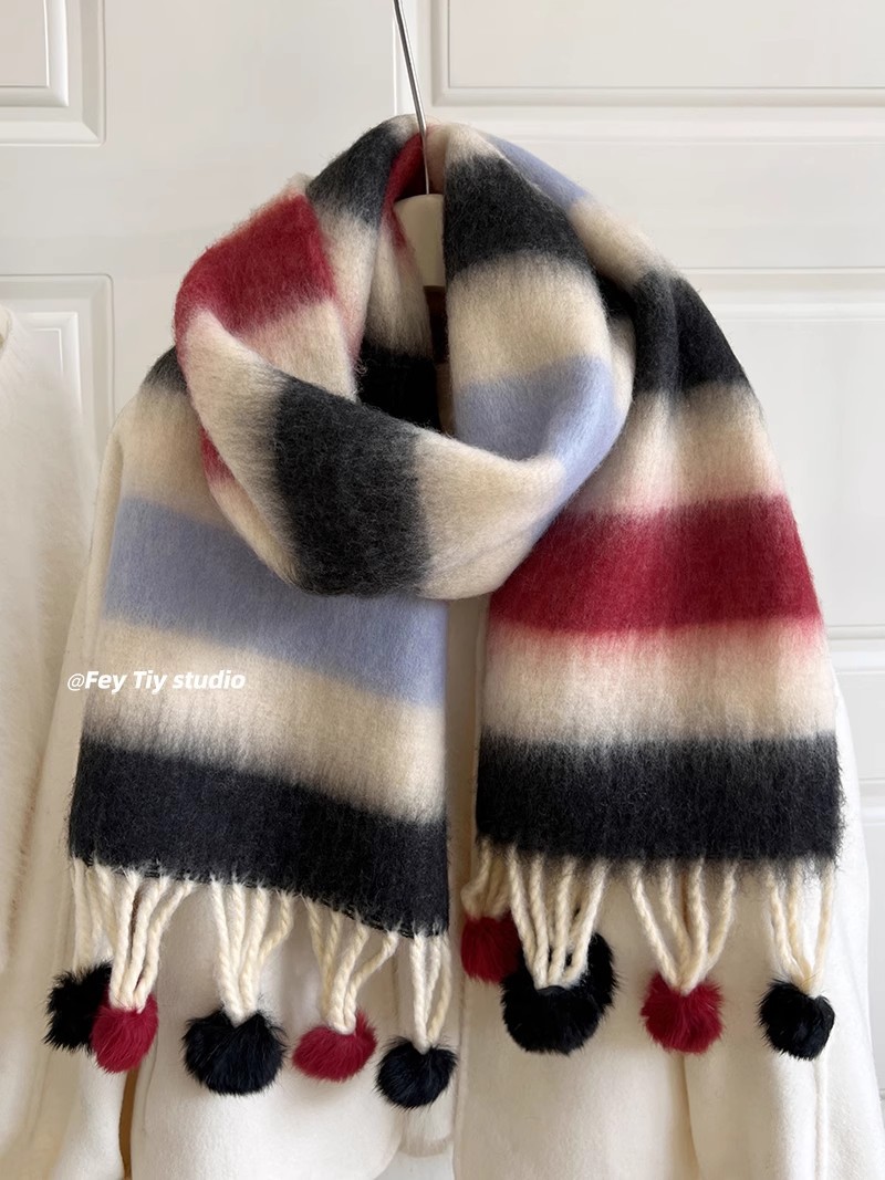 고급 무지개 색 모셀 모피 볼 스카프 목도리 여성 이중 사용 가을과 겨울 따뜻한 한국식 스카프