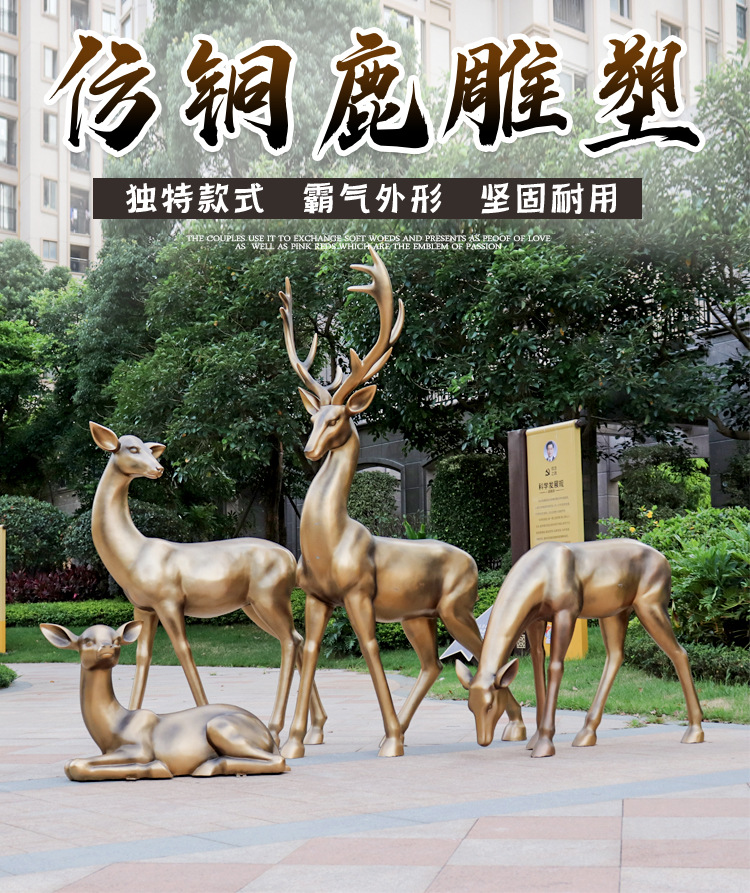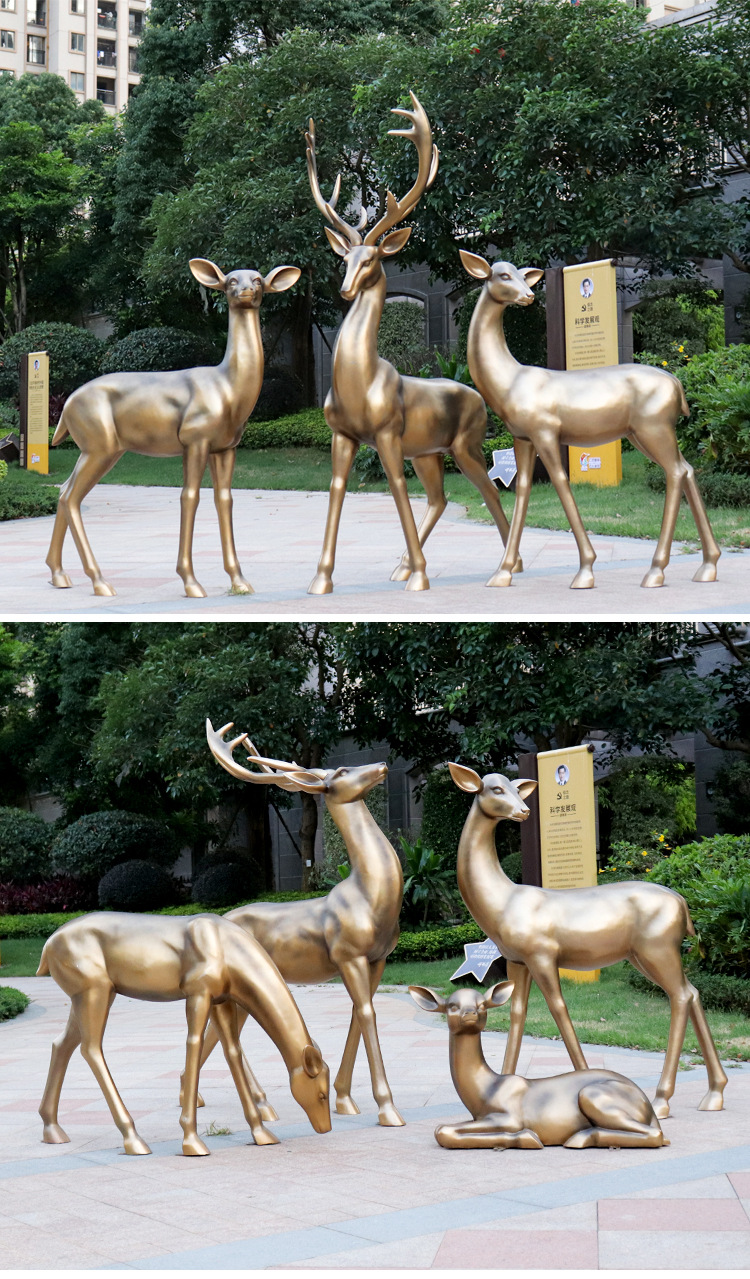 야외 유리 섬유 강화 플라스틱 모방 구리 사슴 조각 사업 지구 유치원 마스코트 야외 정원 아름다움 첸 Xiangrui 장식품