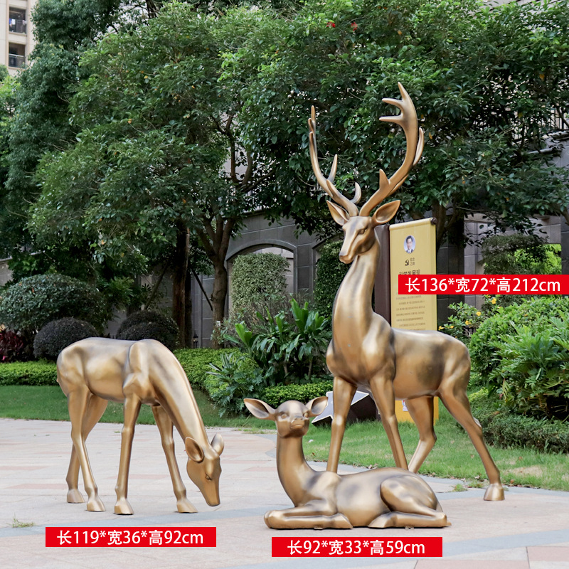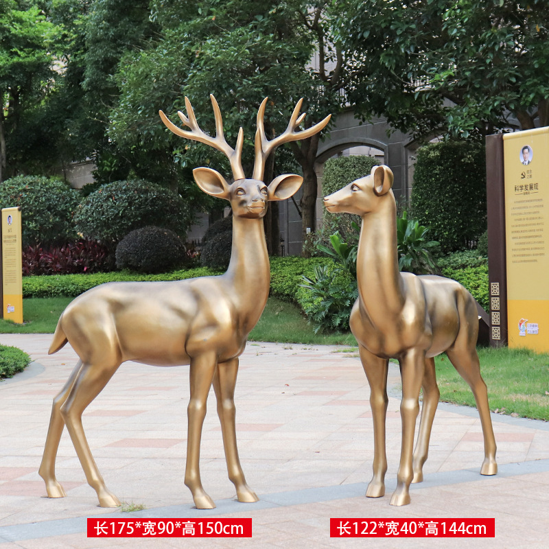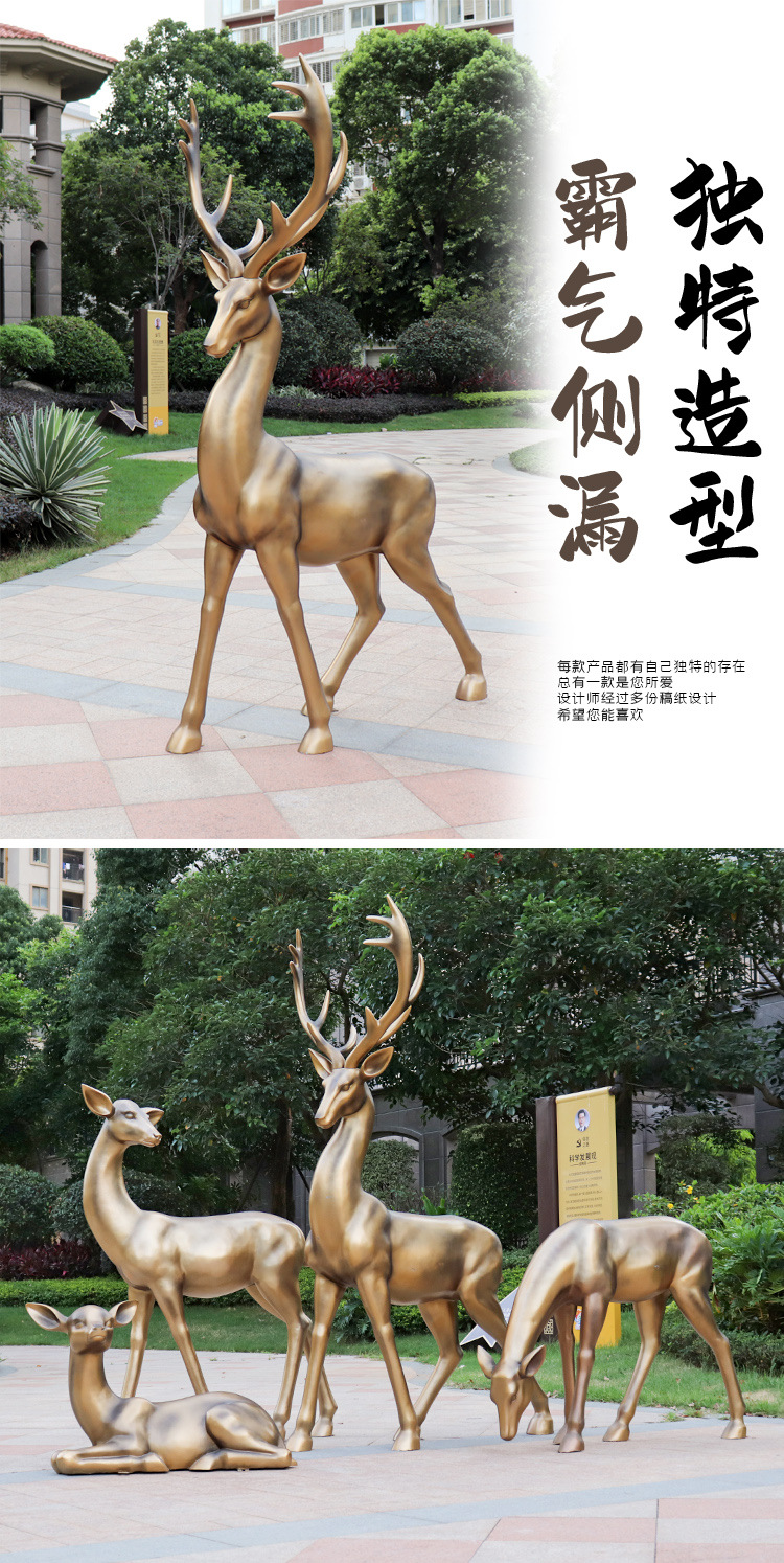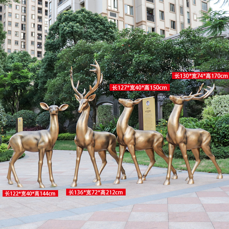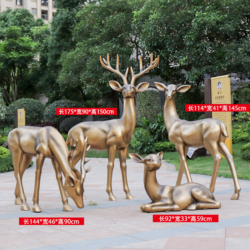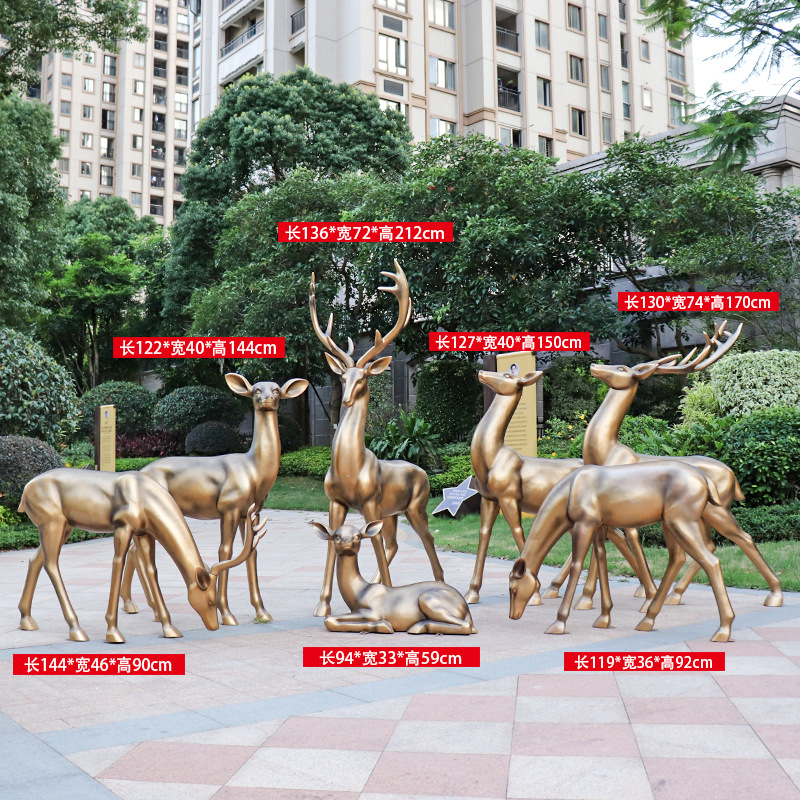 야외 유리 섬유 강화 플라스틱 모방 구리 사슴 조각 사업 지구 유치원 마스코트 야외 정원 아름다움 첸 Xiangrui 장식품스토어 가기