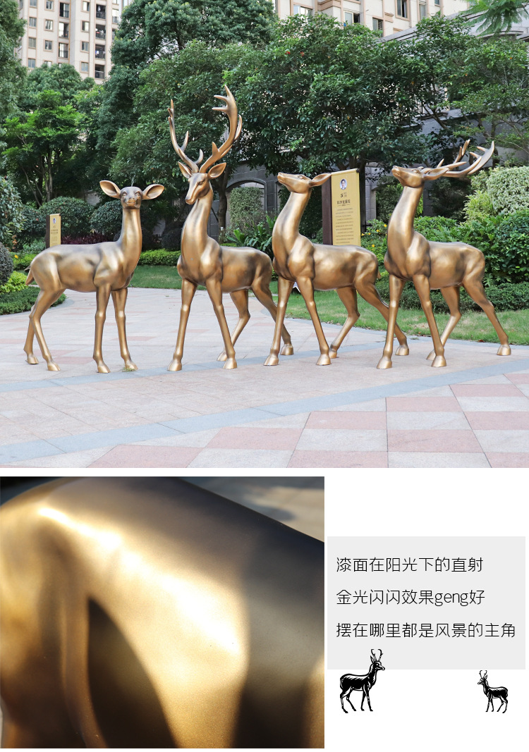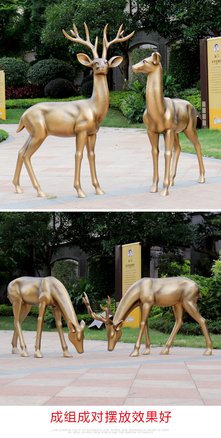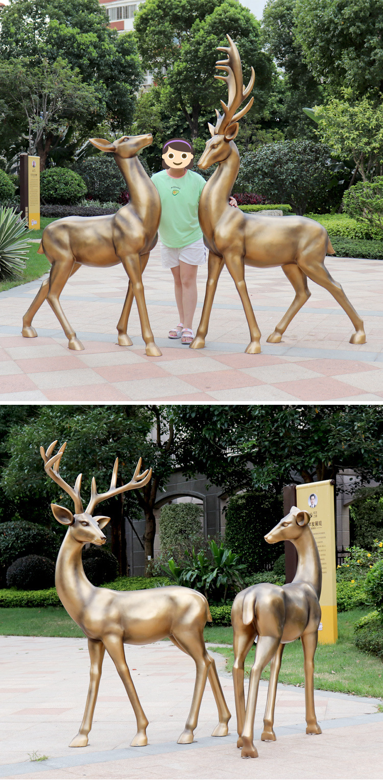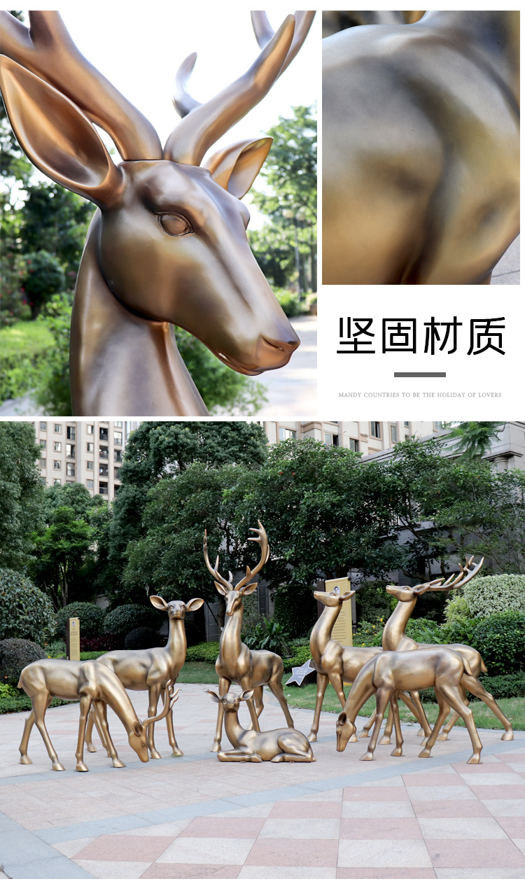 야외 유리 섬유 강화 플라스틱 모방 구리 사슴 조각 사업 지구 유치원 마스코트 야외 정원 아름다움 첸 Xiangrui 장식품스토어 가기