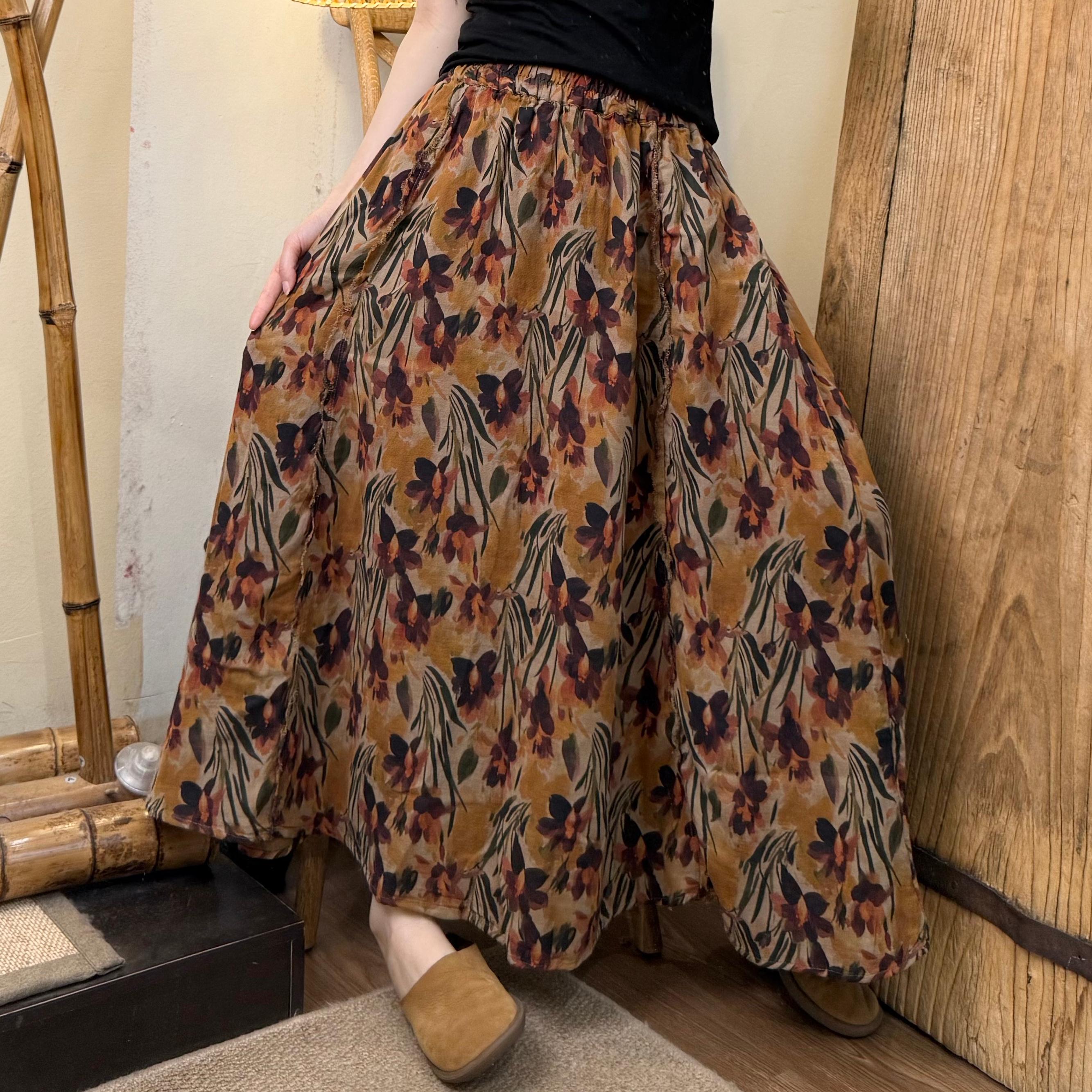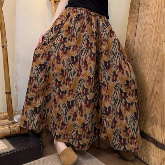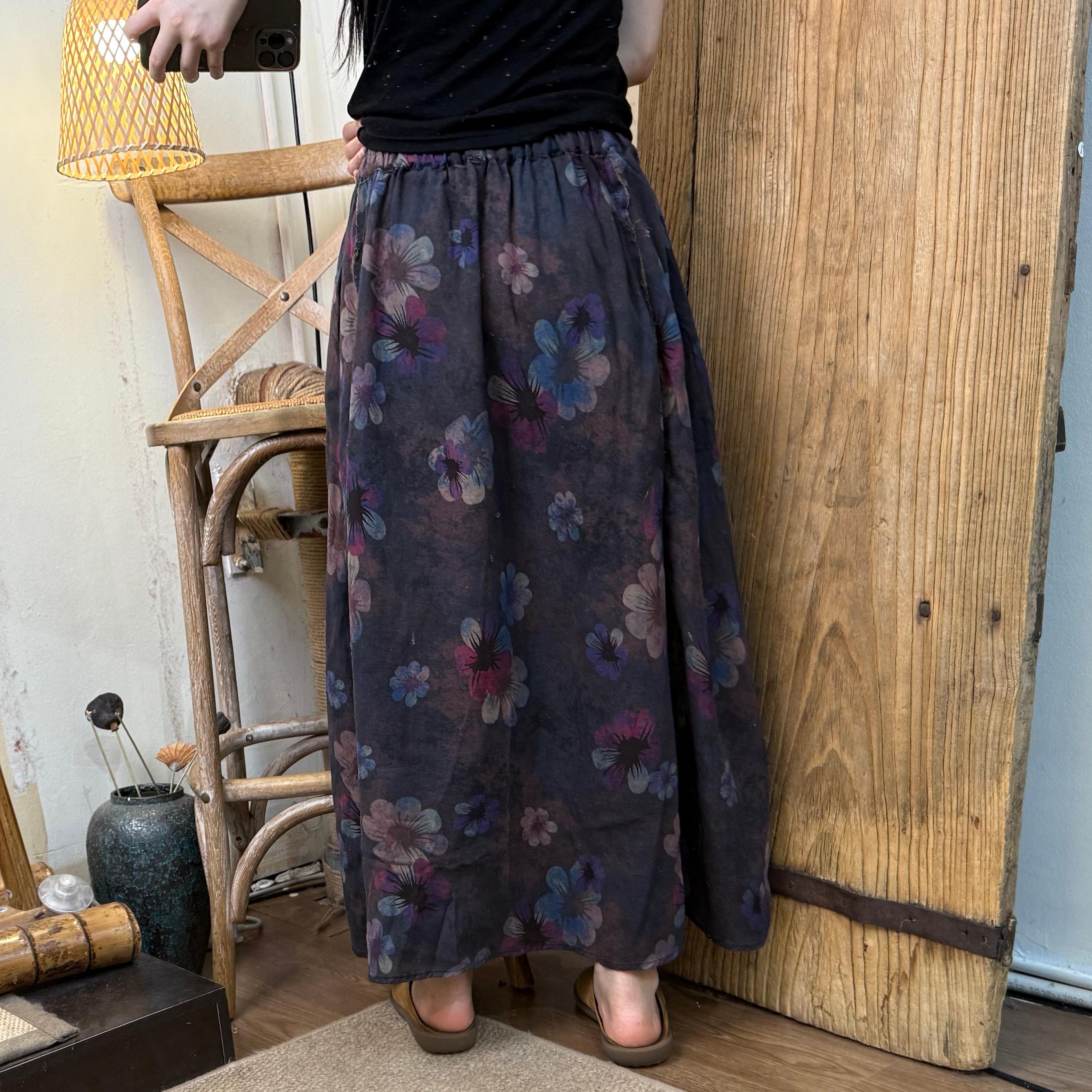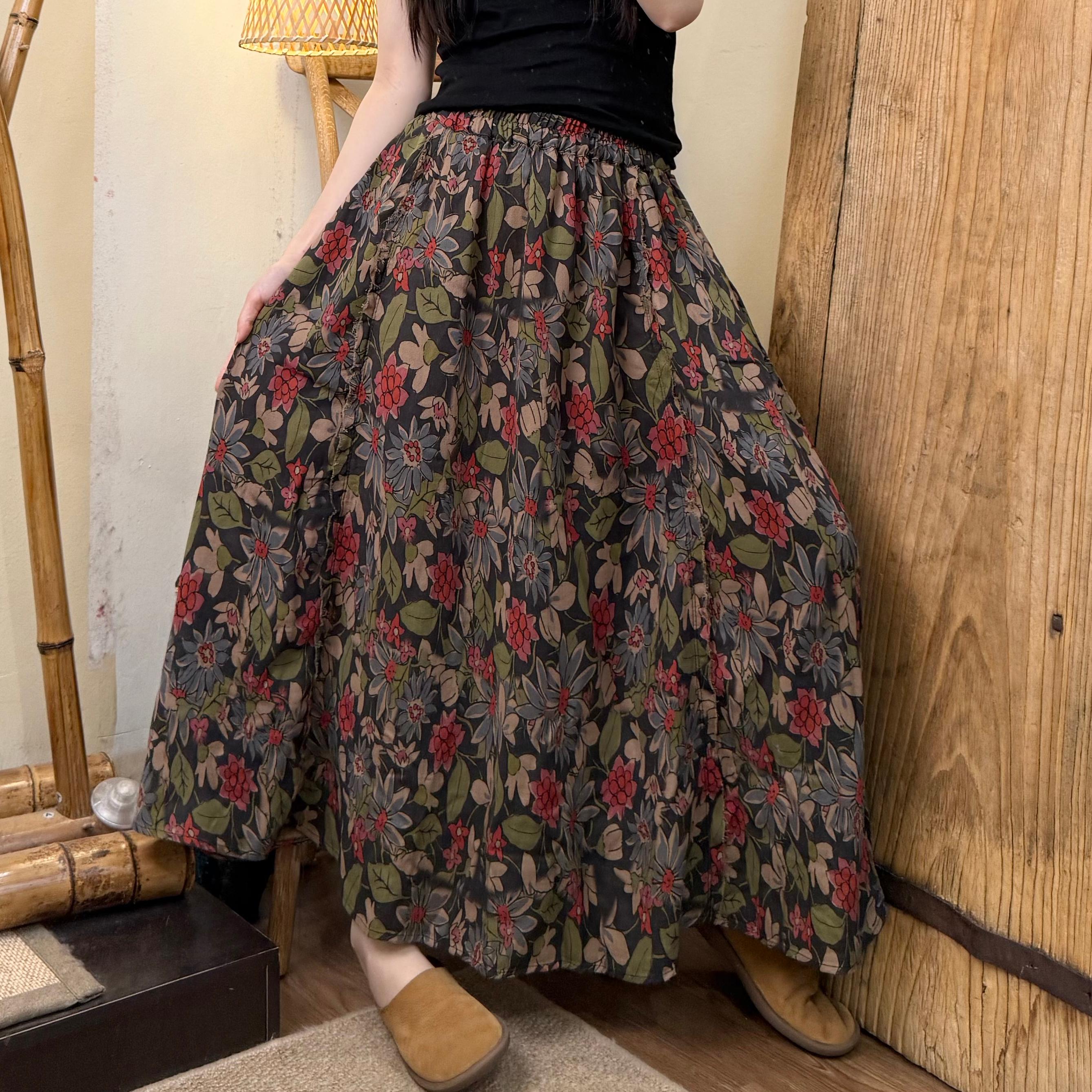 2025 여름 새로운 스타일 레트로 캐주얼 올 매치 예술적 간단한 디지털 인쇄 녹 코튼 원사 단일 레이어 스커트스토어 가기