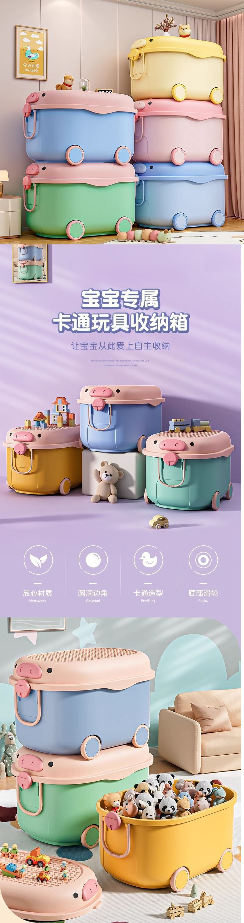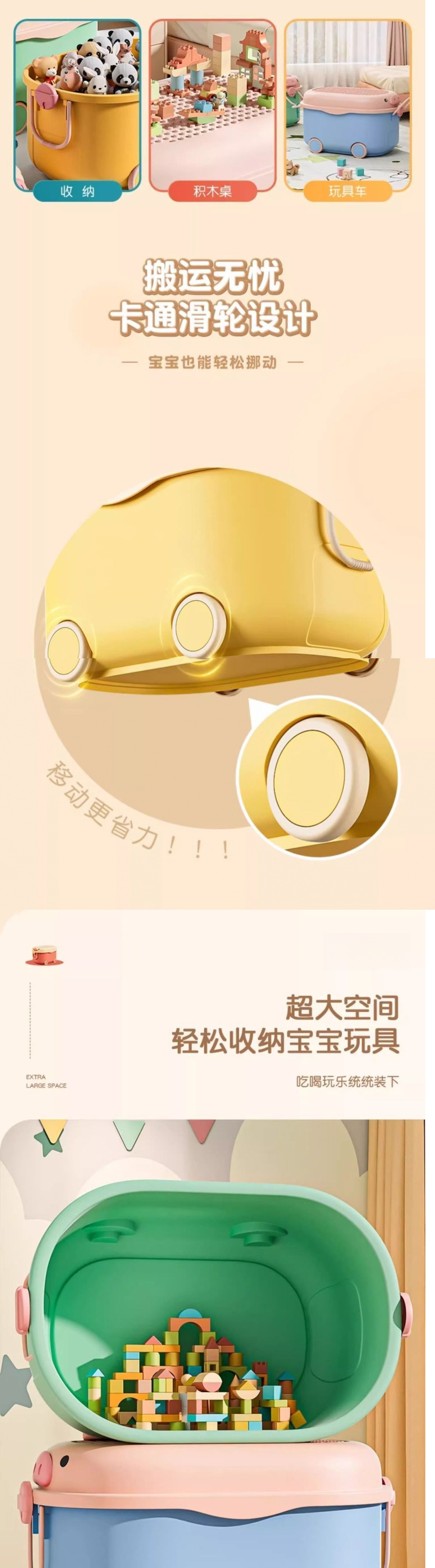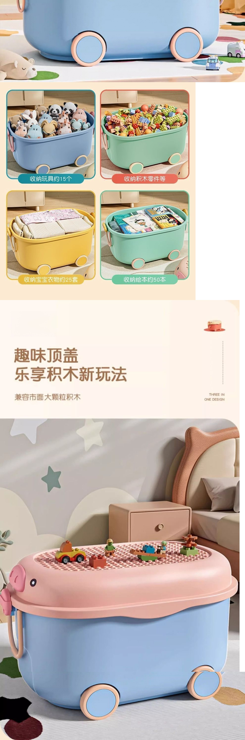 보관 상자 아기 장난감 보관 상자 옷 간식 바퀴가 달린 대용량 빌딩 블록 플라스틱 정리 보관