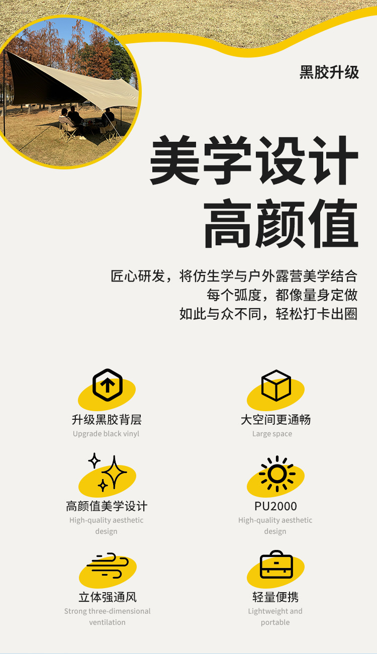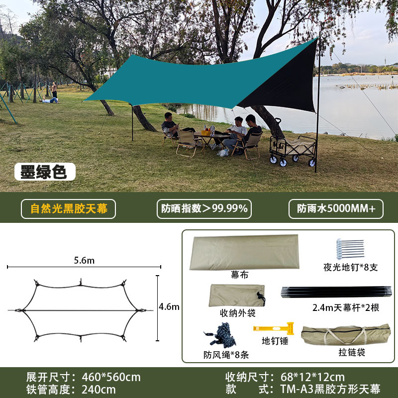 검은 고무 야외 캠핑 캐노피 나비 차양 냉각 캐노피 자외선 차단제 맞춤형 방비 차양 항해 국경 간 텐트스토어 가기