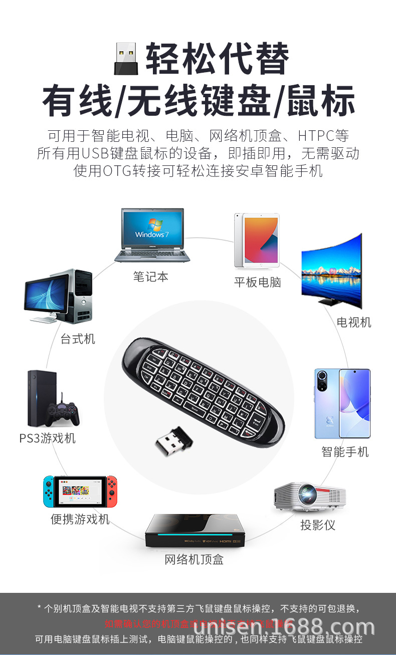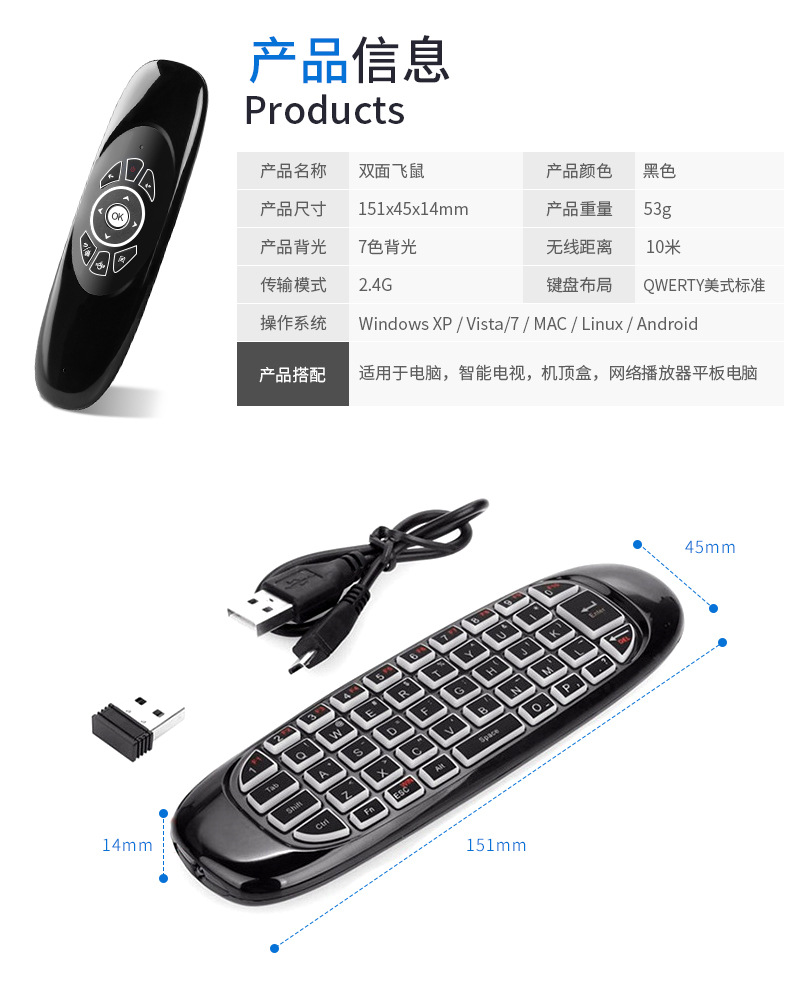 2.4g 미니 무선 키보드 및 마우스 세트 공중 비행 마우스 휴대용 키보드 및 마우스 자이로 스코프 투인원 원격 제어