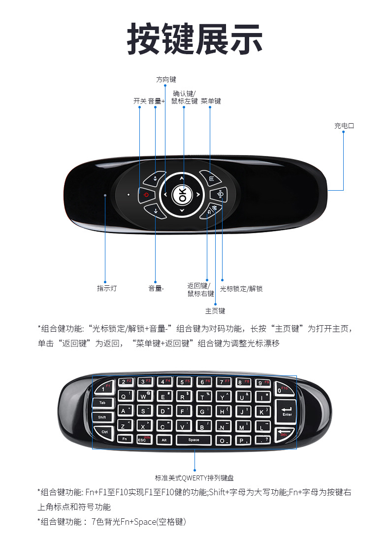 2.4g 미니 무선 키보드 및 마우스 세트 공중 비행 마우스 휴대용 키보드 및 마우스 자이로 스코프 투인원 원격 제어스토어 가기