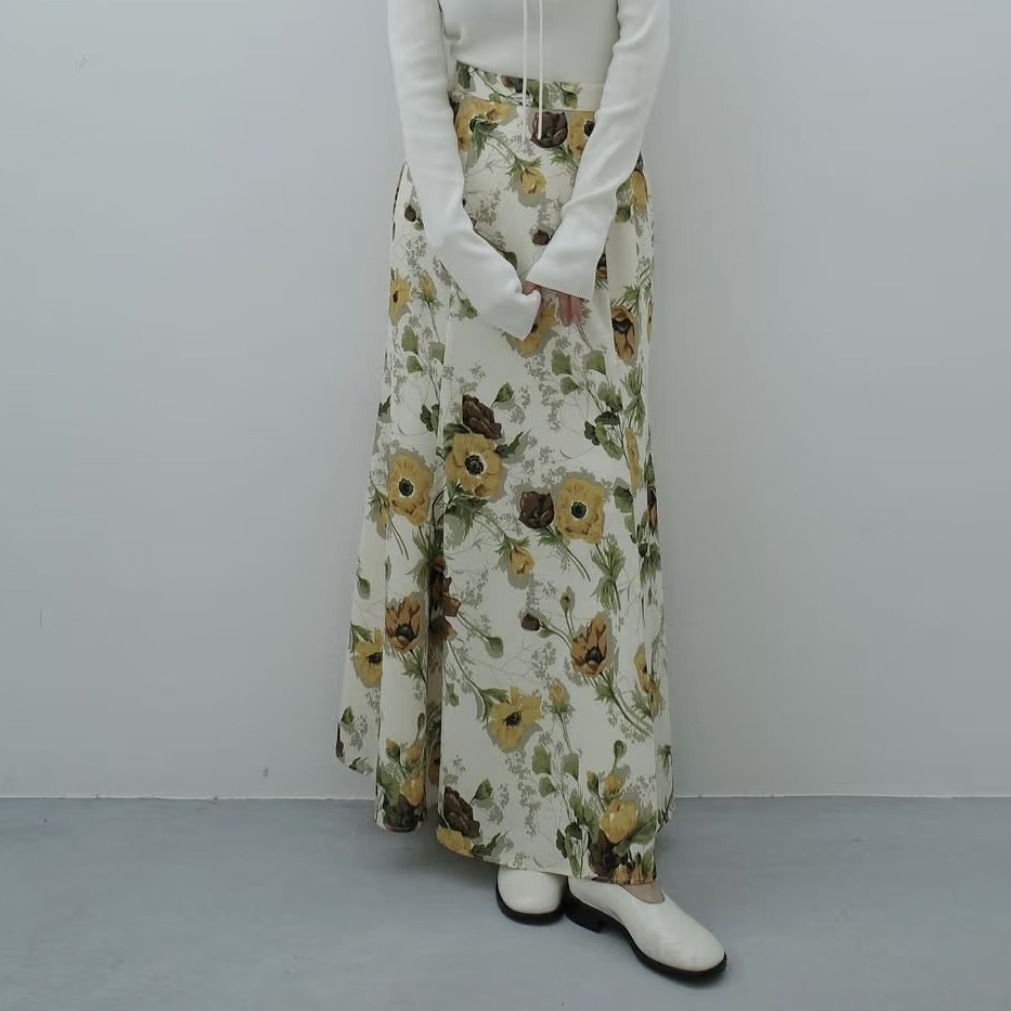 재고 일본 스타 스타일 레트로 우아한 곡선 꽃 패턴 높은 허리 피쉬 스커트 여성