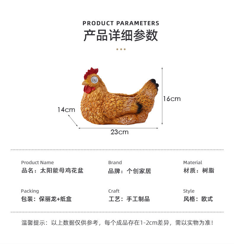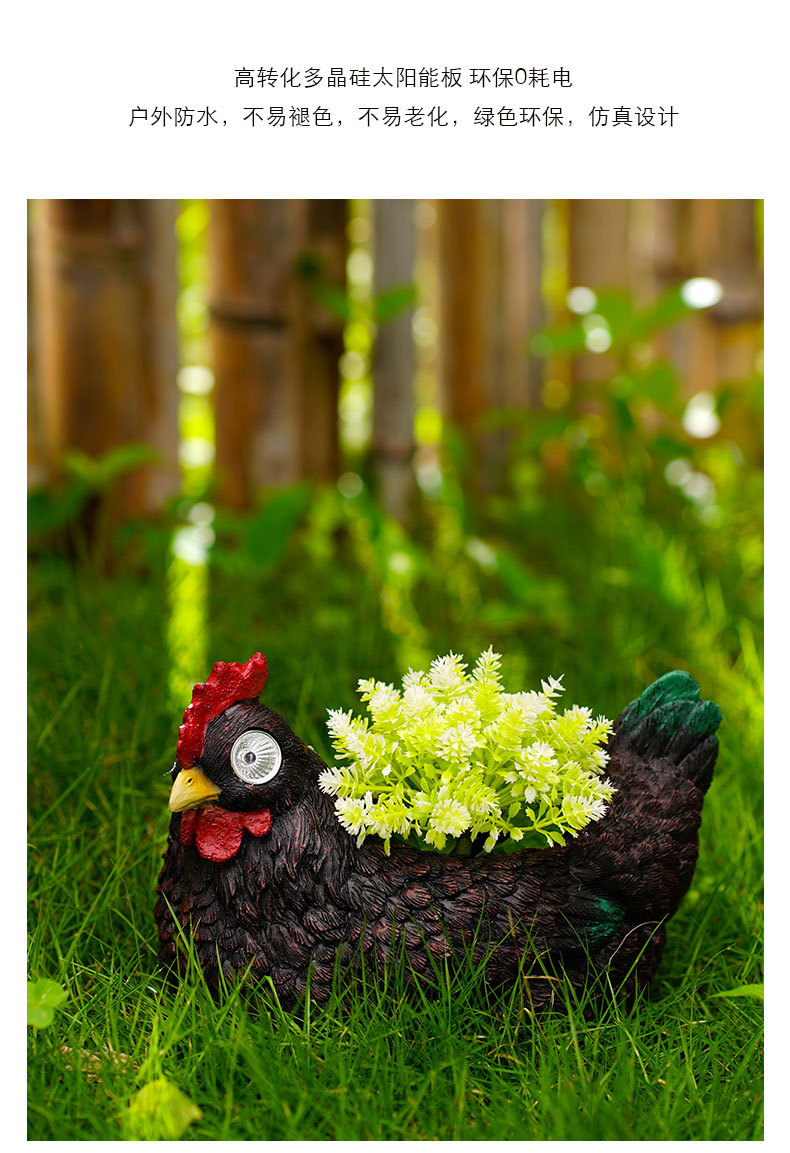 국경 간 시뮬레이션 암탉 고기 화분 안뜰 정원 잔디 조경 장식 야외 태양 램프 수지 장식품