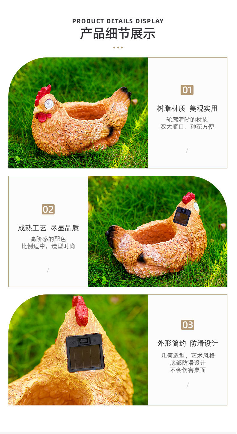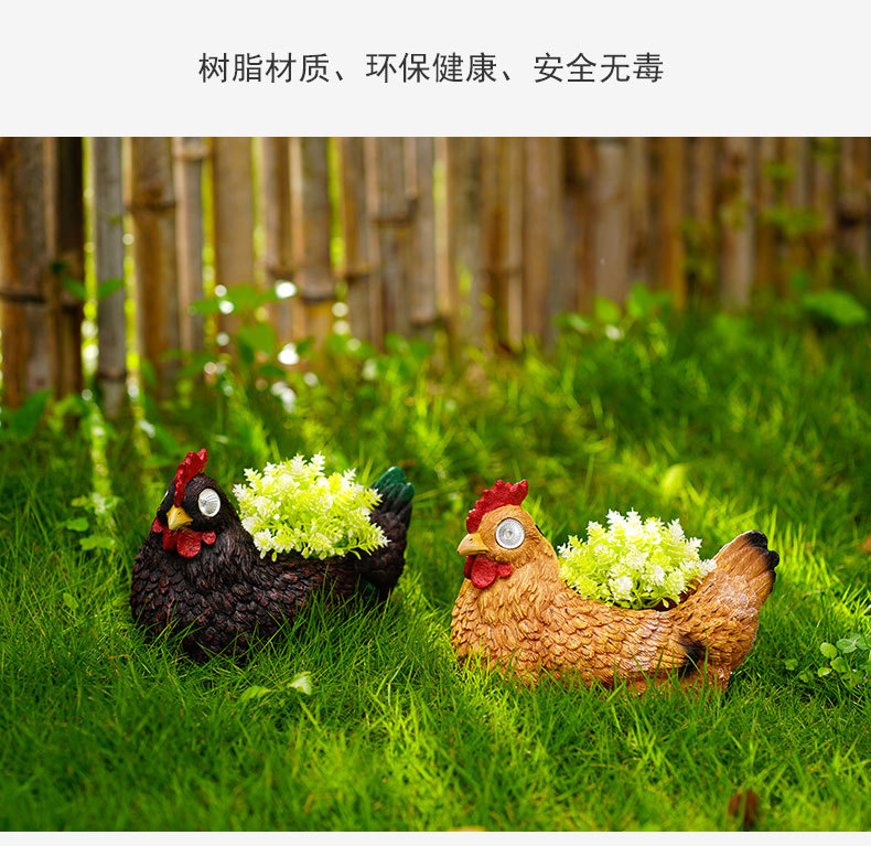 국경 간 시뮬레이션 암탉 고기 화분 안뜰 정원 잔디 조경 장식 야외 태양 램프 수지 장식품스토어 가기