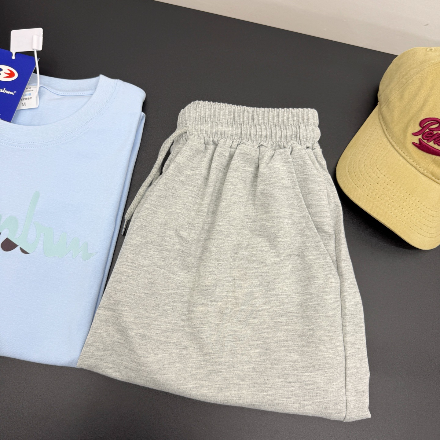 💥【清爽夏日套装】浅蓝纯棉T+灰色五分裤