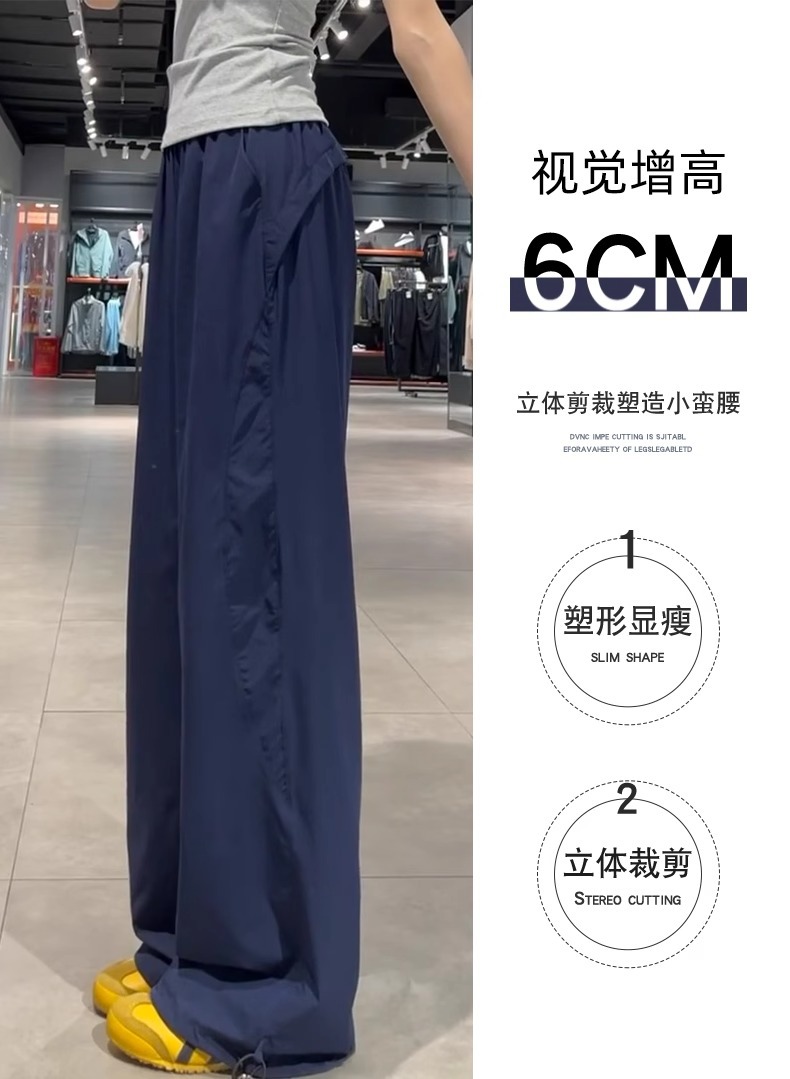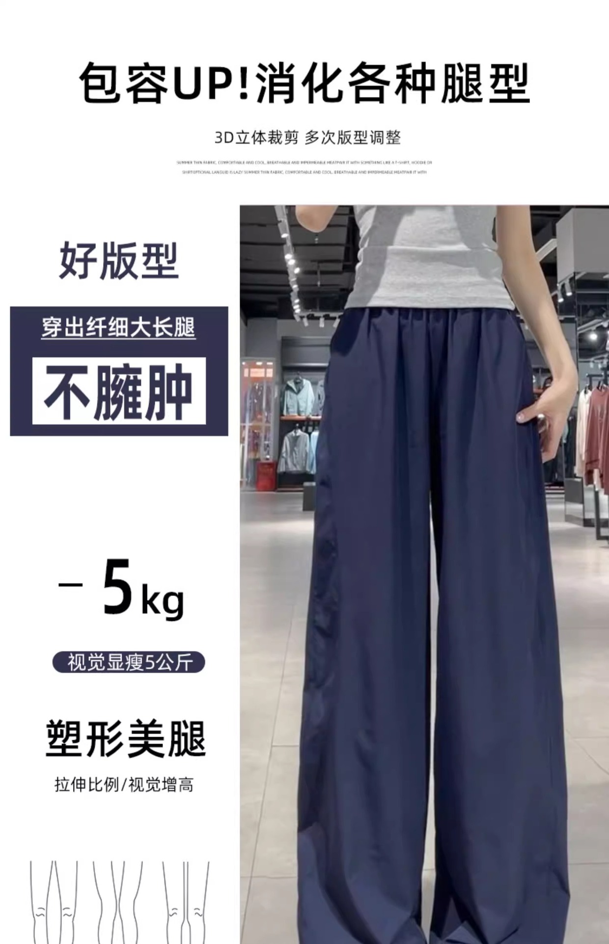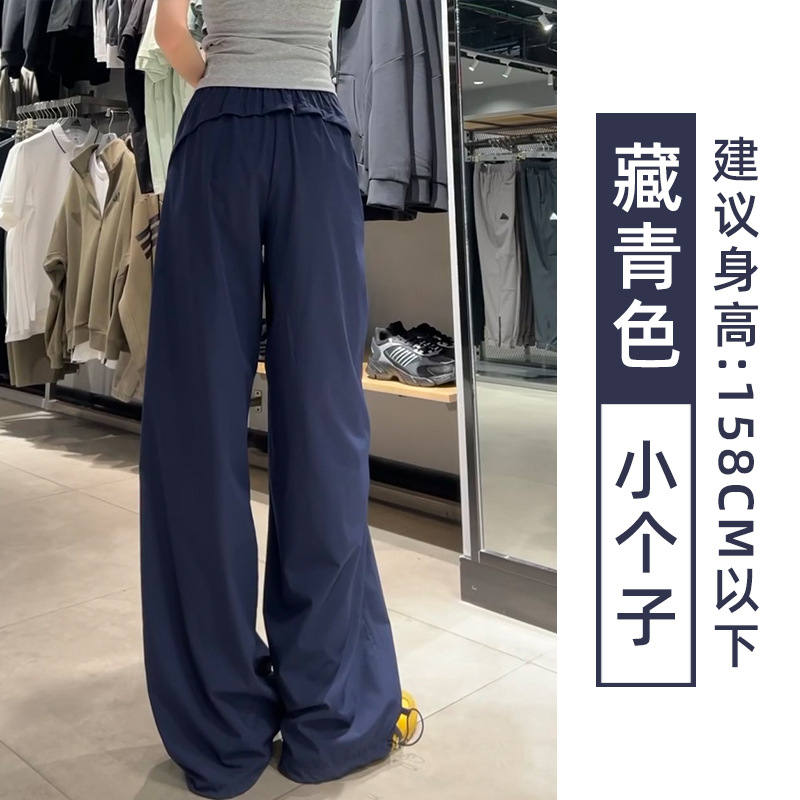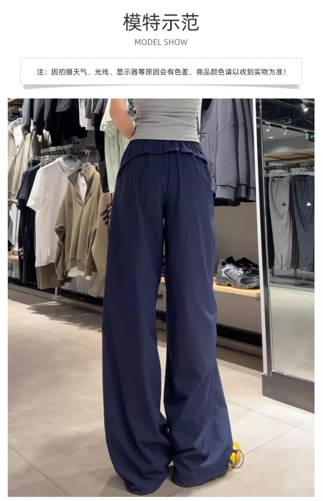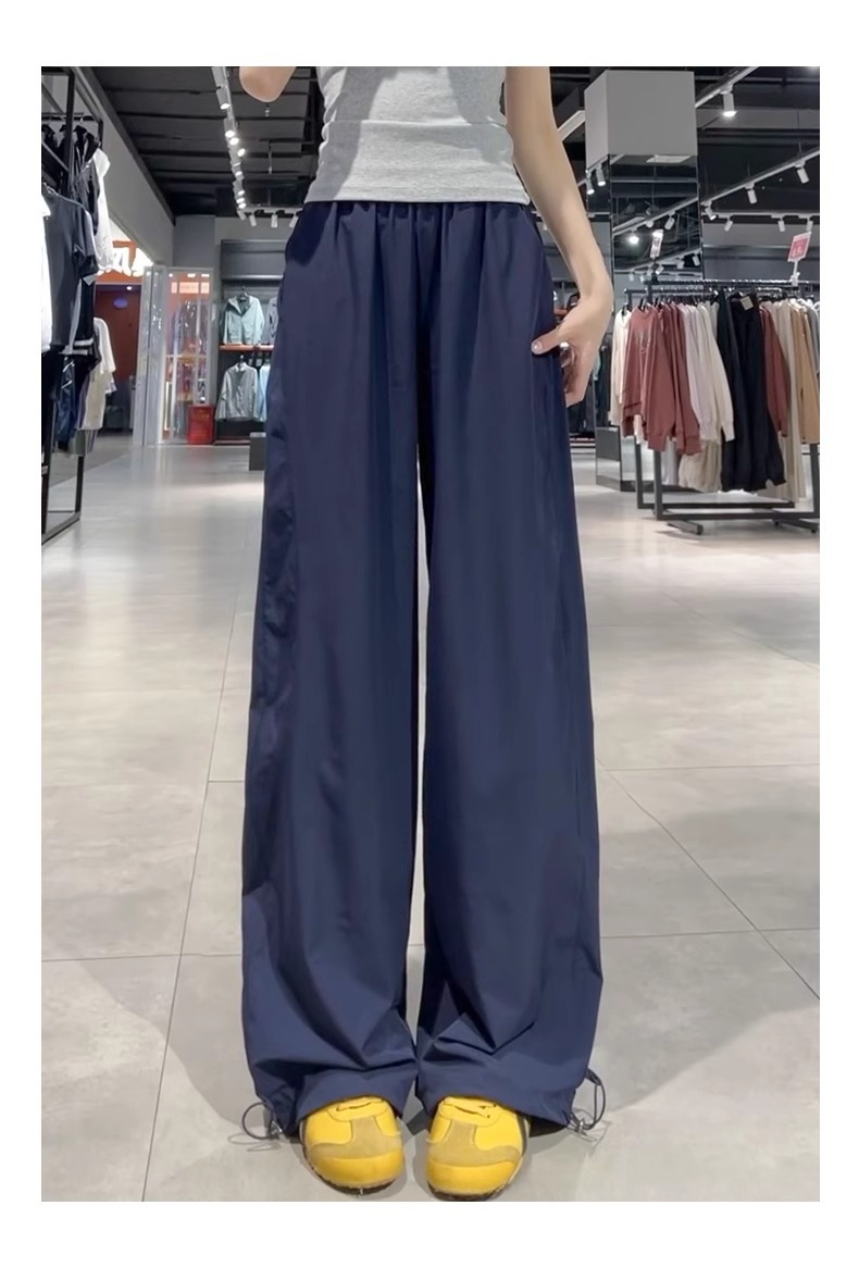 네이비 빠른 건조는 여성의 여름 새로운 높은 허리 느슨한 Draphy 캐주얼 게으른 스타일 스포츠 와이드 다리 바지스토어 가기