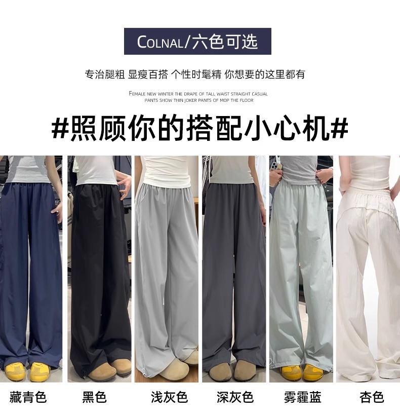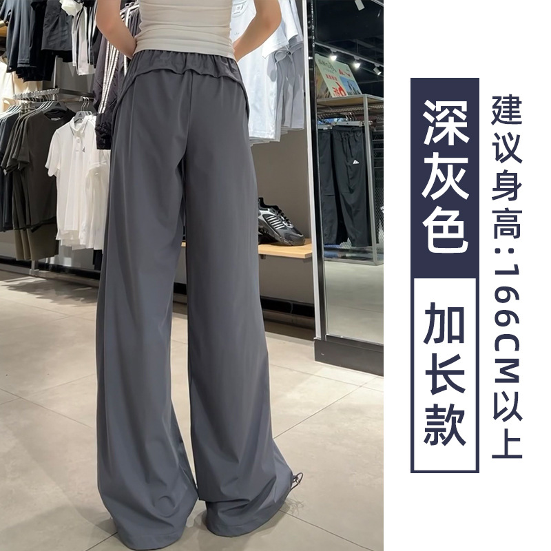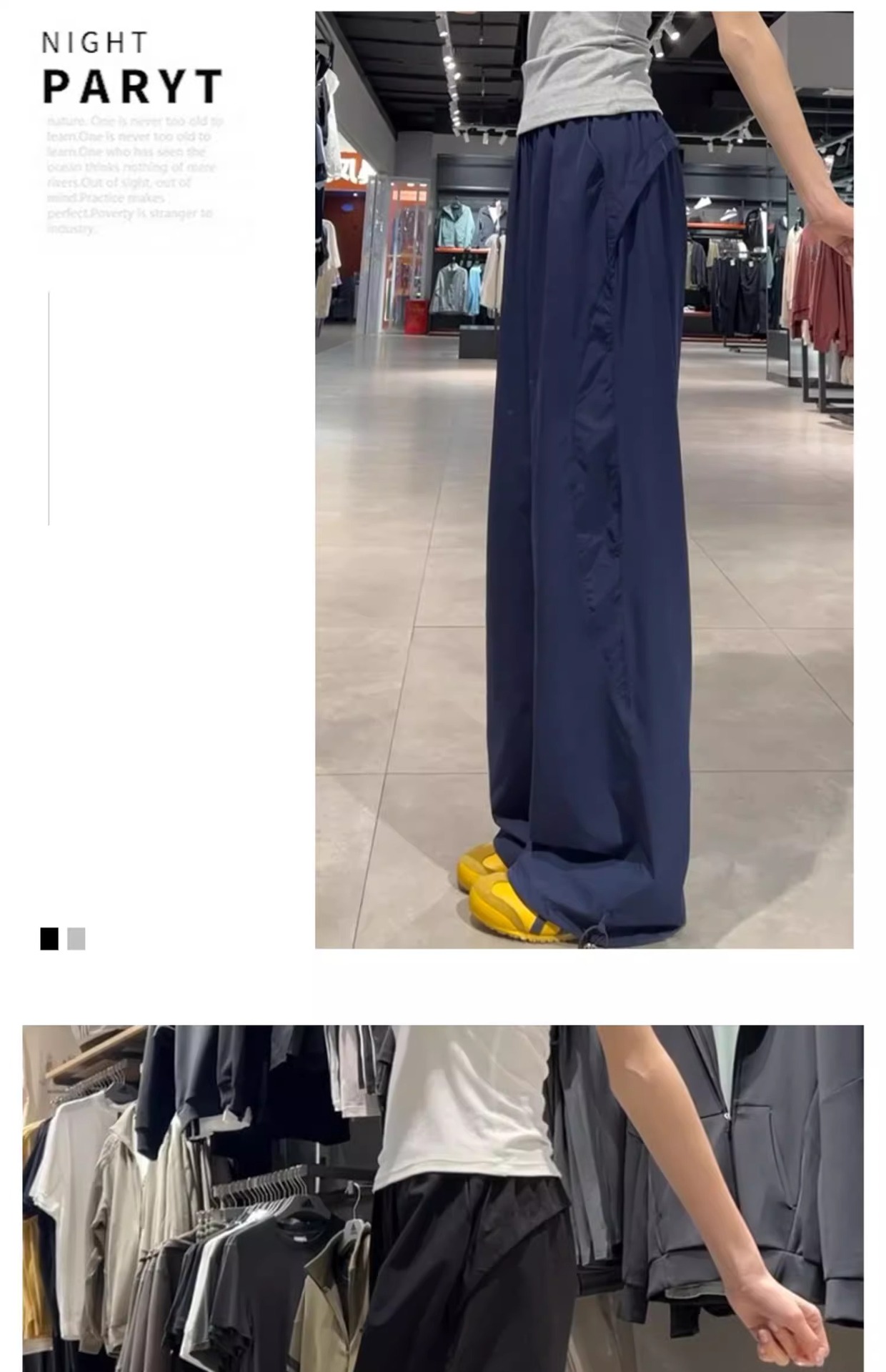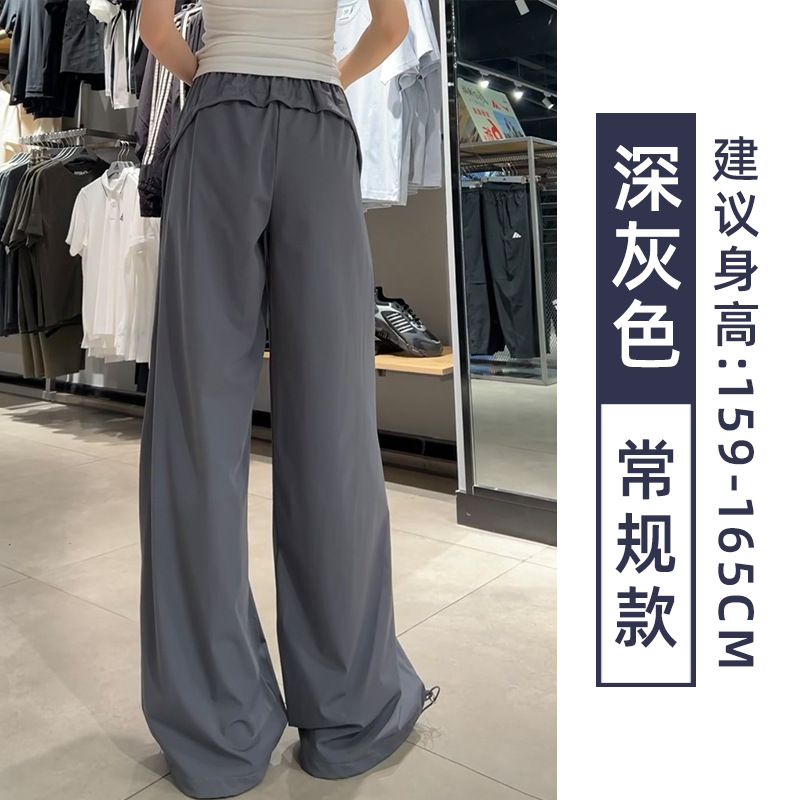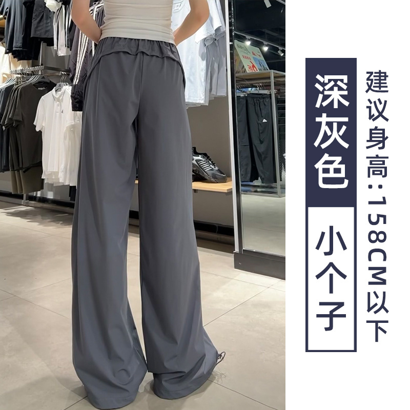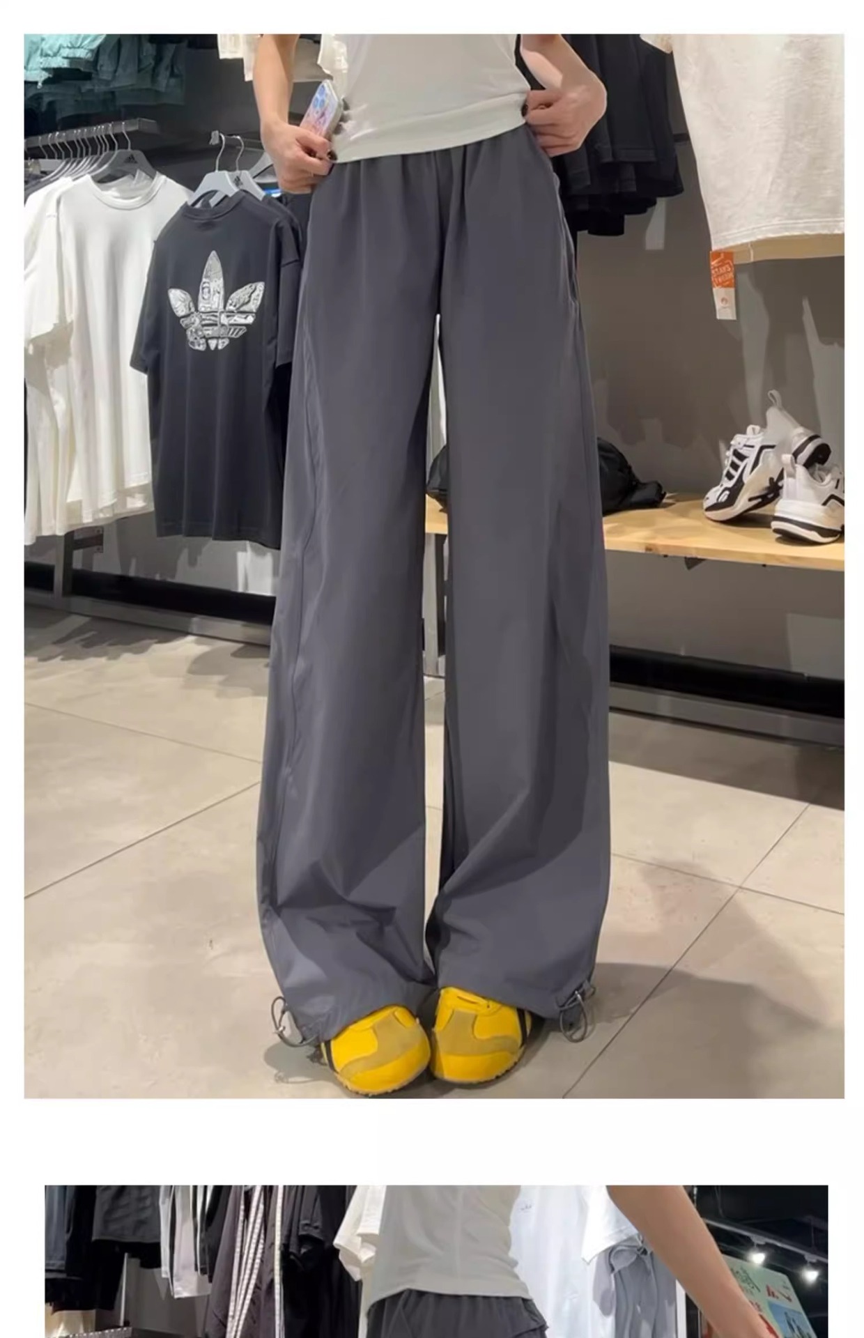 네이비 빠른 건조는 여성의 여름 새로운 높은 허리 느슨한 Draphy 캐주얼 게으른 스타일 스포츠 와이드 다리 바지스토어 가기