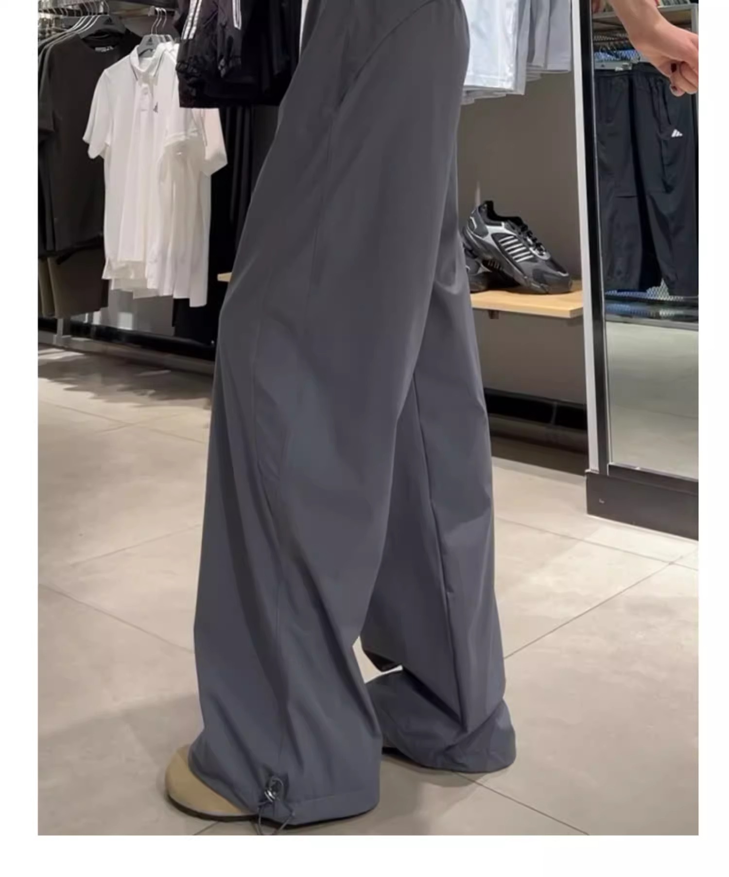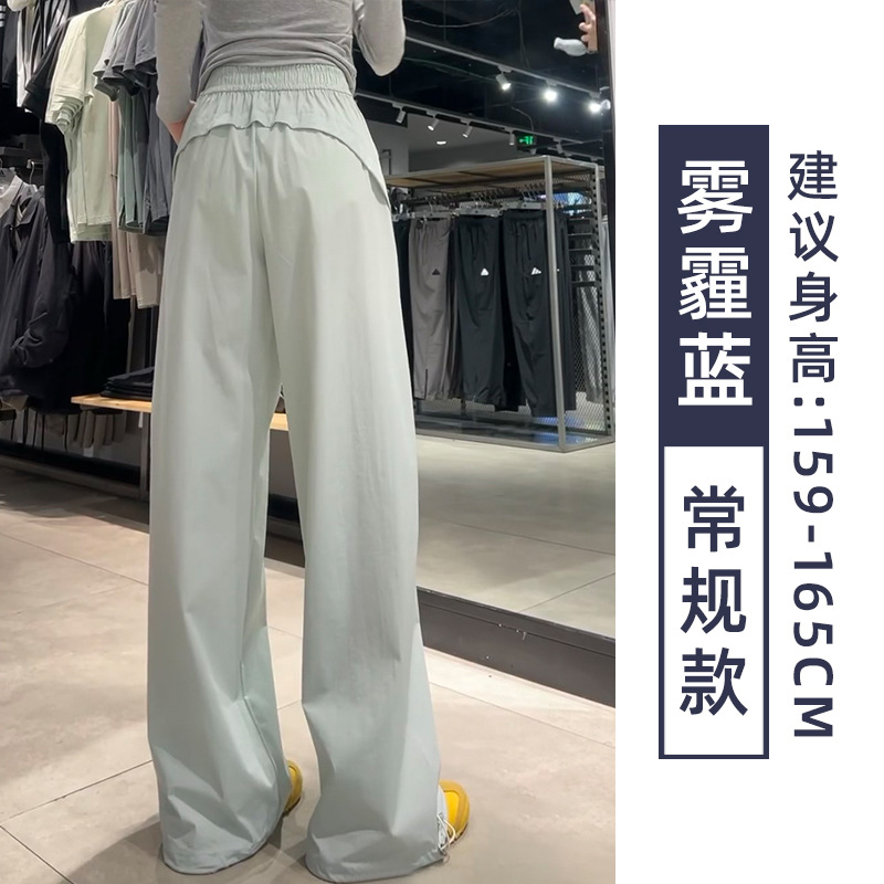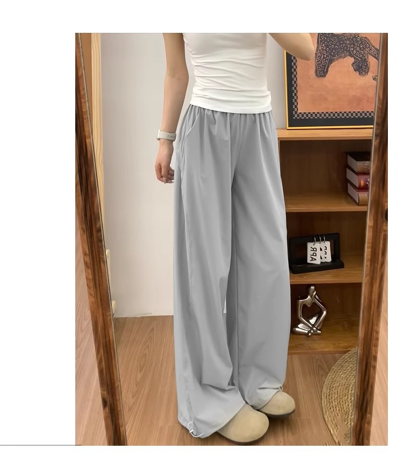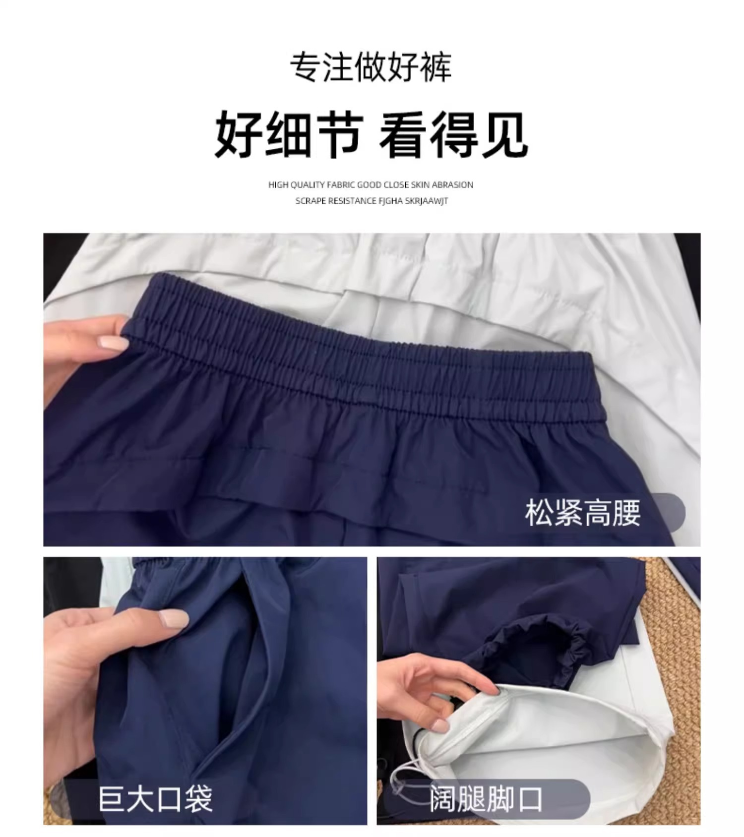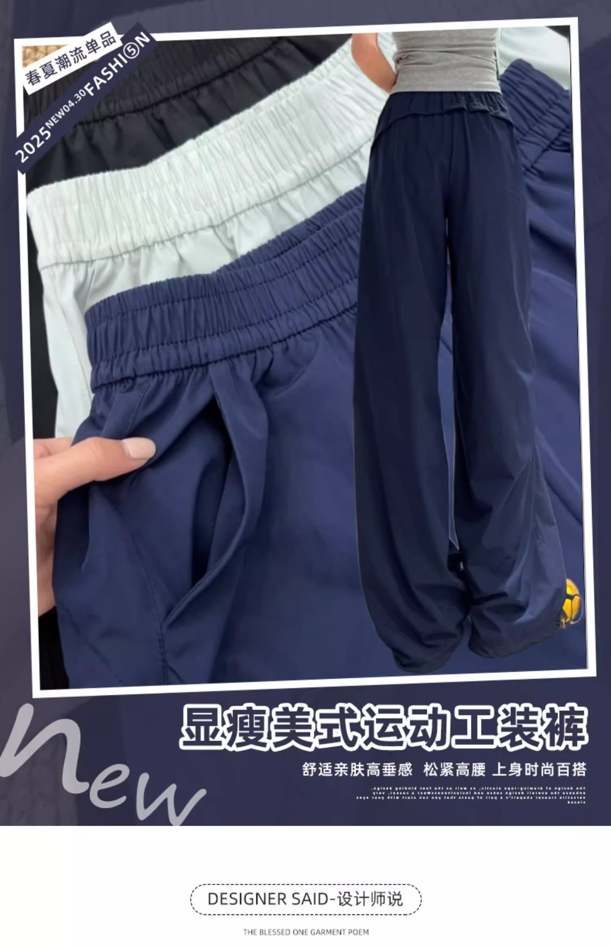 네이비 빠른 건조는 여성의 여름 새로운 높은 허리 느슨한 Draphy 캐주얼 게으른 스타일 스포츠 와이드 다리 바지스토어 가기