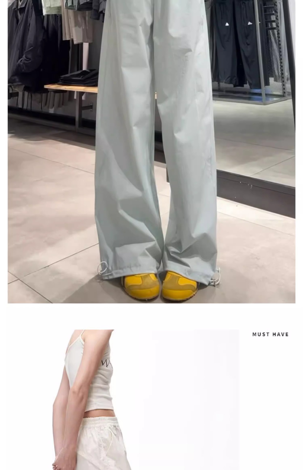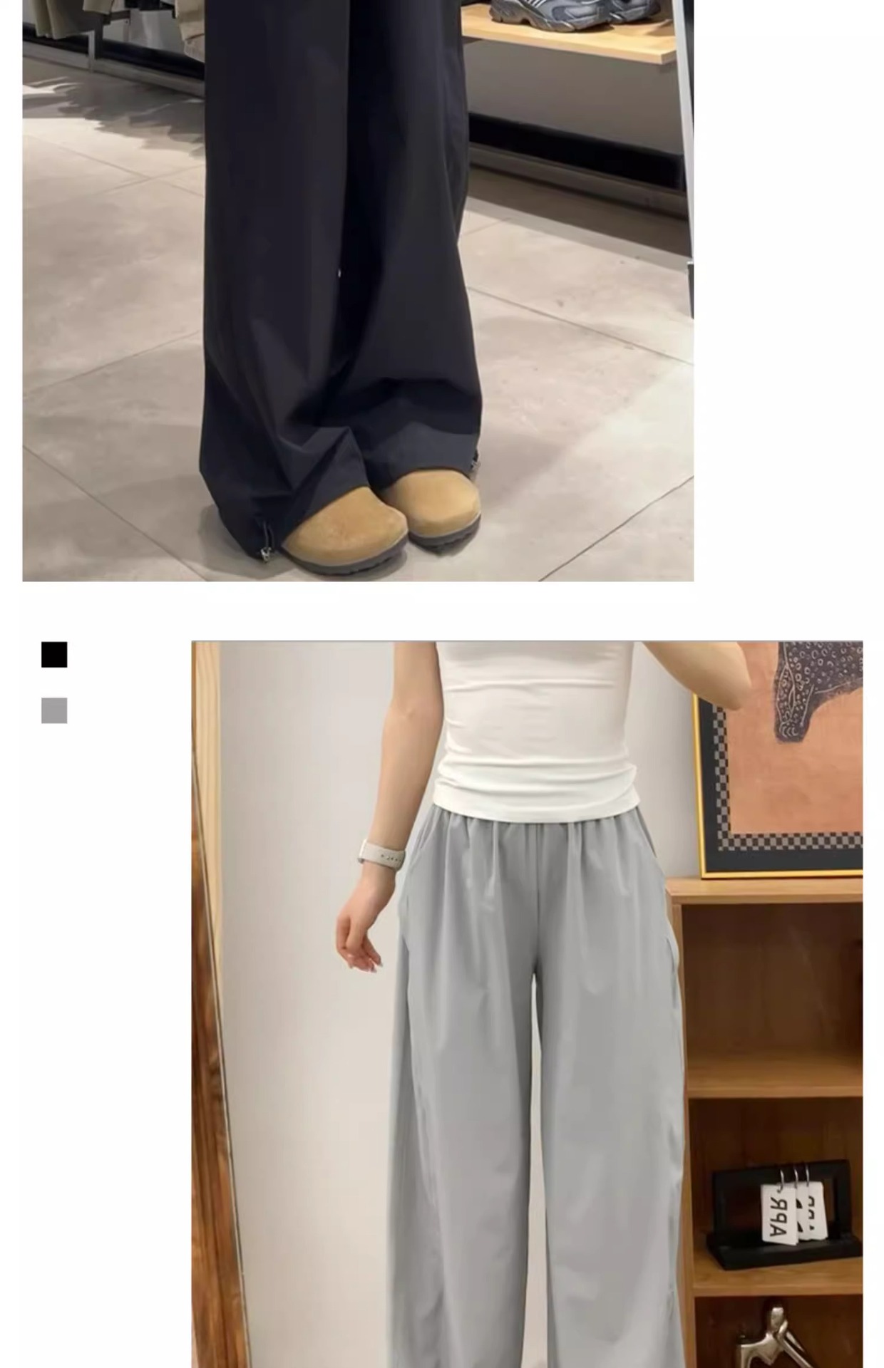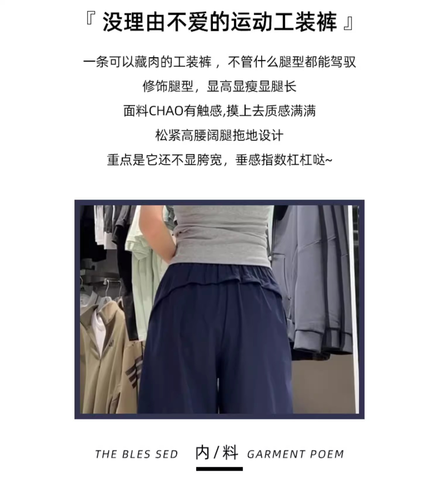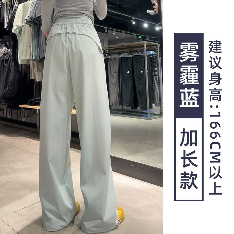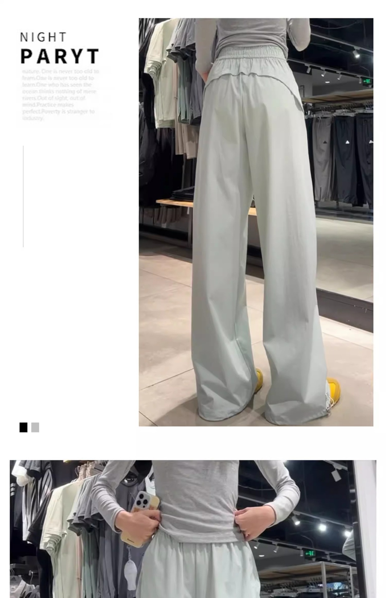 네이비 빠른 건조는 여성의 여름 새로운 높은 허리 느슨한 Draphy 캐주얼 게으른 스타일 스포츠 와이드 다리 바지스토어 가기