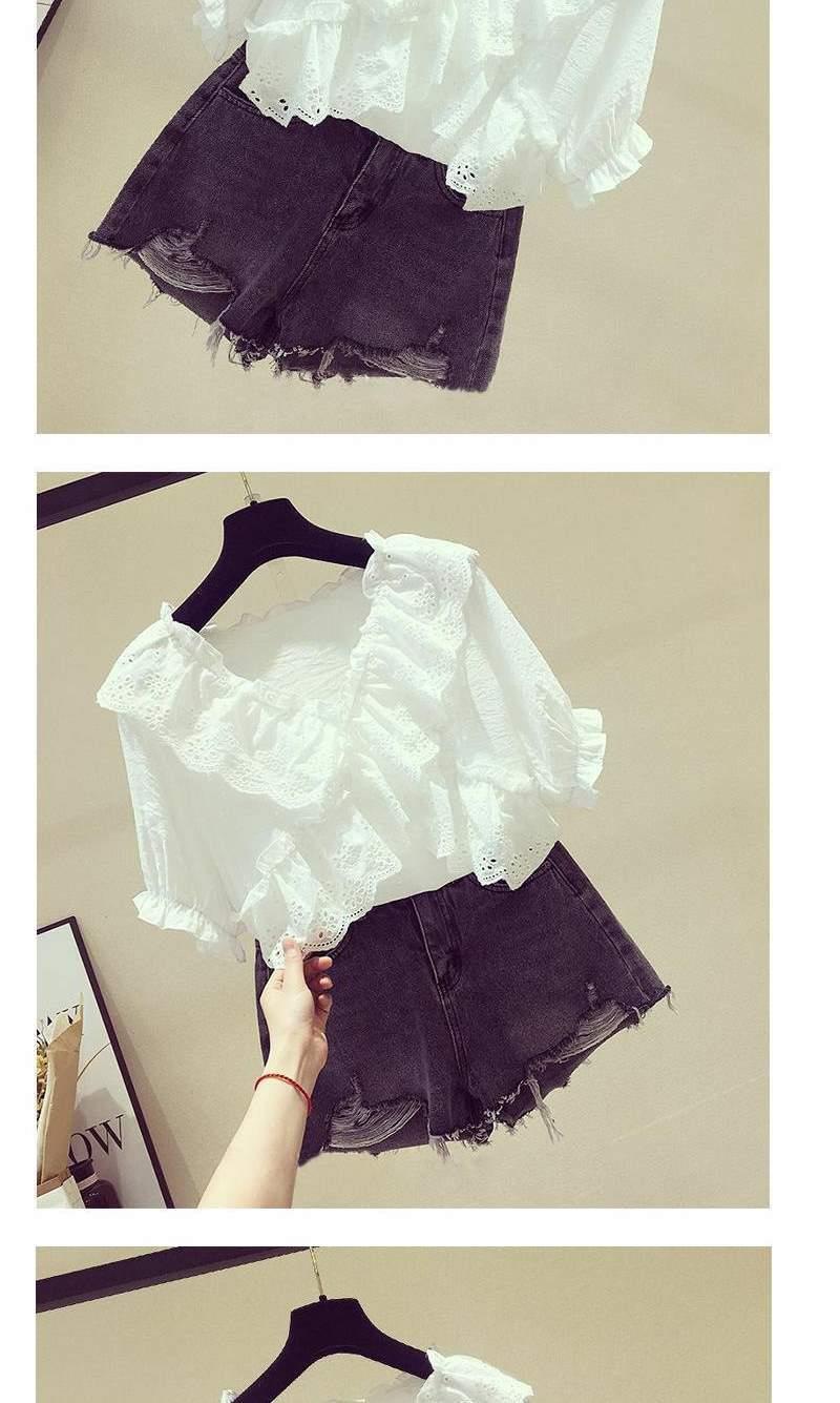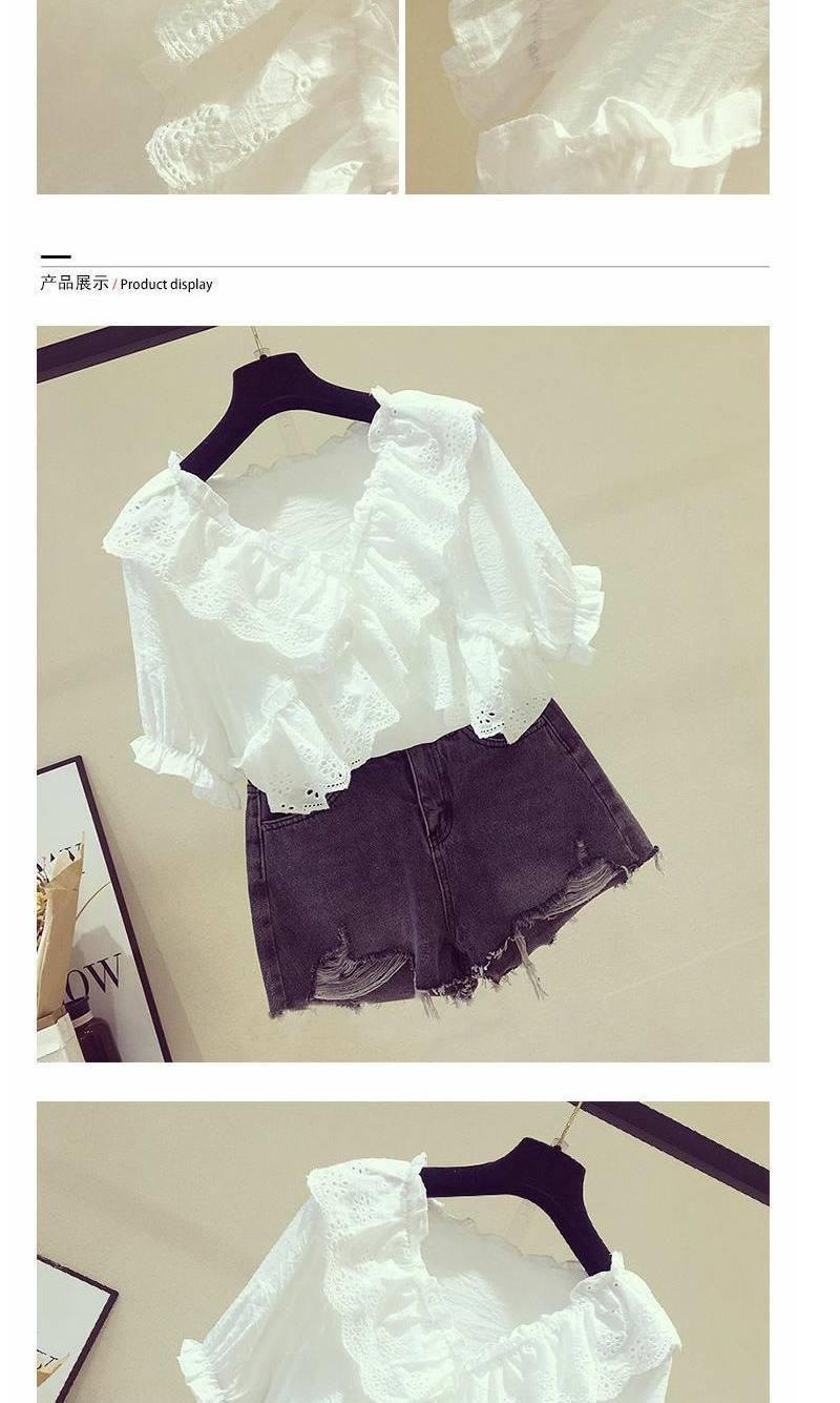 여성용 V넥 쉬폰 셔츠 2026 여름 신상 반팔 러플 인형 칼라 패셔너블 루즈핏 슬리밍 스타일리쉬 탑