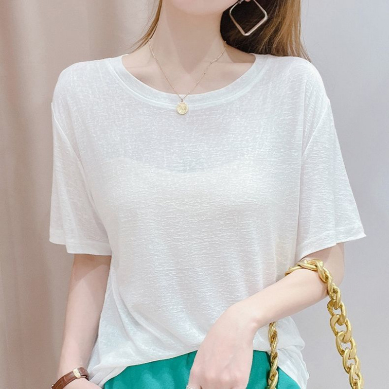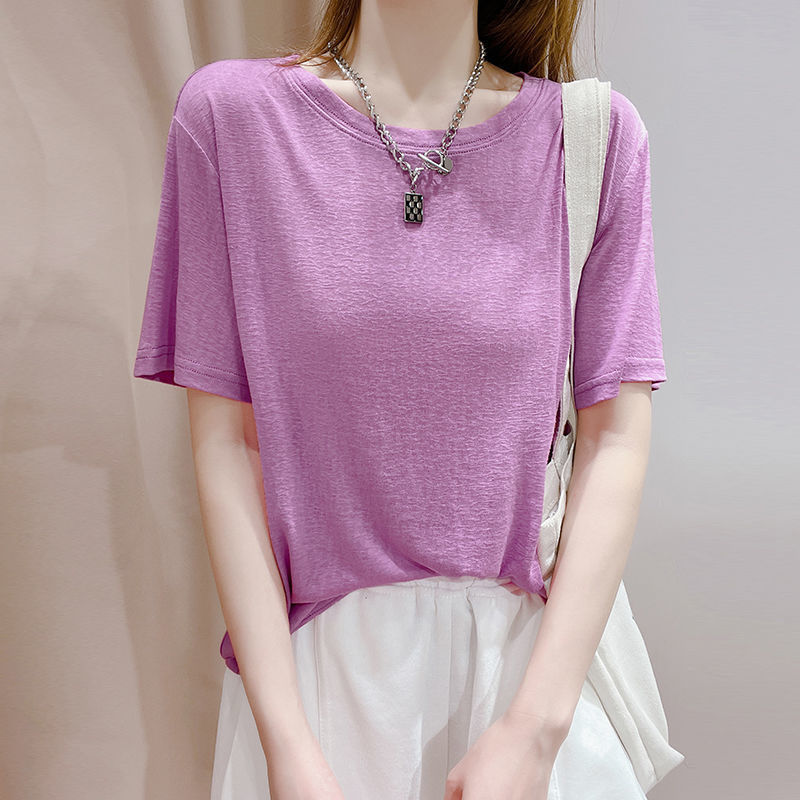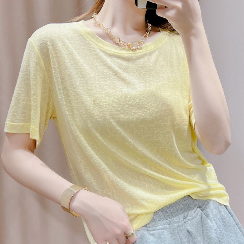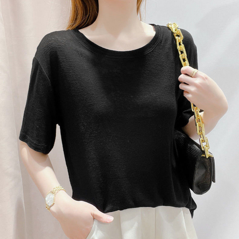 텐셀 탑 마스크 반팔 티셔츠 여성 패션 신작 니트 스웨터 얇은 스타일 아이스 실크 아이스 실크 도매