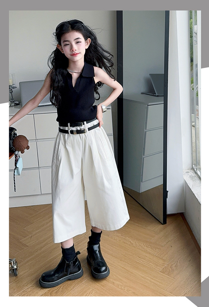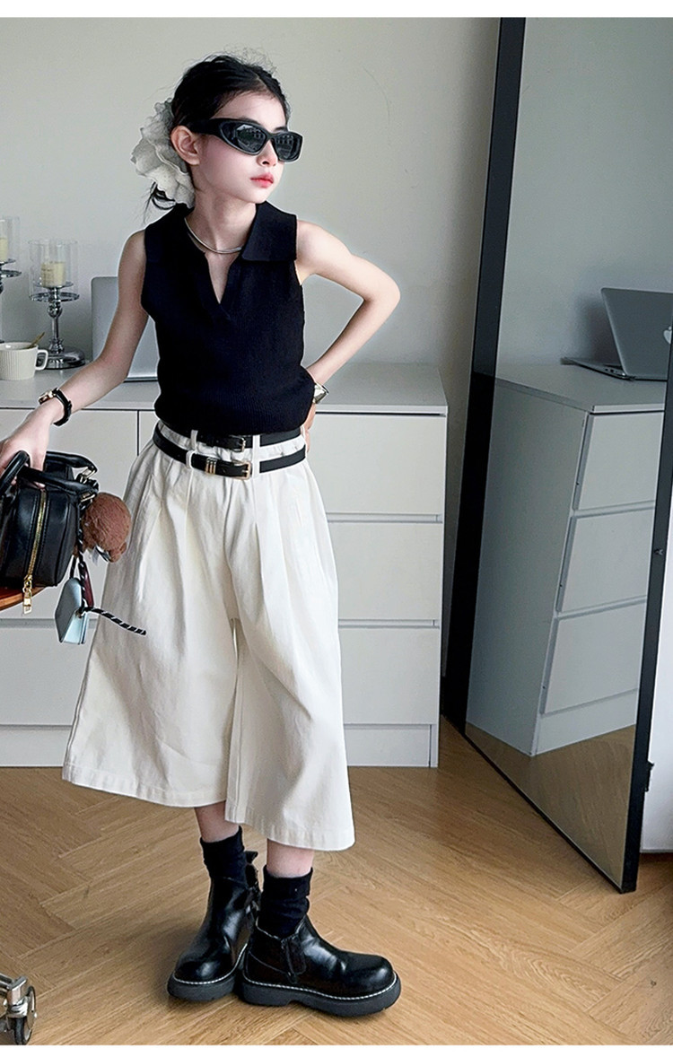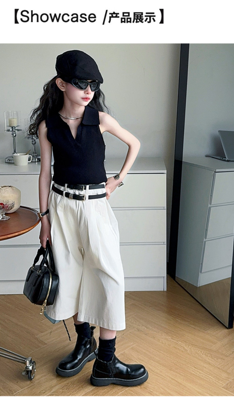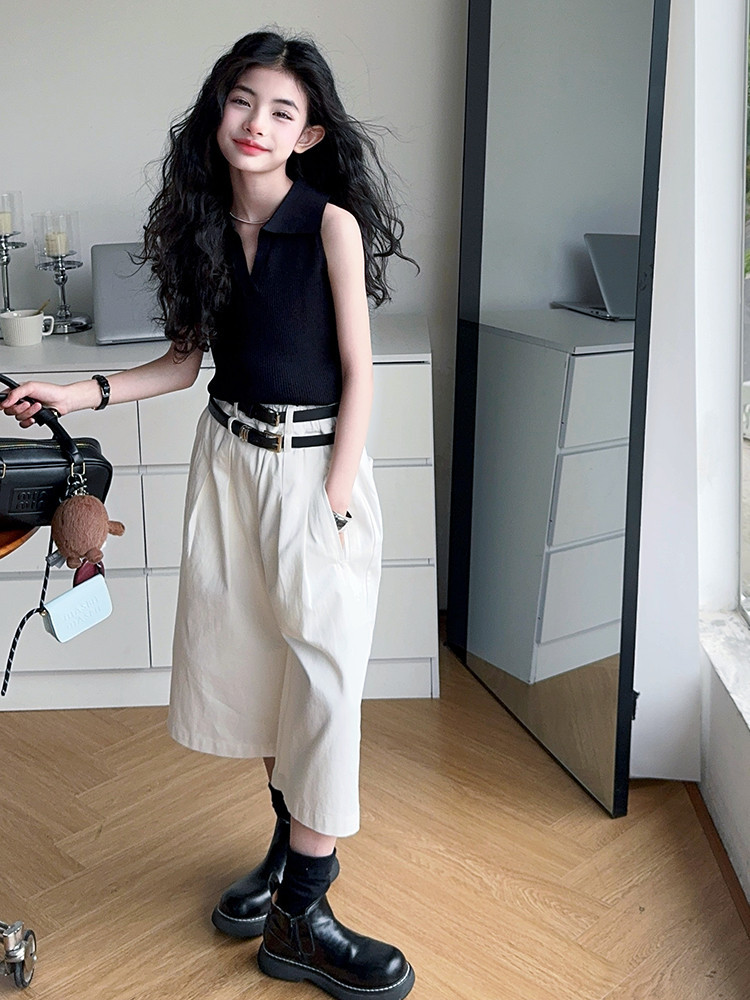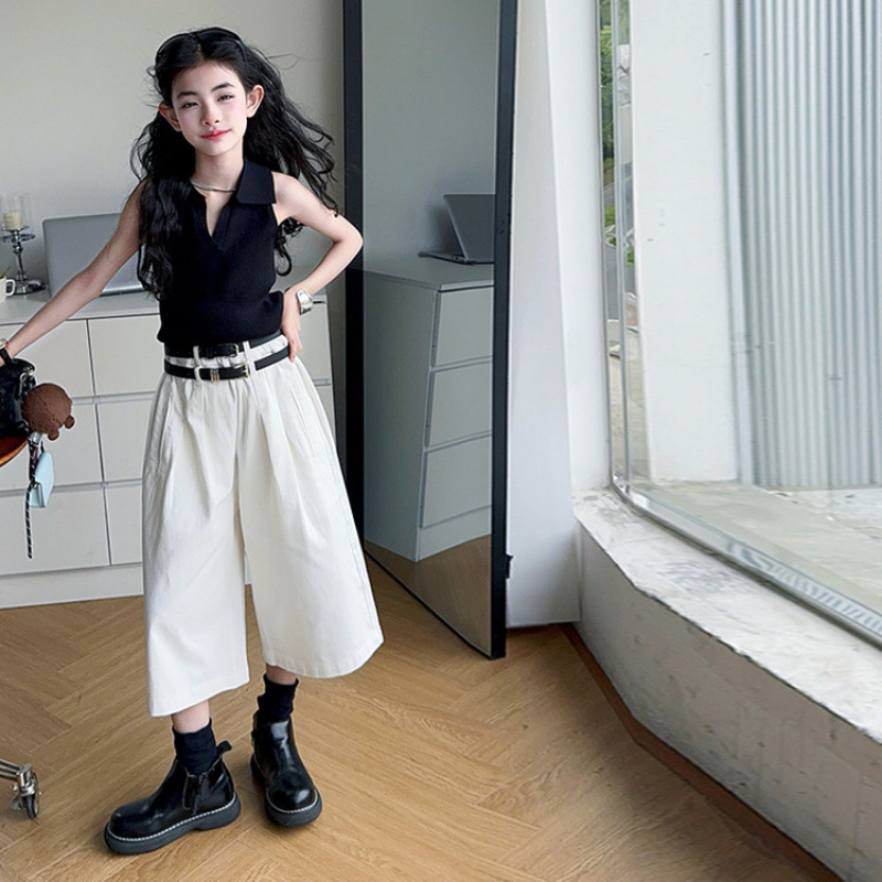 여자 여름 쿨 사 스타일 스파이스 소녀 조끼 세트 2025 새로운 큰 어린이 유행 튀긴 거리 넓은 다리 자른 바지스토어 가기
