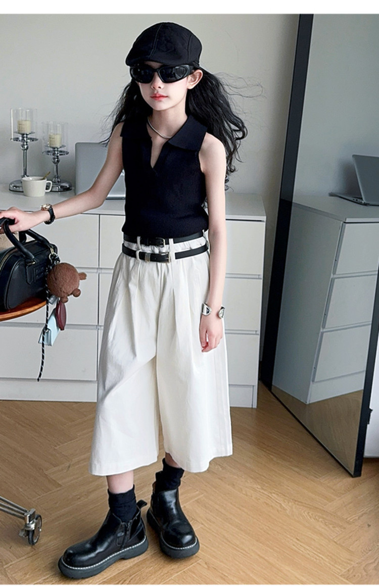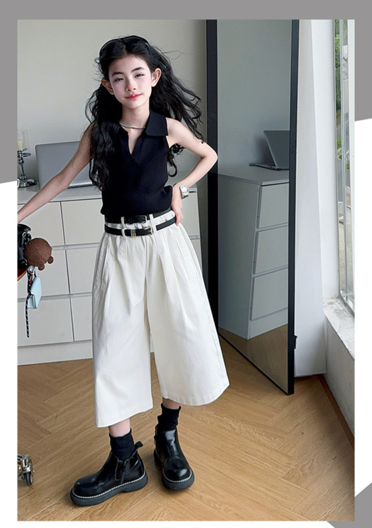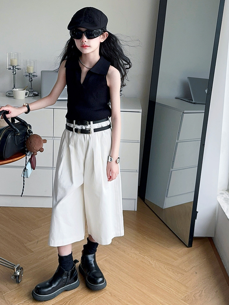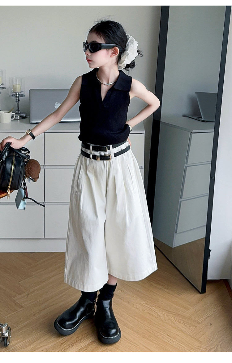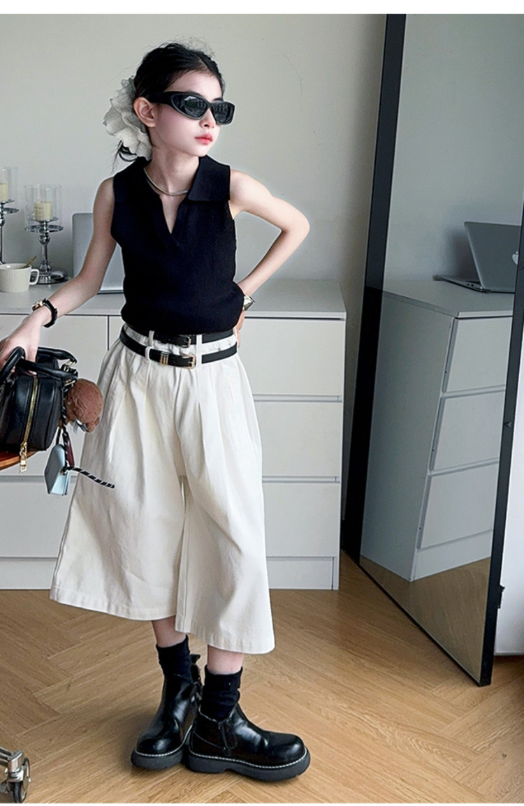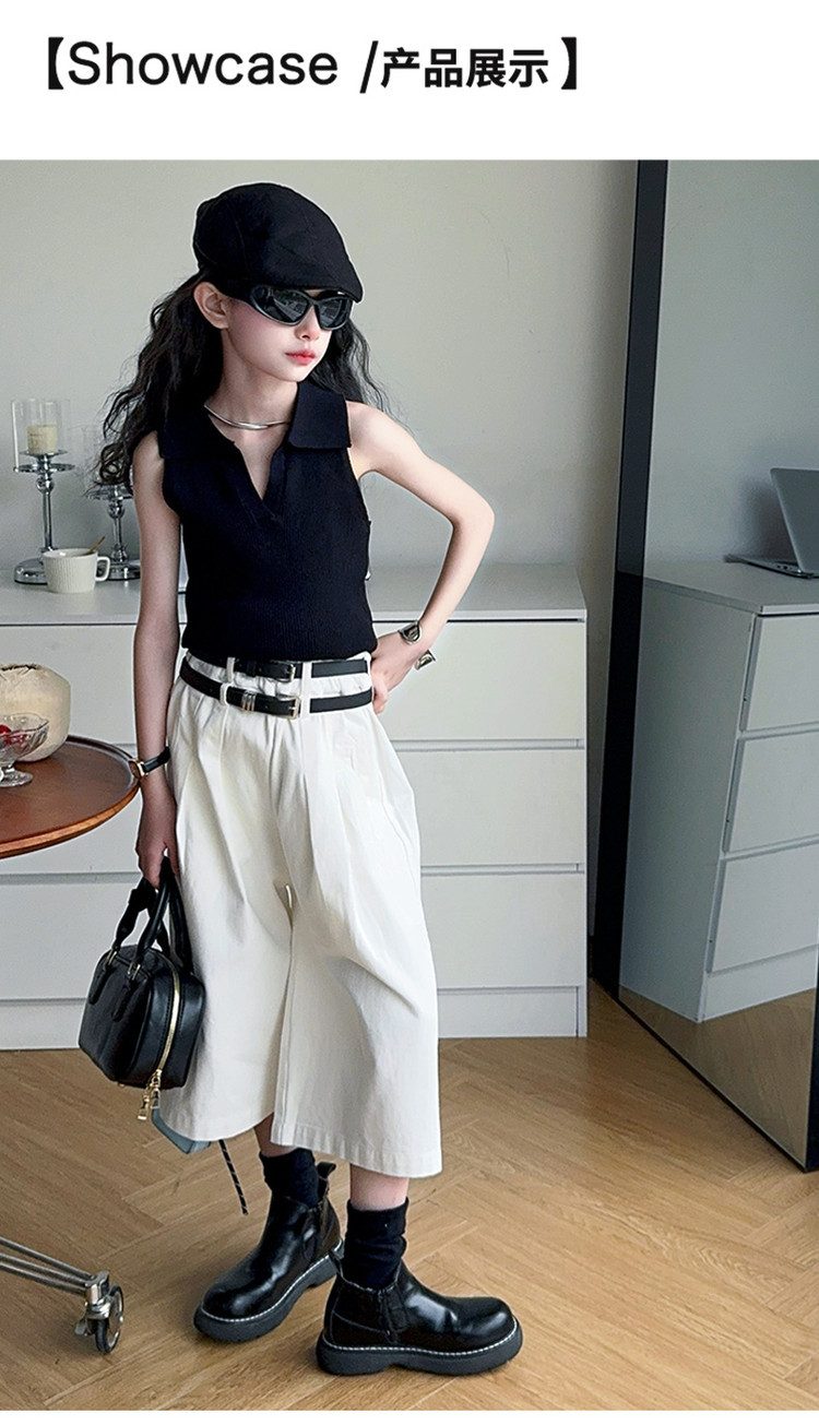 여자 여름 쿨 사 스타일 스파이스 소녀 조끼 세트 2025 새로운 큰 어린이 유행 튀긴 거리 넓은 다리 자른 바지스토어 가기