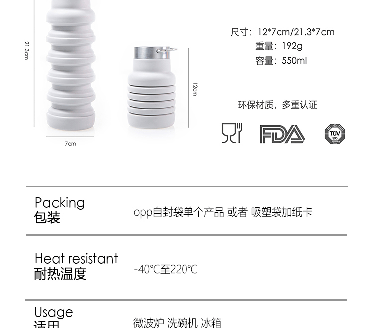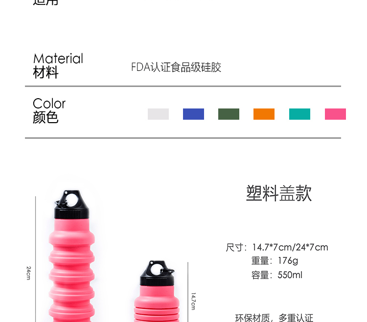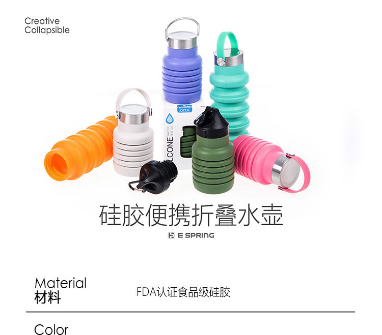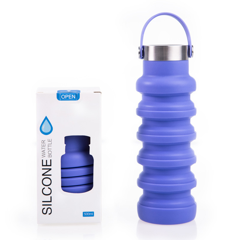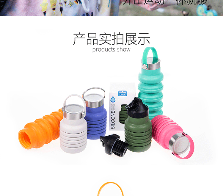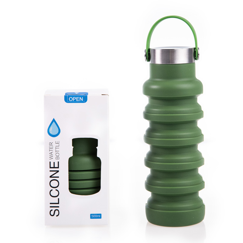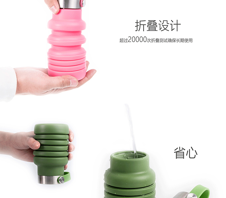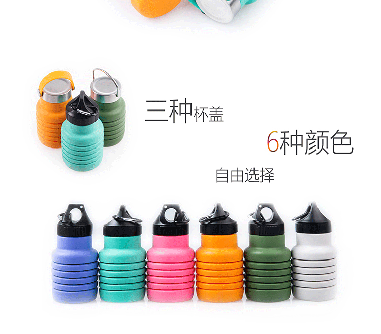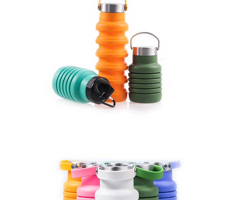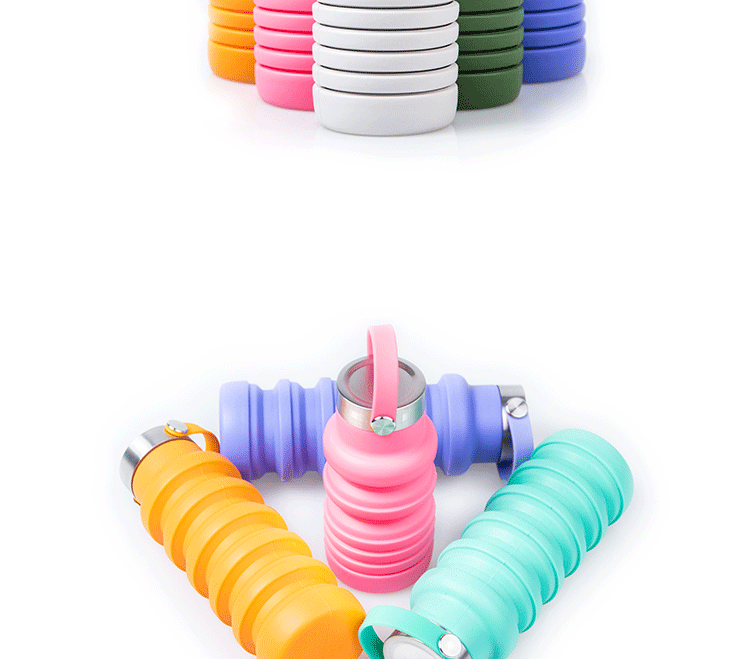 국경 간 인기 실리콘 접이식 물컵, 창의적인 사이클링 텔레스코픽 컵, 휴대용 대용량 야외 스포츠 물병