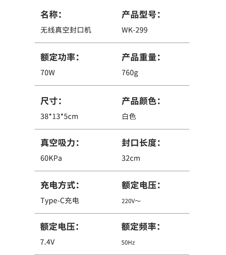 产品名称:多功能真空保鲜机-真空机-充电款