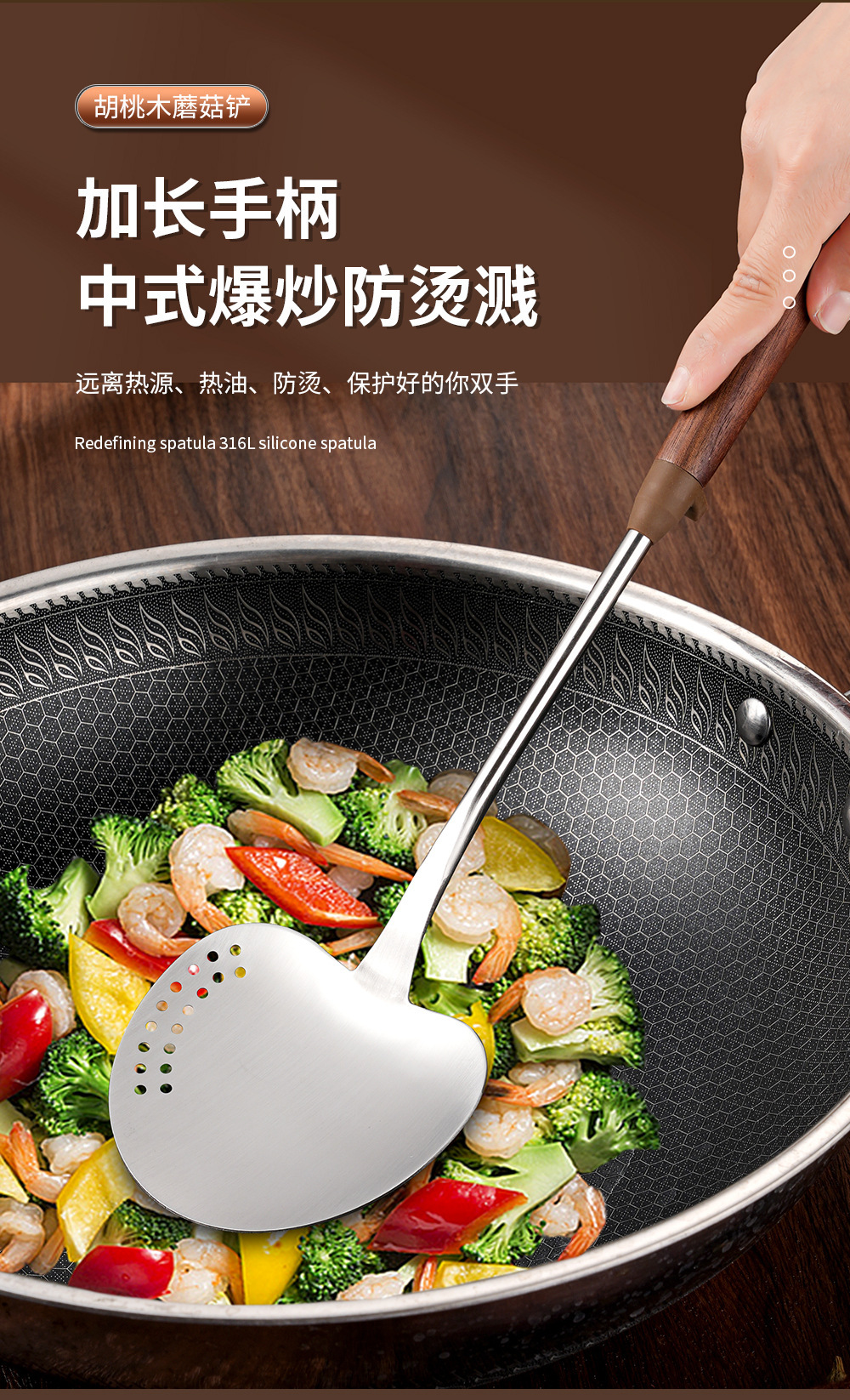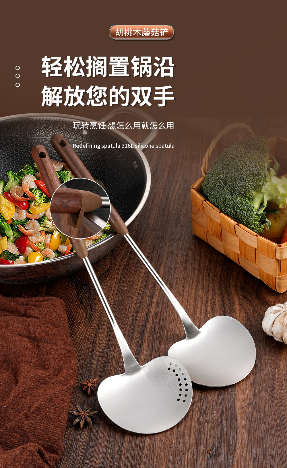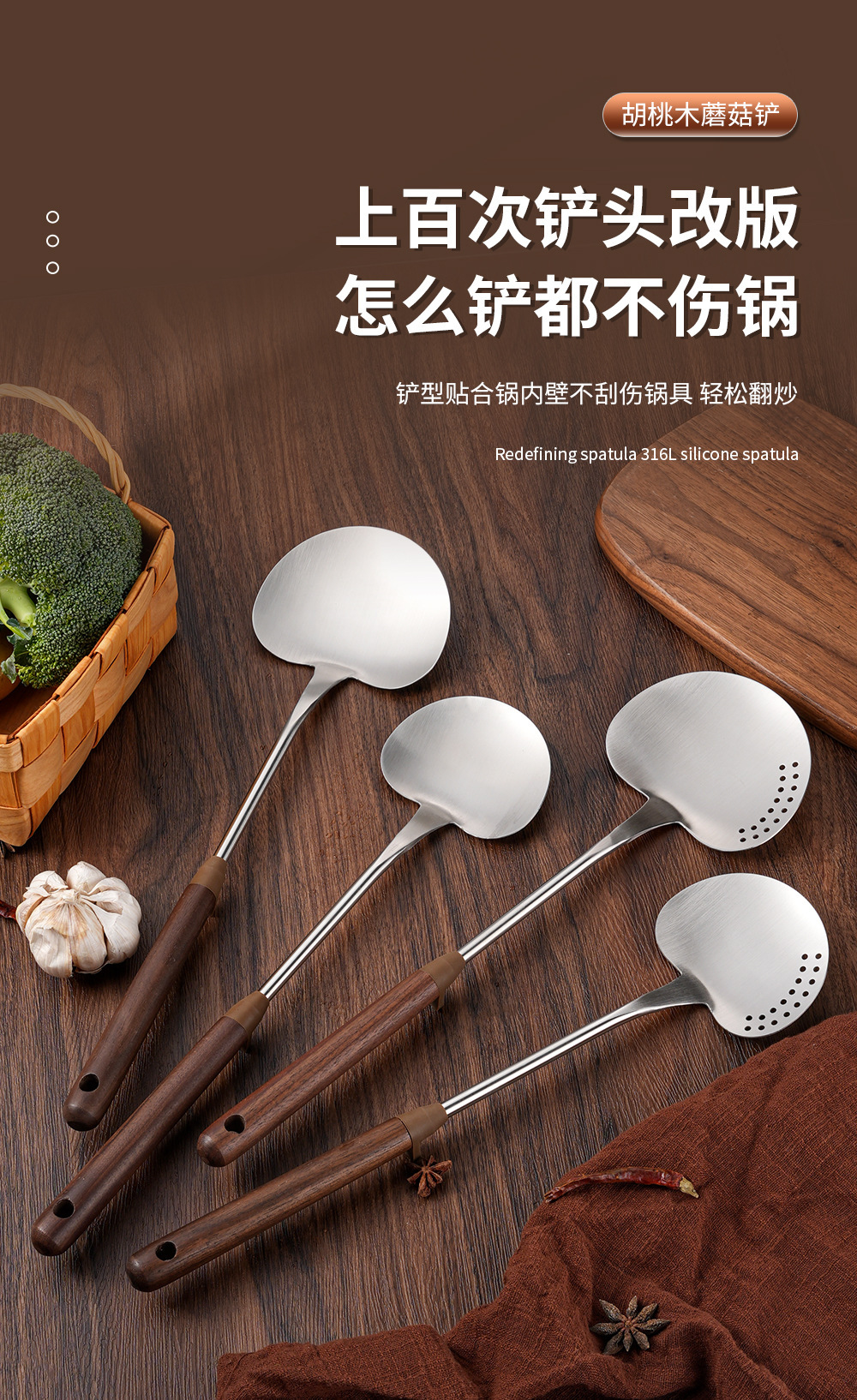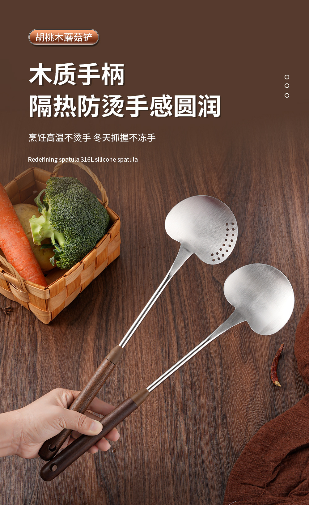 도매 316 스테인레스 스틸 버섯 주걱 호두 손잡이 주걱 Guizhou 주걱 가정용 주방 요리 주걱 두꺼운