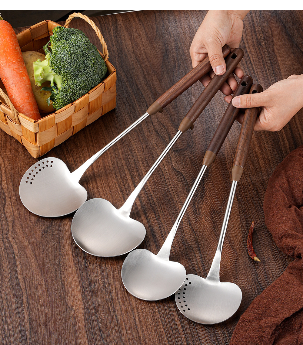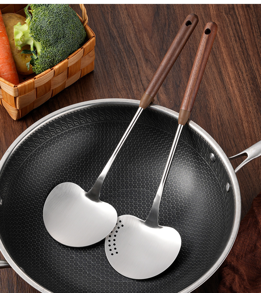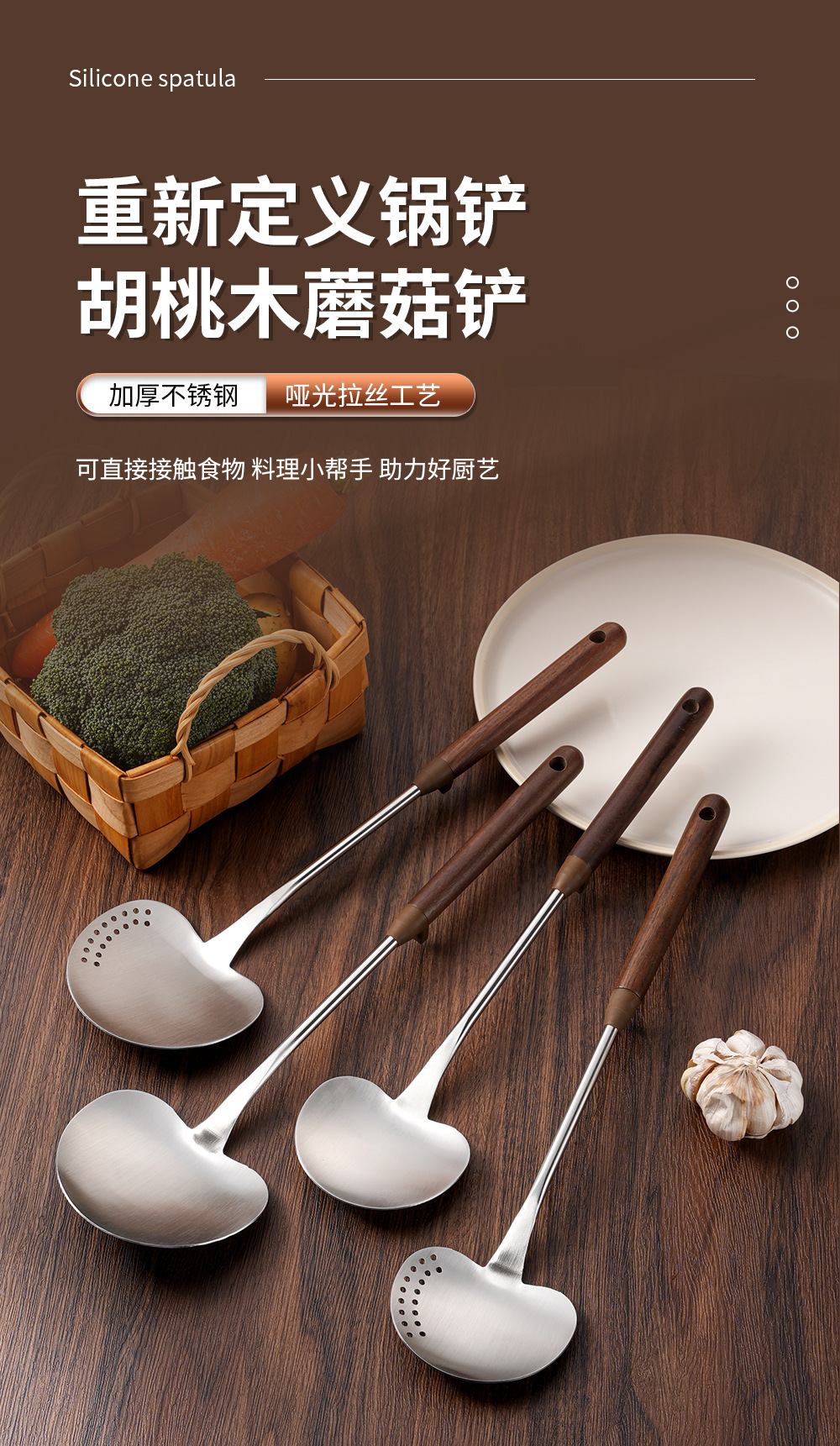 도매 316 스테인레스 스틸 버섯 주걱 호두 손잡이 주걱 Guizhou 주걱 가정용 주방 요리 주걱 두꺼운