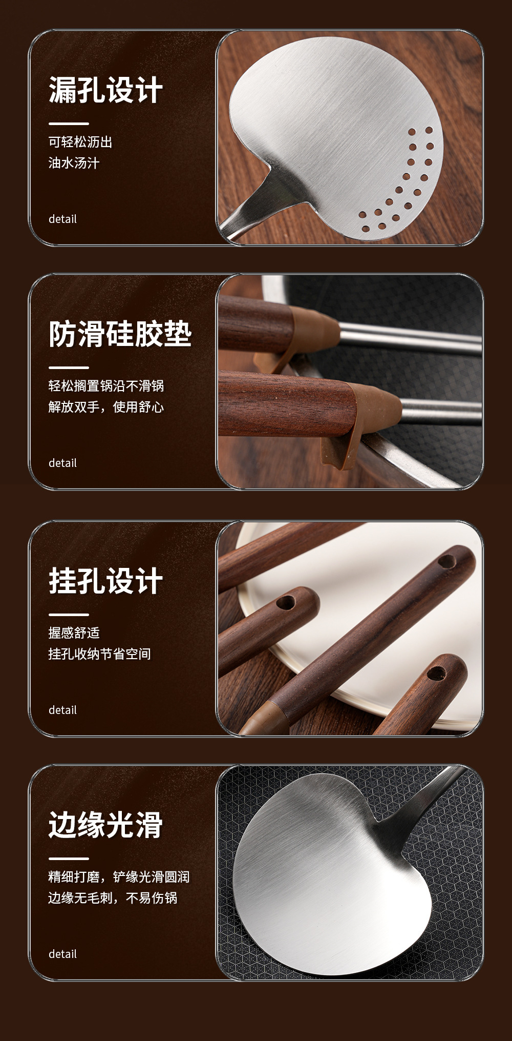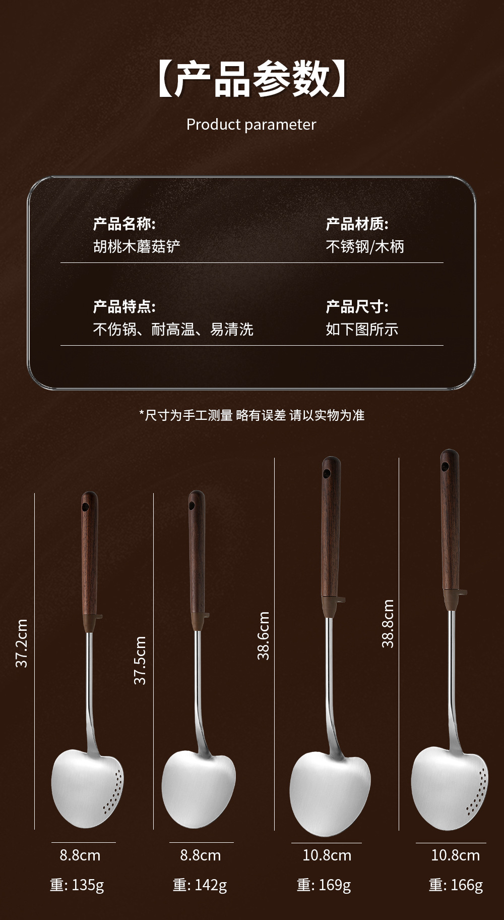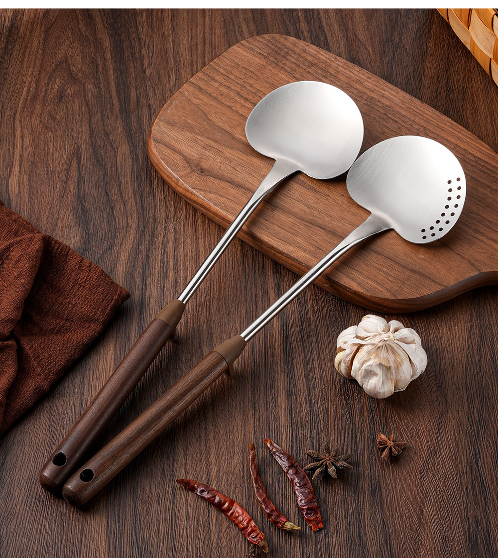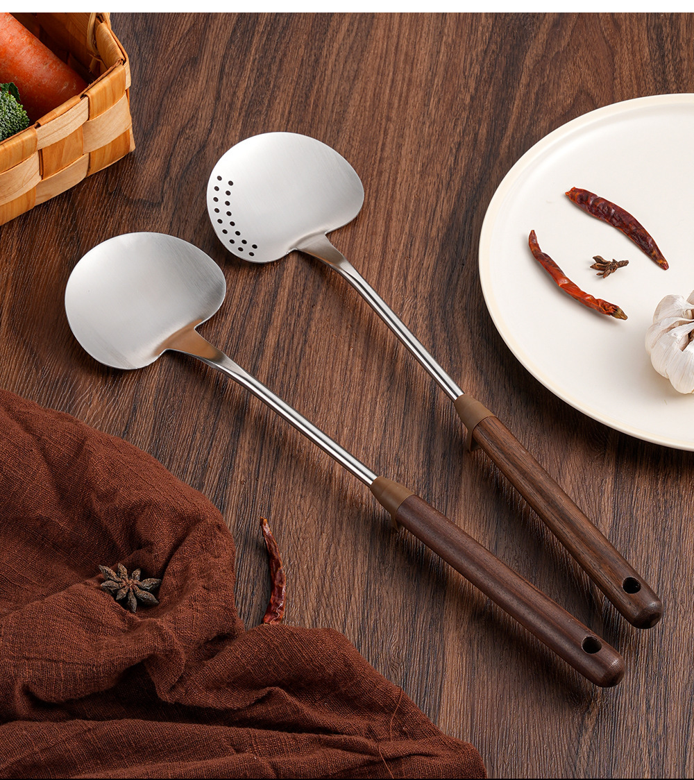 도매 316 스테인레스 스틸 버섯 주걱 호두 손잡이 주걱 Guizhou 주걱 가정용 주방 요리 주걱 두꺼운