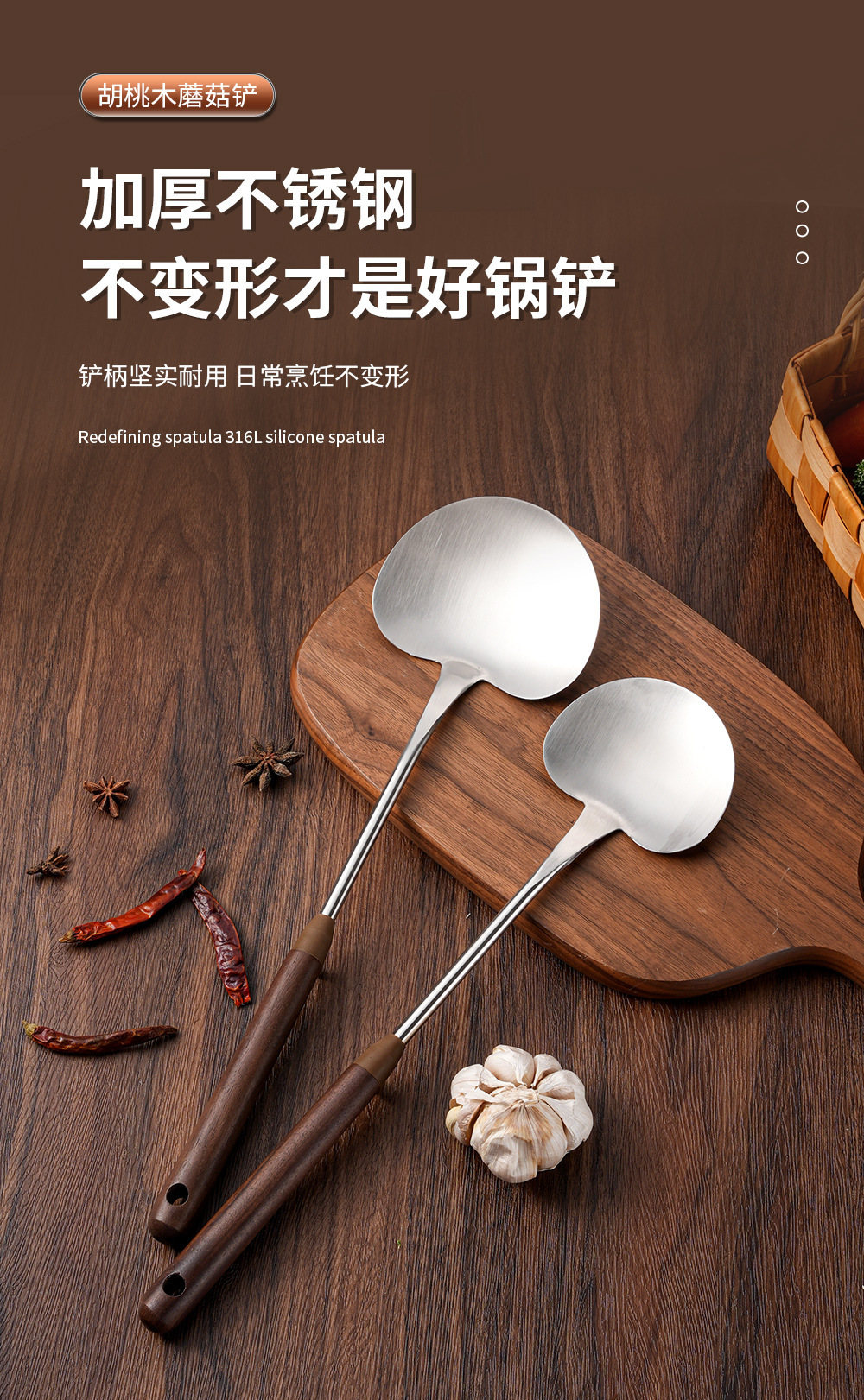 도매 316 스테인레스 스틸 버섯 주걱 호두 손잡이 주걱 Guizhou 주걱 가정용 주방 요리 주걱 두꺼운스토어 가기