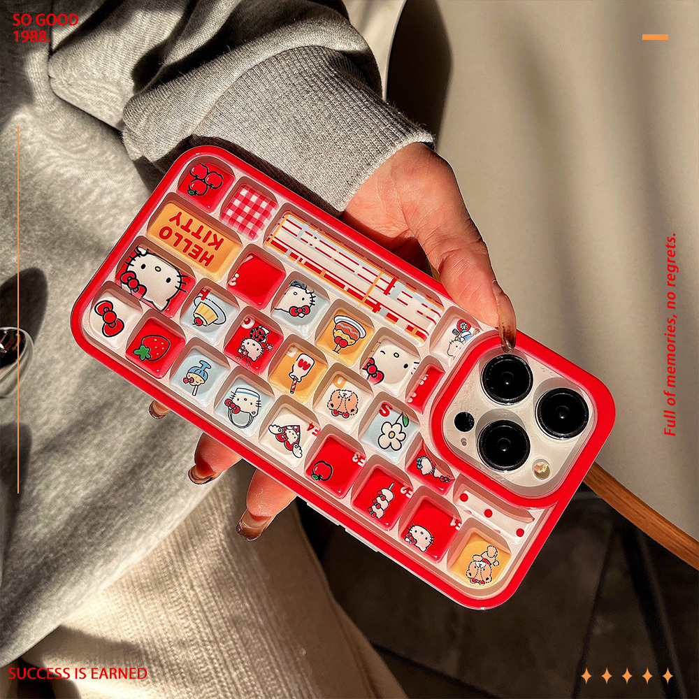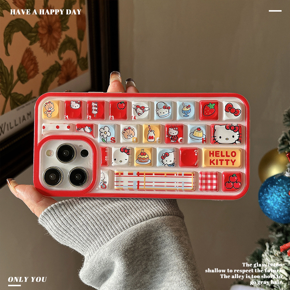 iPhone16 푸딩 개 Apple 15Promax 버튼 휴대폰 케이스에 적합한 새해 키보드 케이스 Hellokitty스토어 가기