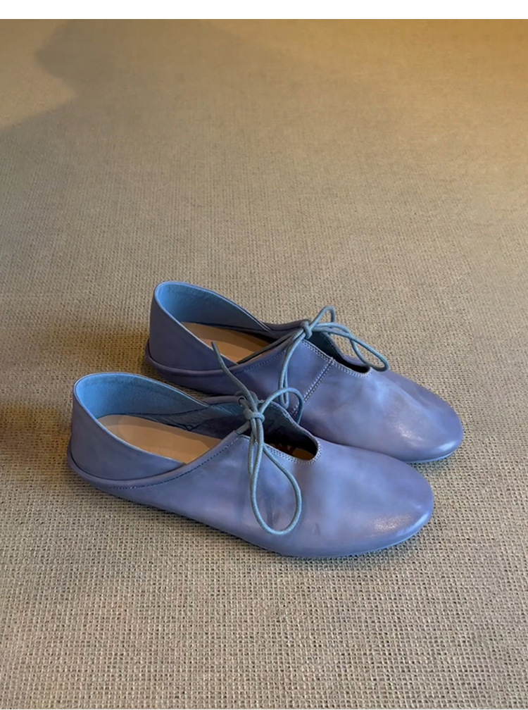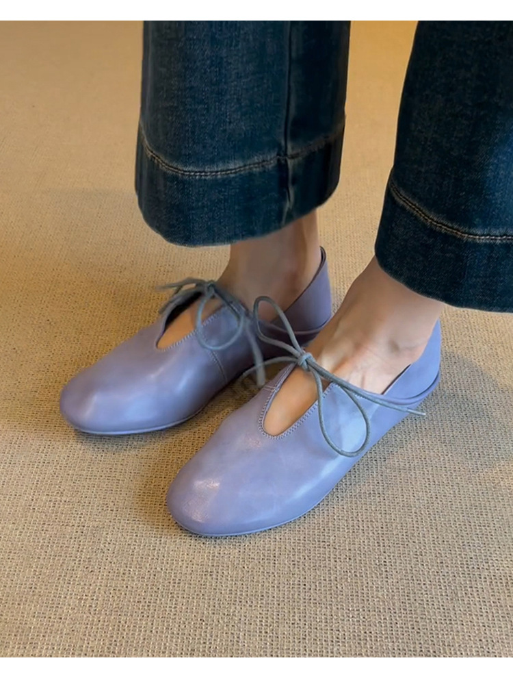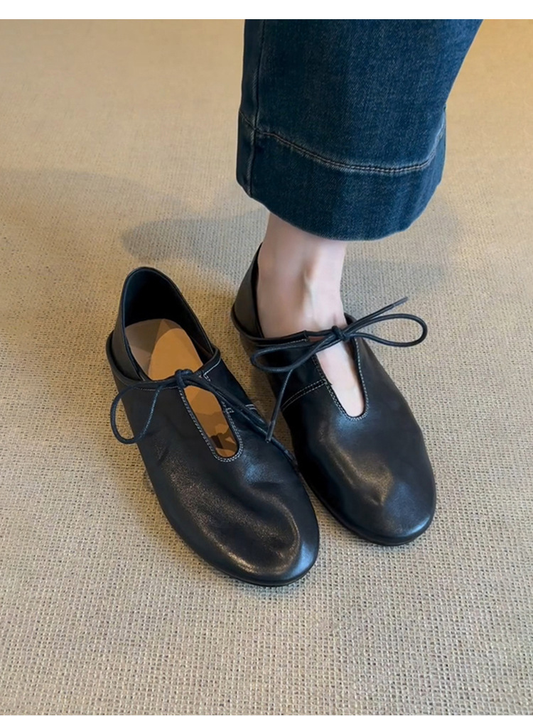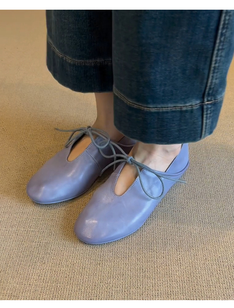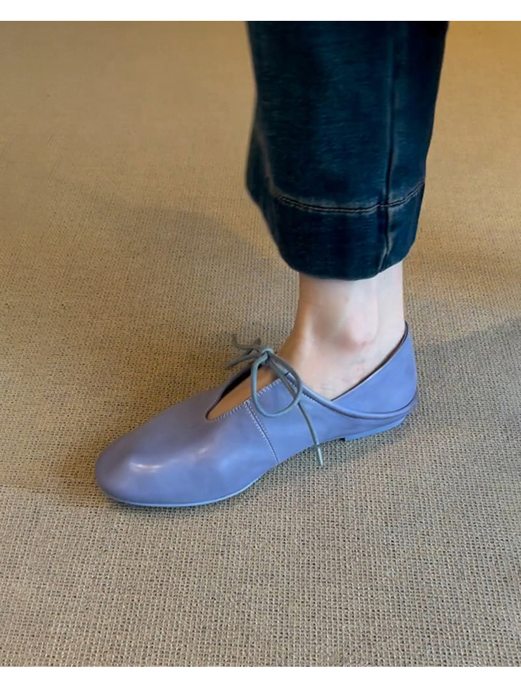빈티지 소프트 가죽 플랫 힐 투웨어 작은 가죽 신발 여성의 이른 봄 새 레이스 업 할로우 아웃 라운드 발가락 싱글 신발스토어 가기