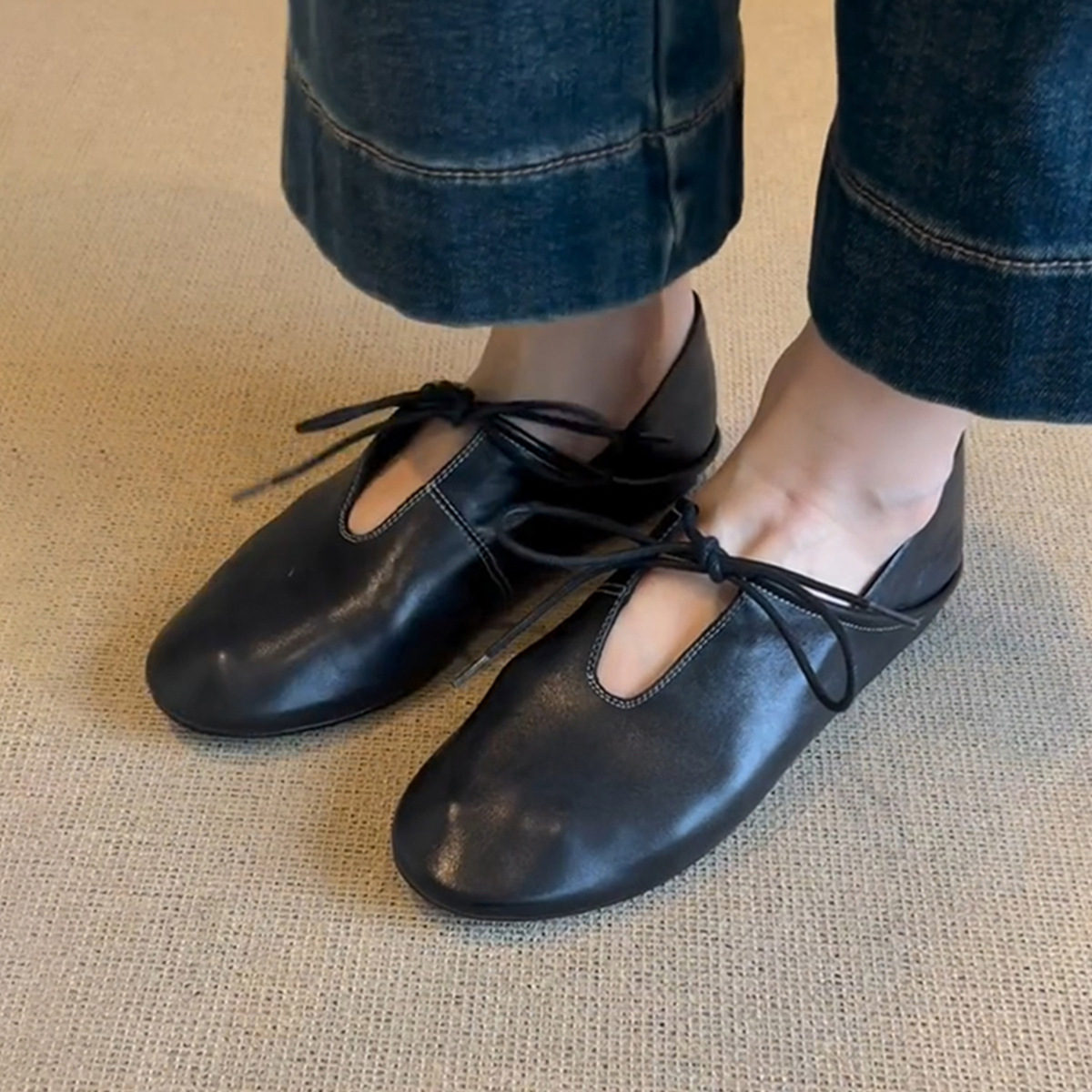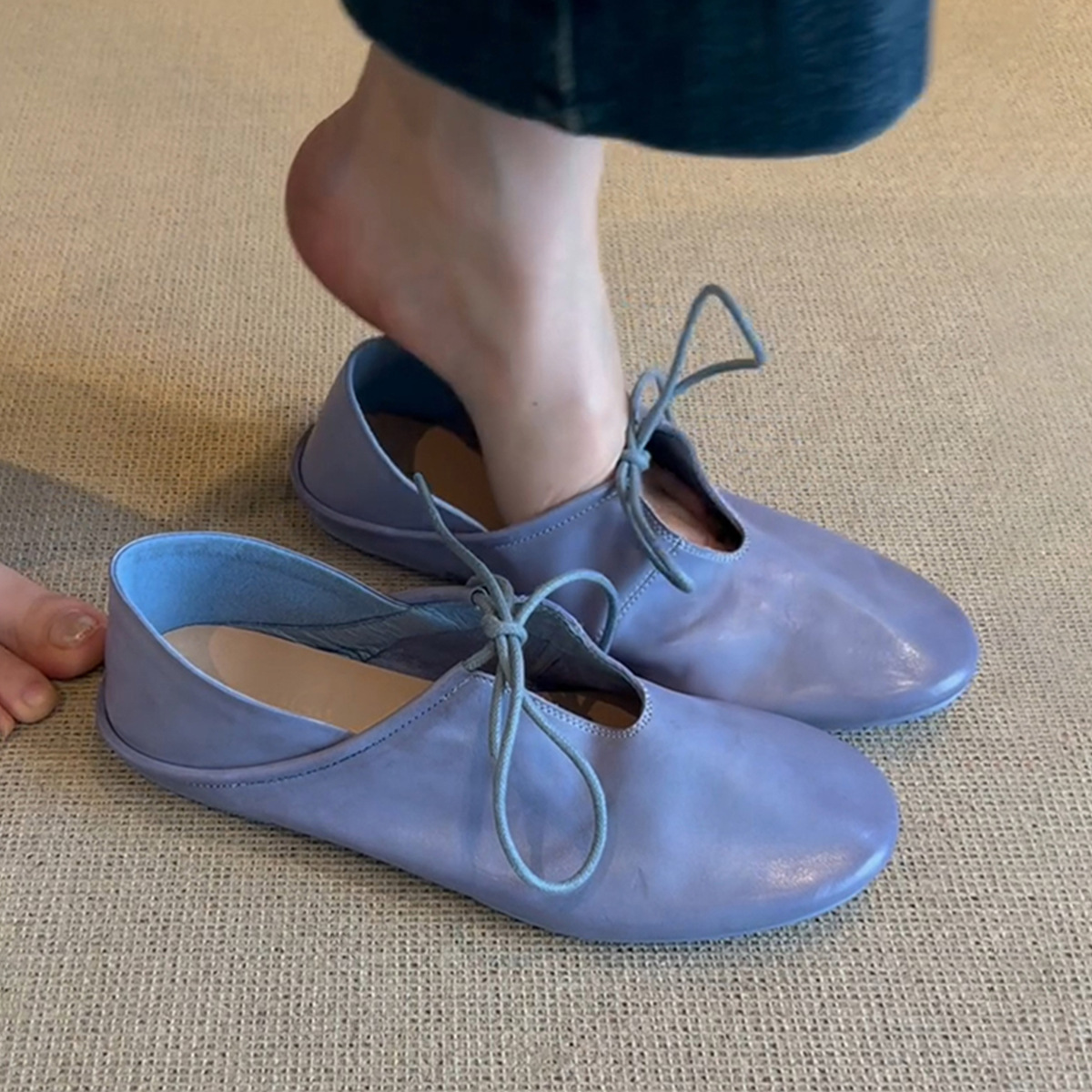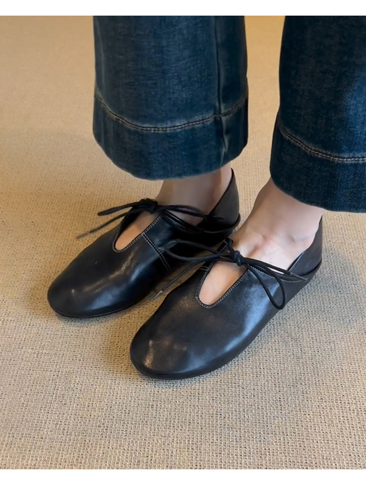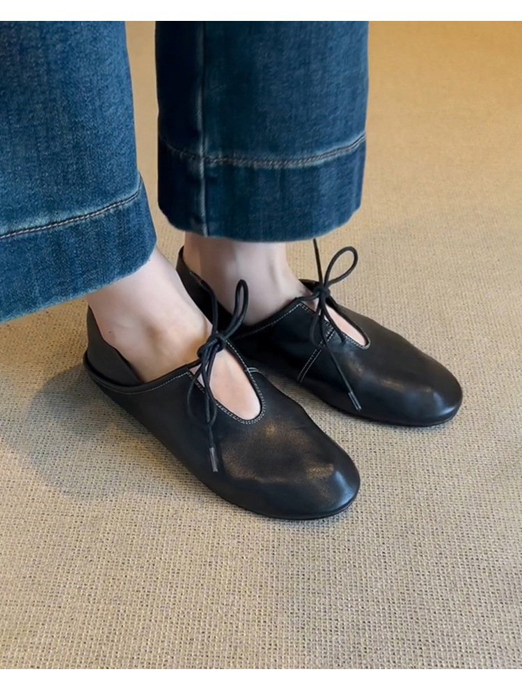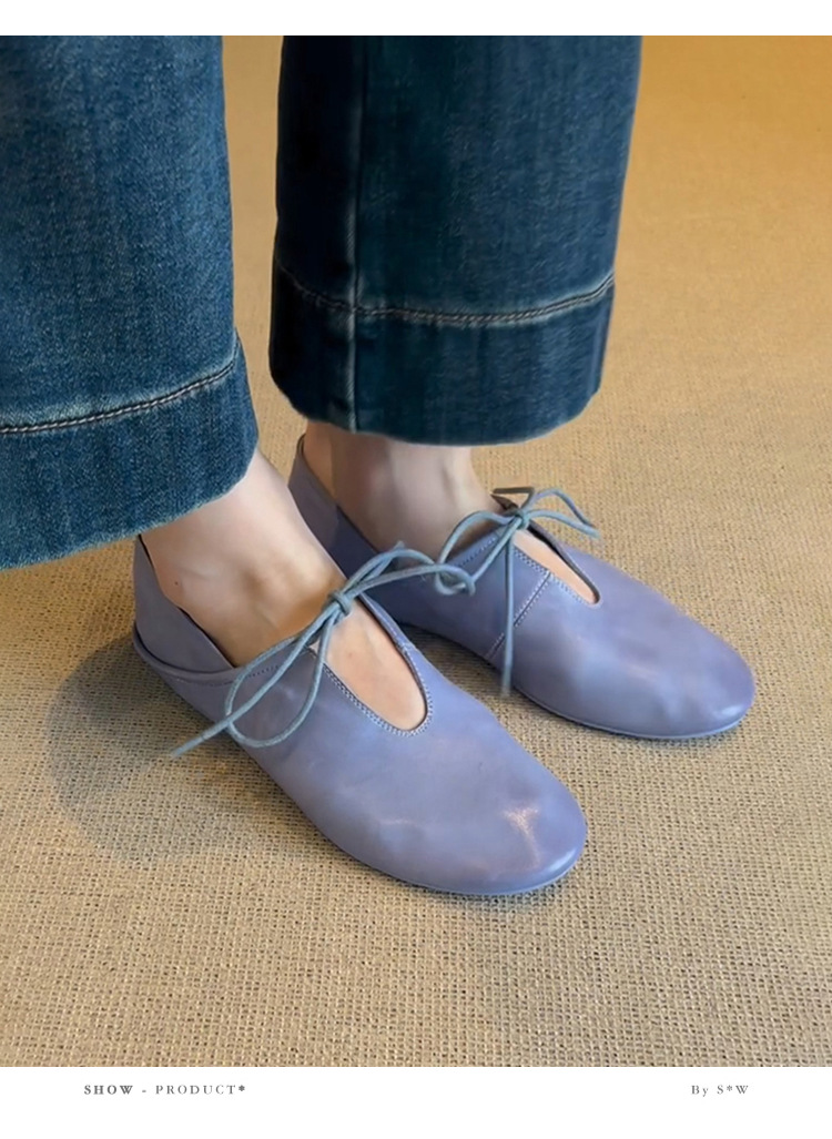 빈티지 소프트 가죽 플랫 힐 투웨어 작은 가죽 신발 여성의 이른 봄 새 레이스 업 할로우 아웃 라운드 발가락 싱글 신발