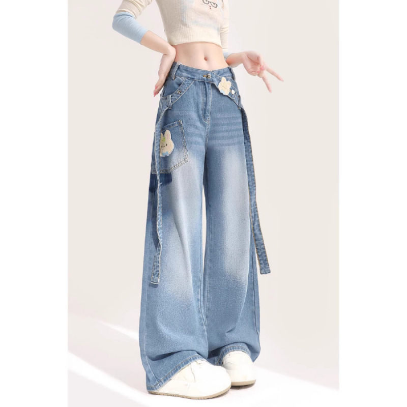 미국의 넓은 다리 청바지 여성의 2024 여름 새로운 디자인 센스 작은 툴링 높은 허리 느슨한 스트레이트 바지스토어 가기