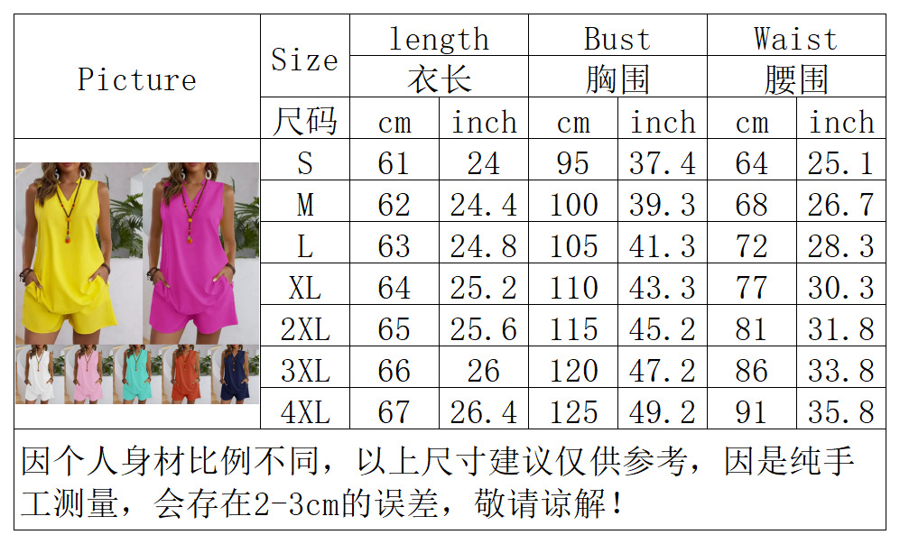 Spot 유럽 및 미국 국경 간 24 여름 AliExpress 솔리드 컬러 민소매 V 넥 캐주얼 탑 루즈 반바지 정장스토어 가기