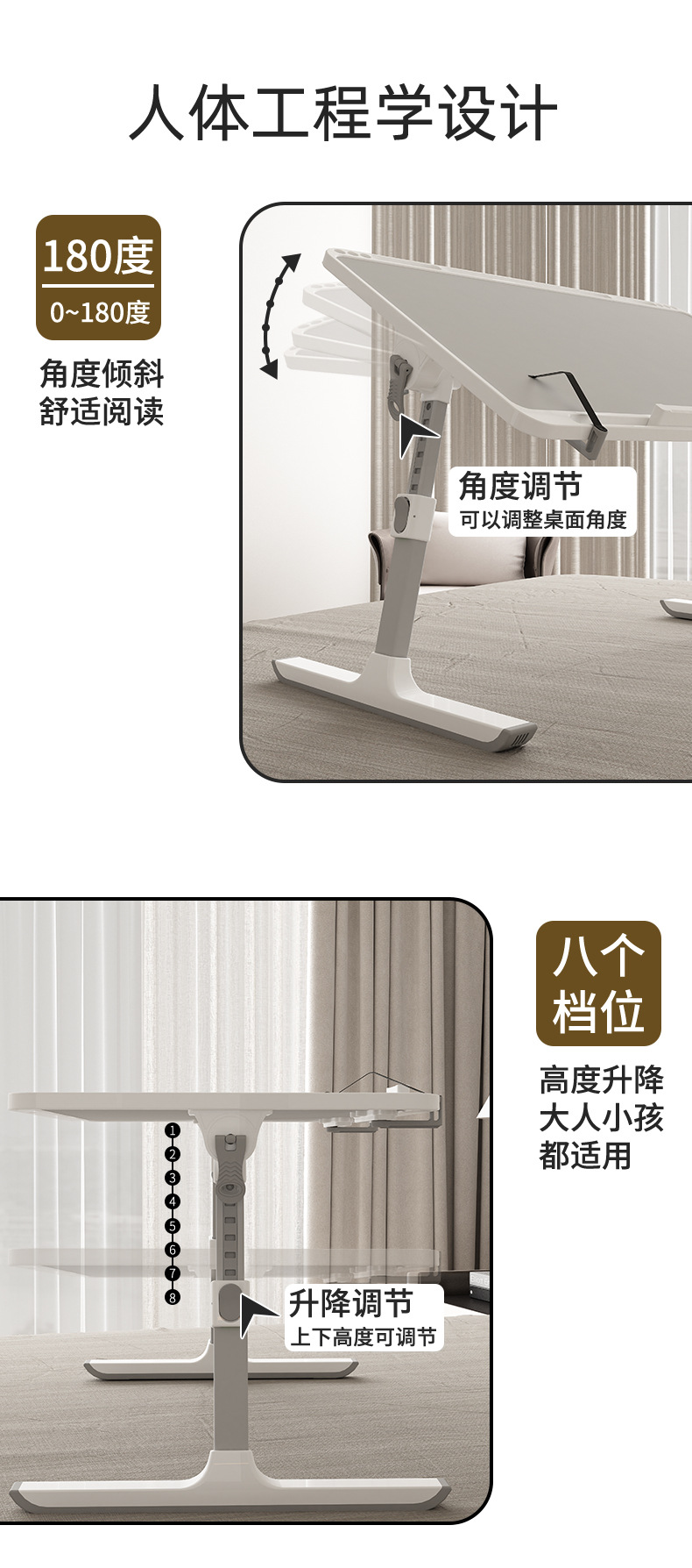 침대 위 작은 테이블, 기숙사 학습 책상, 독서대, 접이식 높이 조절 사무실 테이블, 컴퓨터 테이블, 접이식