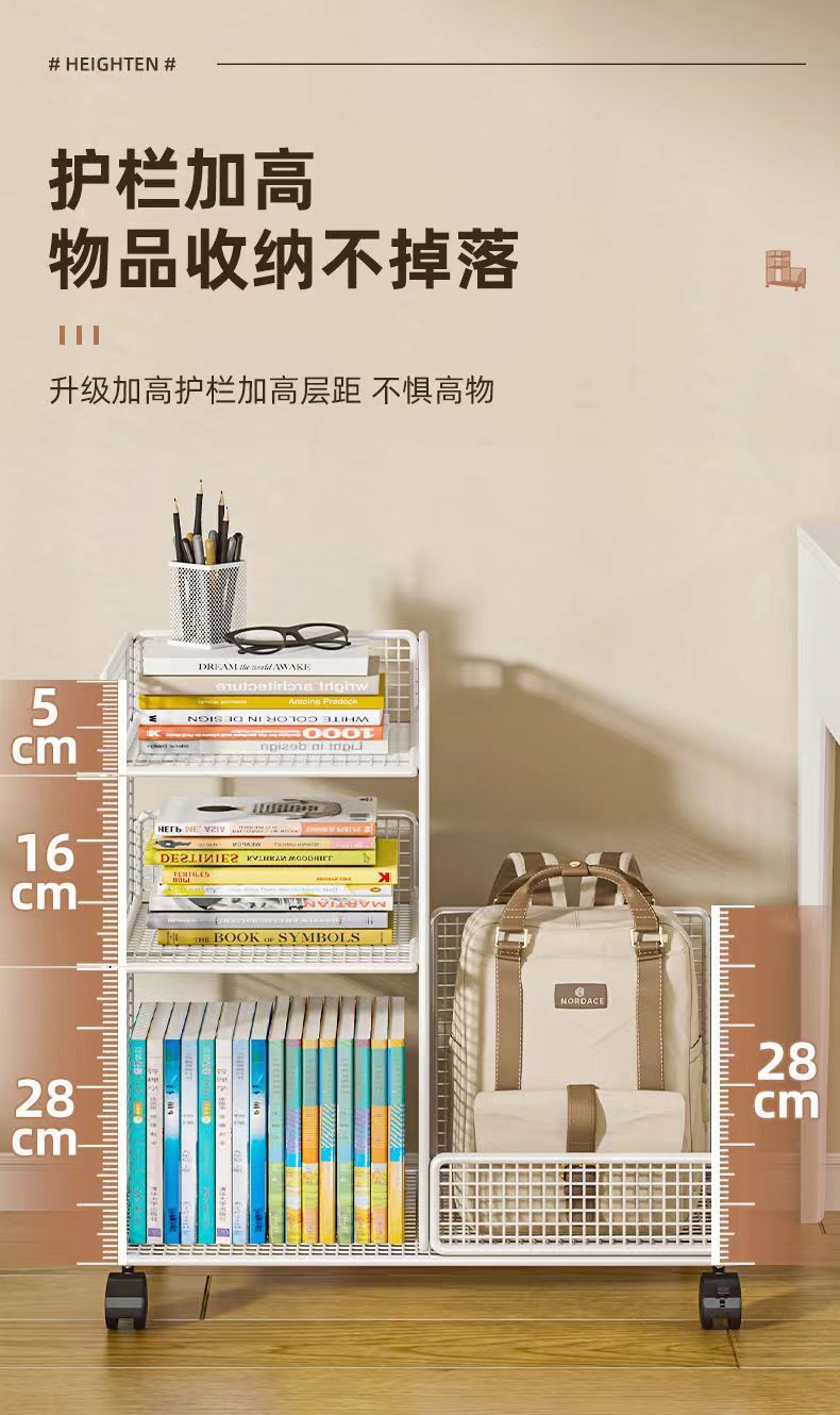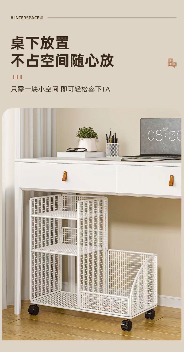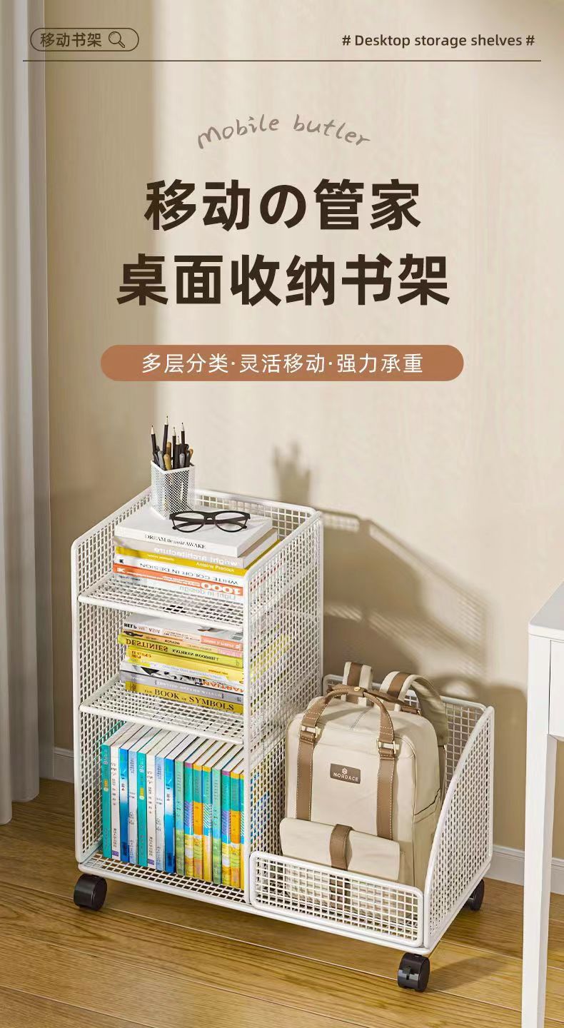 학생용 바퀴가 달린 이동식 책상 밑 책장 수납 선반, 책가방 수납 상자, 책상 옆 어린이 책 수납 선반