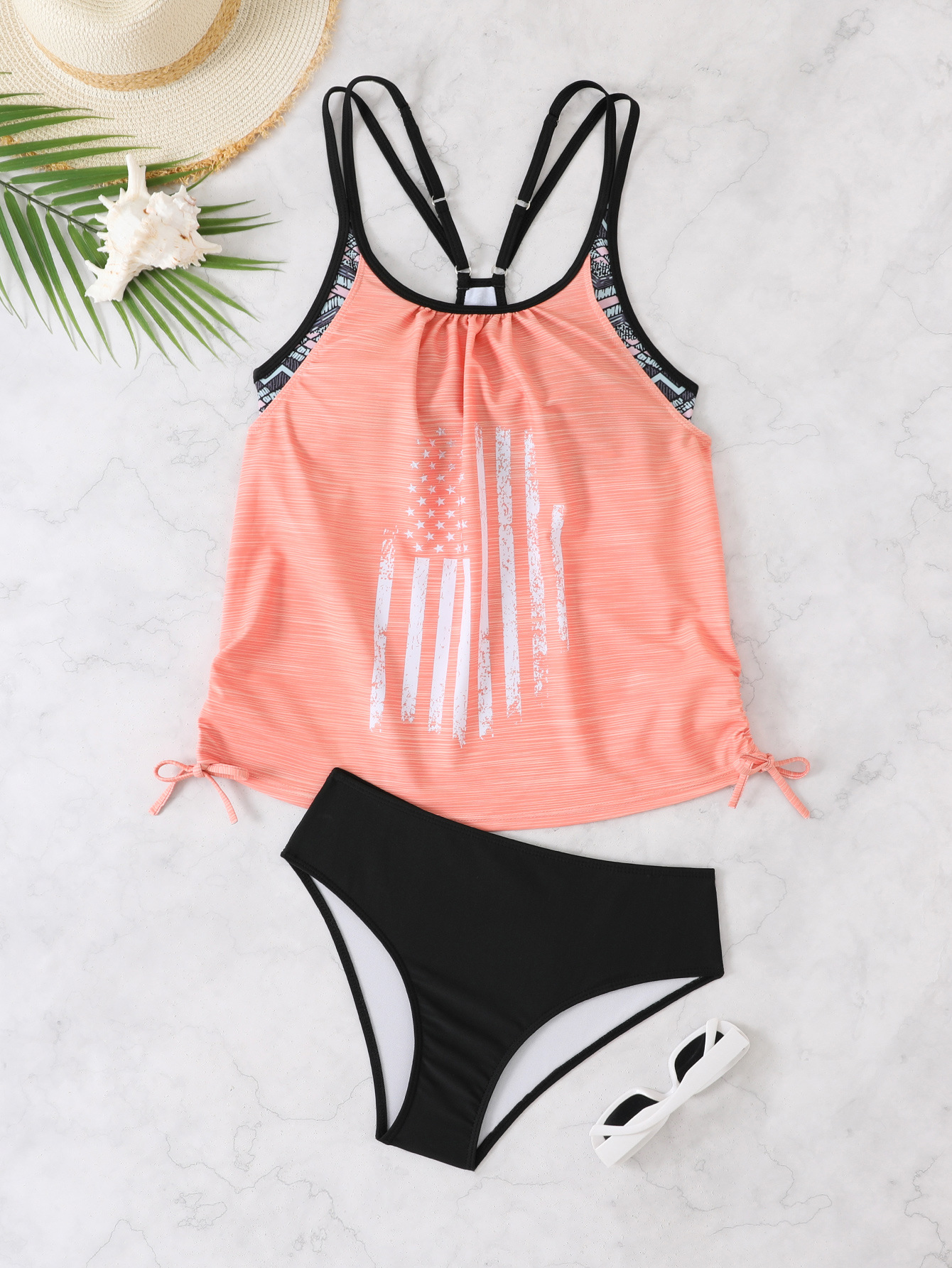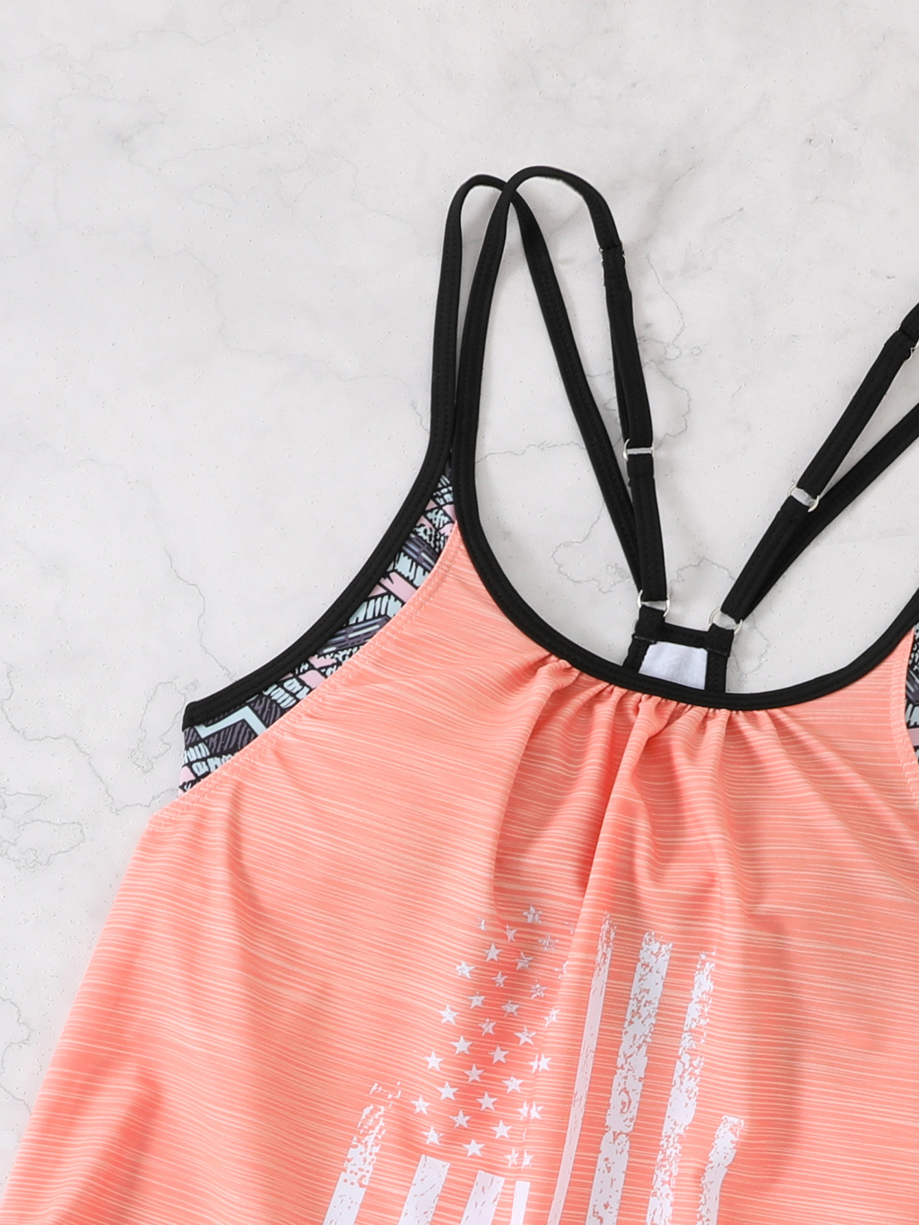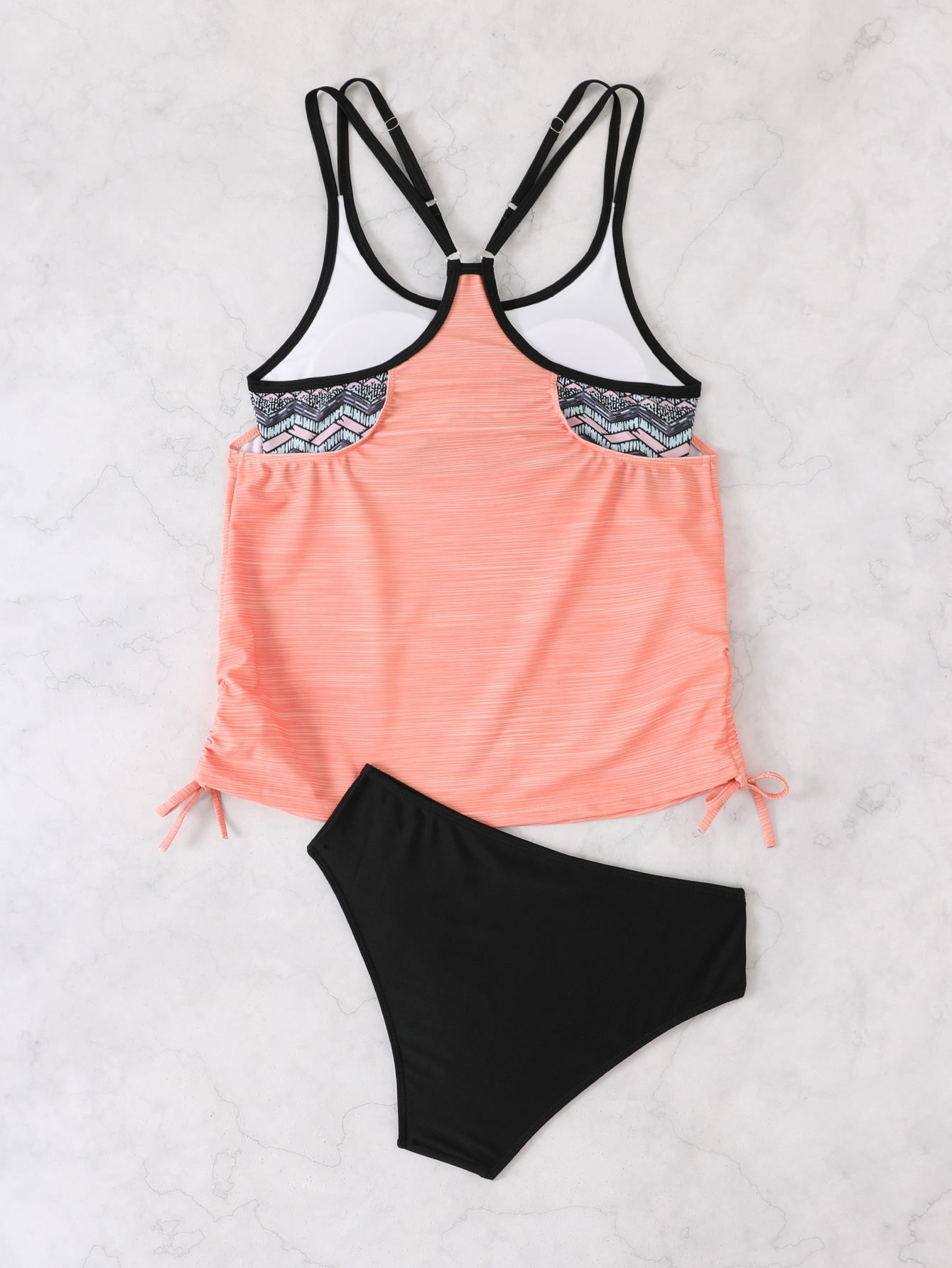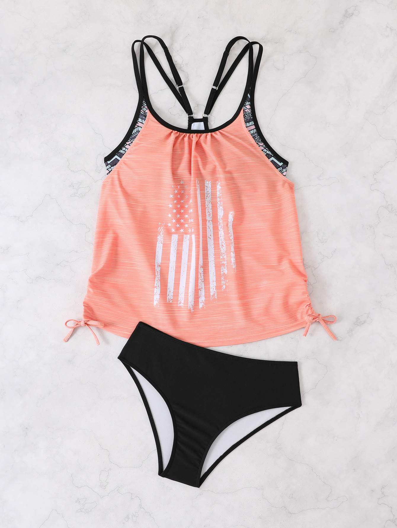 2024 새로운 Loose Drawstring 여성 유럽과 미국의 대외 무역 보수 비키니 캐주얼 투피스 인쇄 수영복 비키니