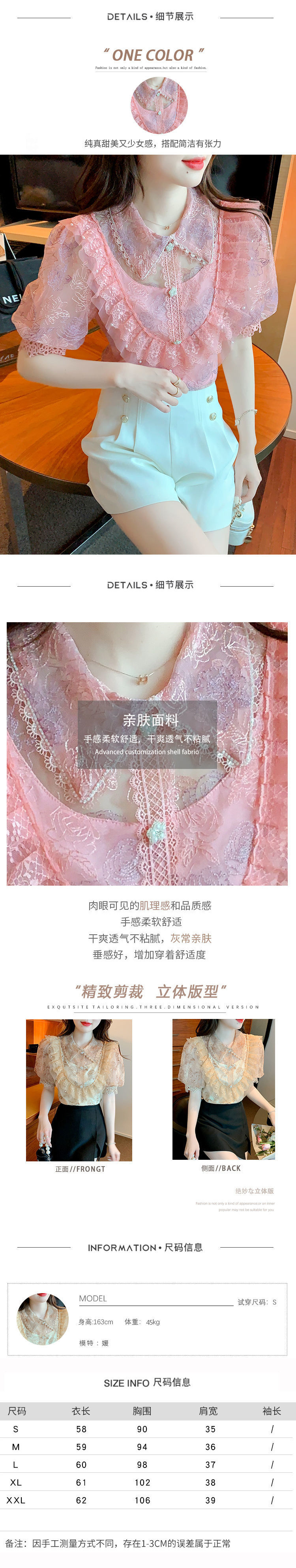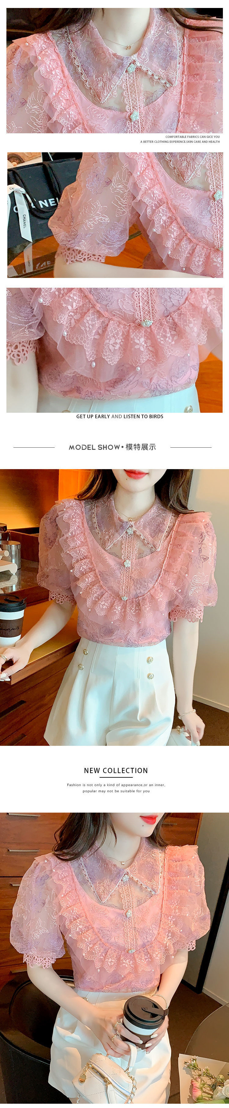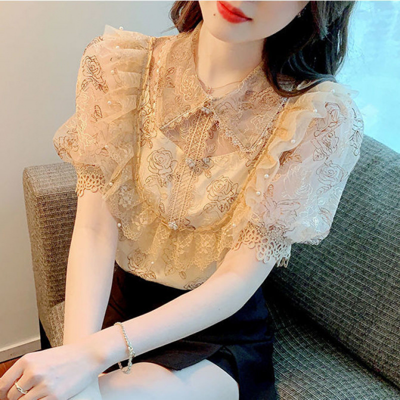 여름 퍼프 슬리브 쉬폰 셔츠 여성 퍼프 슬리브 2025 새로운 궁전 스타일 외국 스타일 레이스 셔츠 반팔 탑스토어 가기