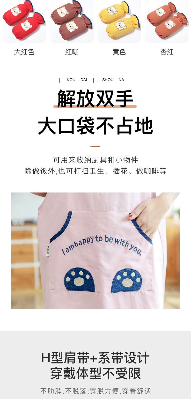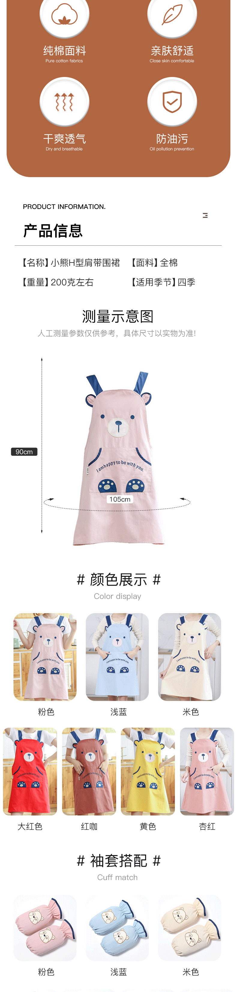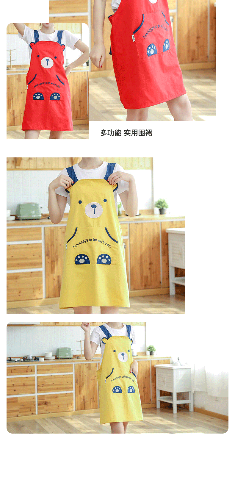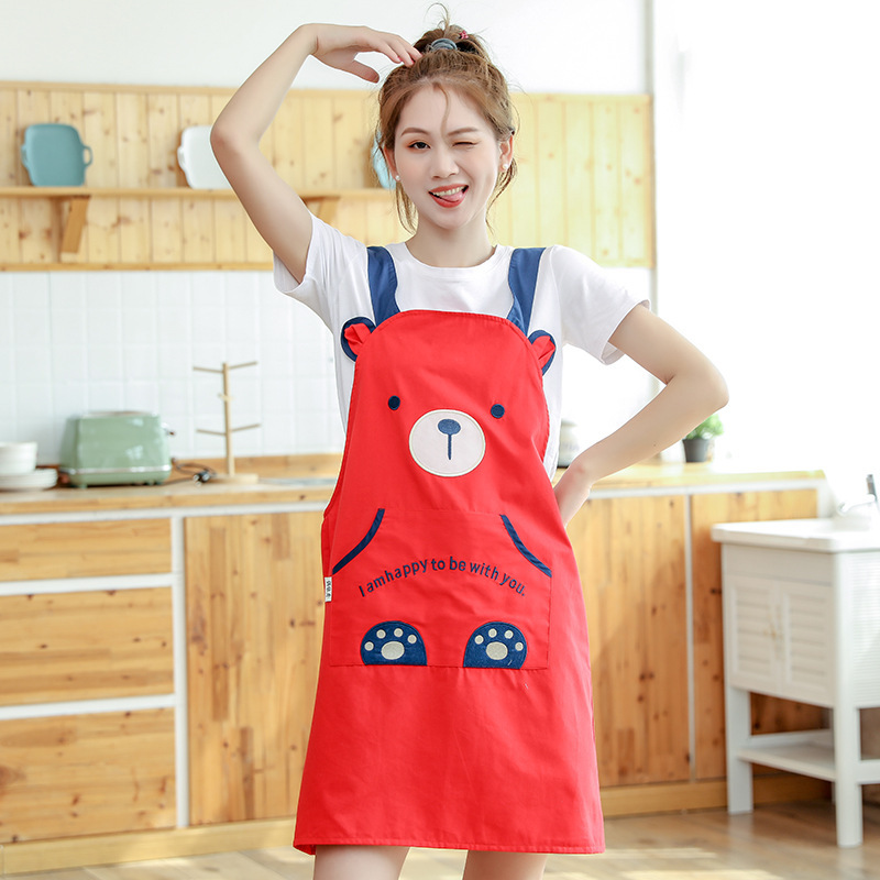 [자체 디자인] 앞치마, 예쁜 만화 곰돌이 디자인, 커피숍, 꽃집, 순면 가정용 방오 작업복