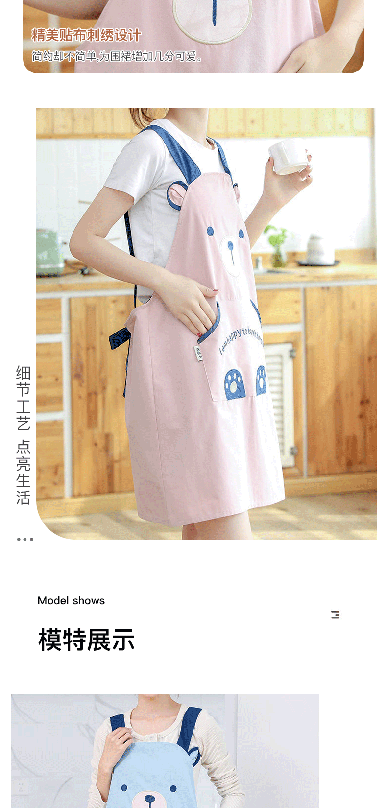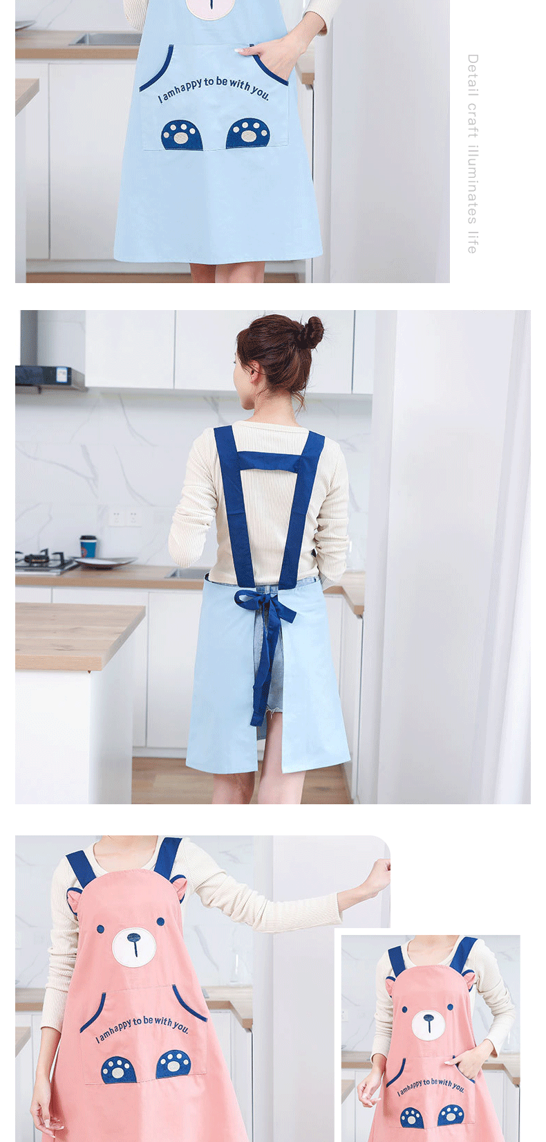 [자체 디자인] 앞치마, 예쁜 만화 곰돌이 디자인, 커피숍, 꽃집, 순면 가정용 방오 작업복스토어 가기