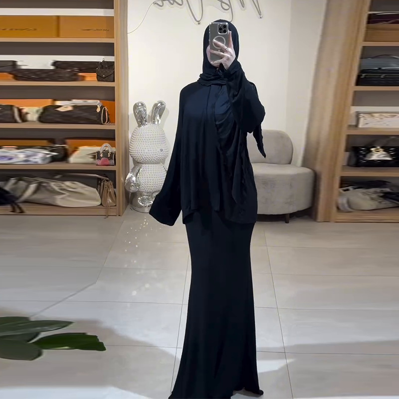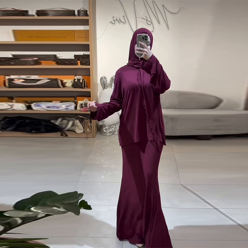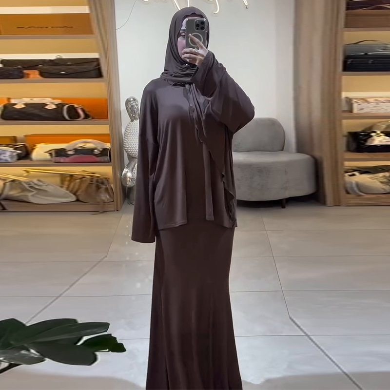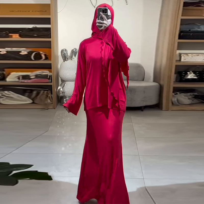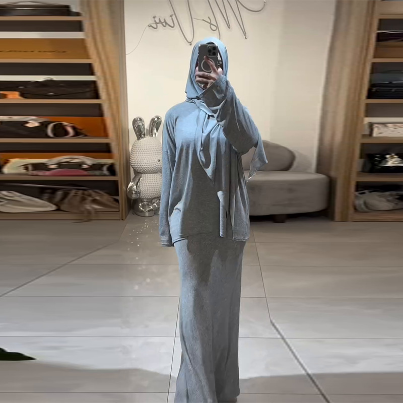 2025 유럽과 미국 아마존 국경 대외 무역 새로운 여성의 불규칙한 긴 소매 간단한 단색 긴 소매 스커트 세트스토어 가기