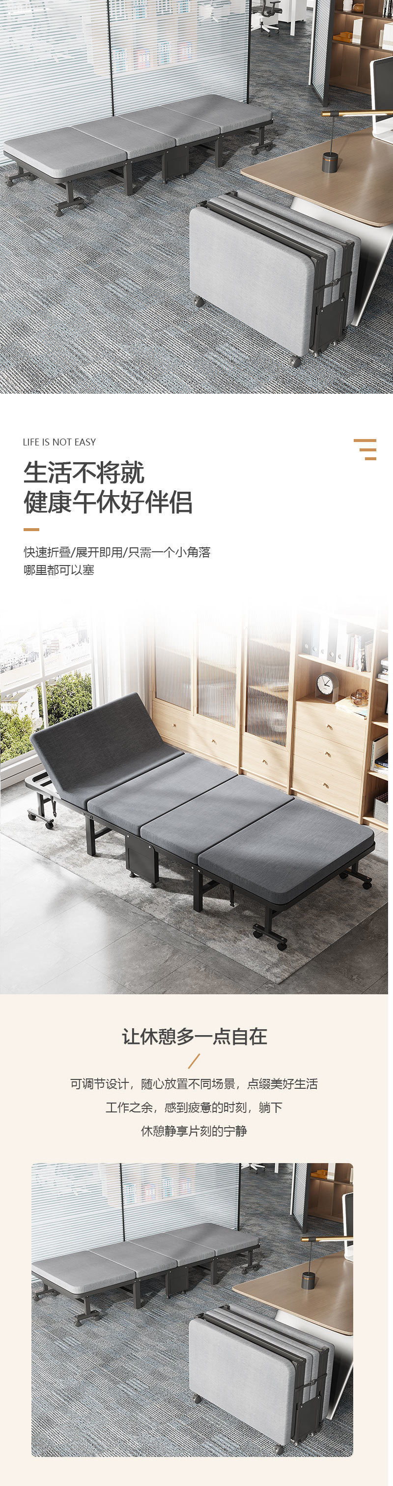 접이식 낮잠 침대 사무실 낮잠 싱글 침대 가정용 하드 보드 침대 다기능 안락 의자 60% off 휴대용스토어 가기