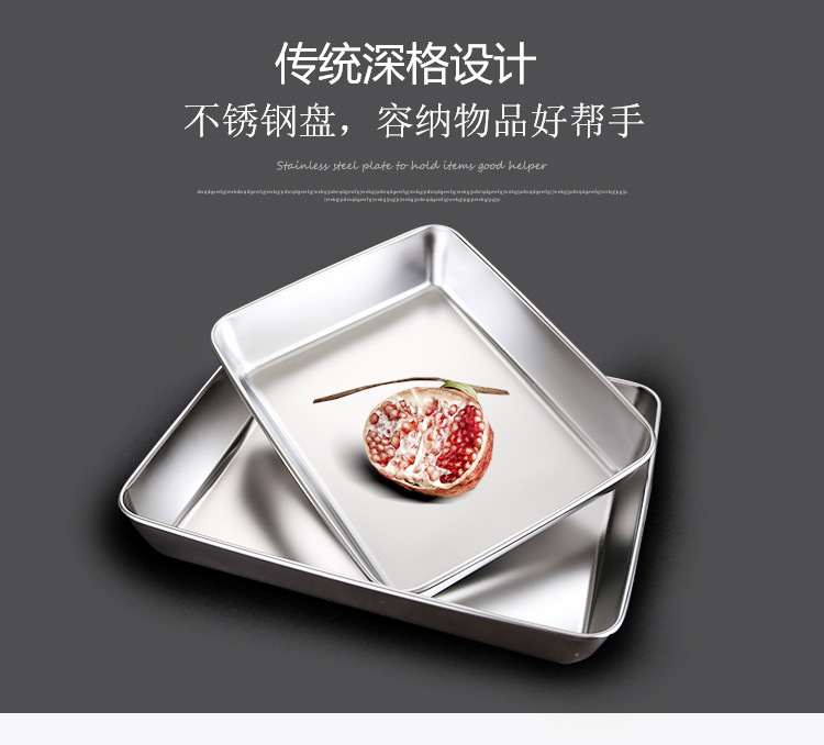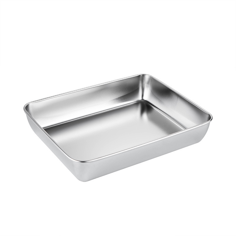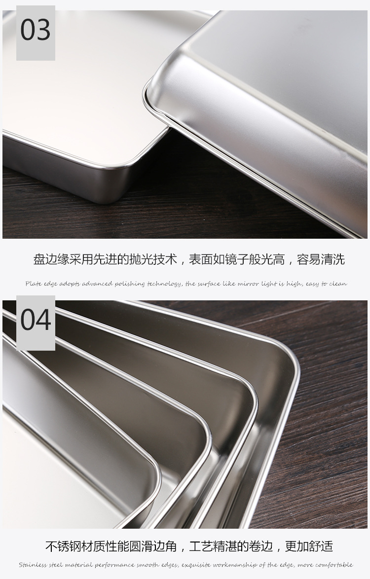 304 스테인레스 스틸 플레이트 패스트 푸드 직사각형 플레이트 평평한 바닥 플레이트 차가운 접시 찐 케이크 당나귀-젤라틴 타월 접시 트레이 좁은 사이드 트레이