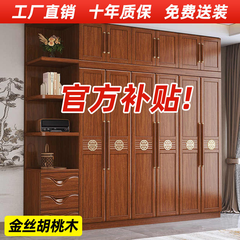 새로운 중국 스타일 호두 나무 옷장 홈 침실 작은 아파트 스토리지 캐비닛 경제적 인 대용량 옷장 도매스토어 가기
