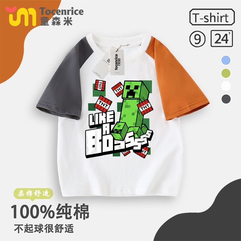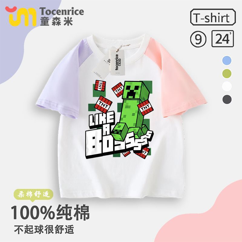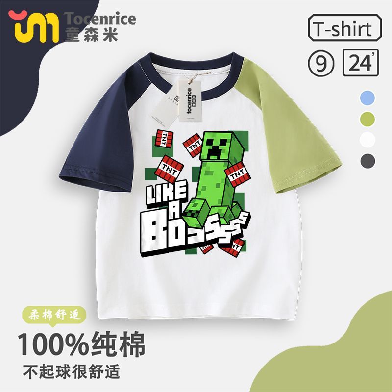Minecraft 공동 브랜드 반팔 티셔츠 소년 Creeper Enderman 아동복 여름 순수 코튼 반팔 탑스토어 가기