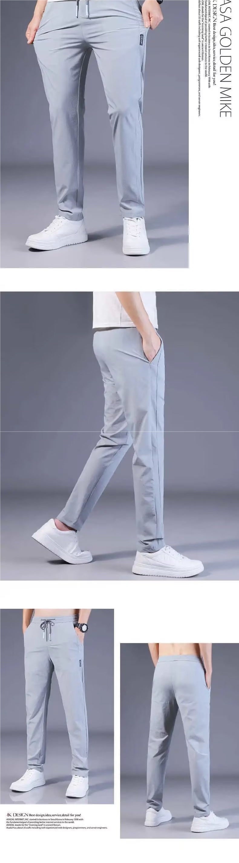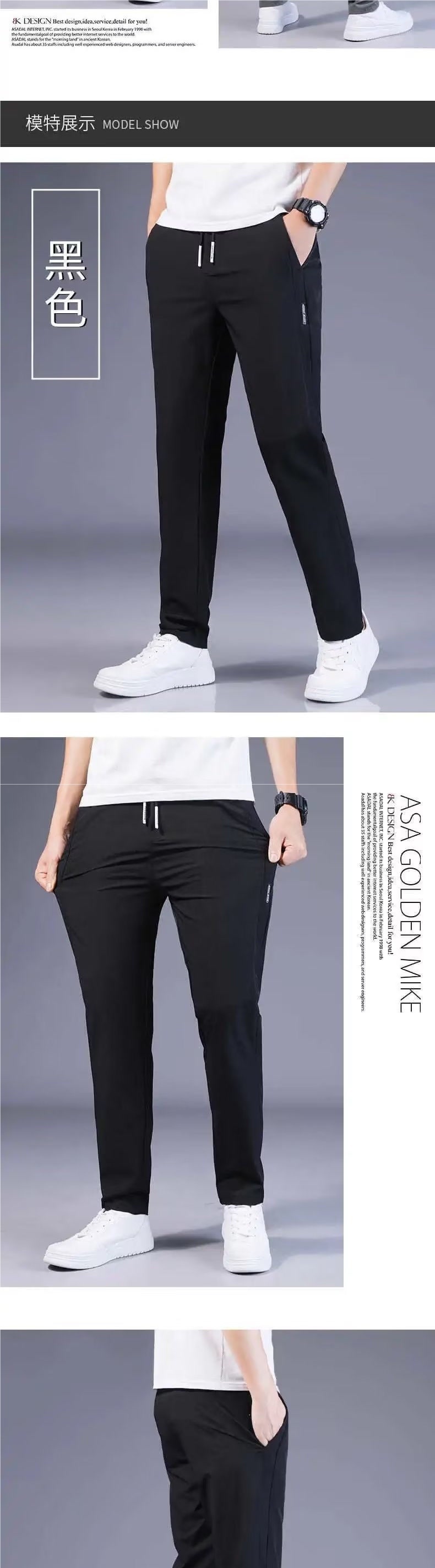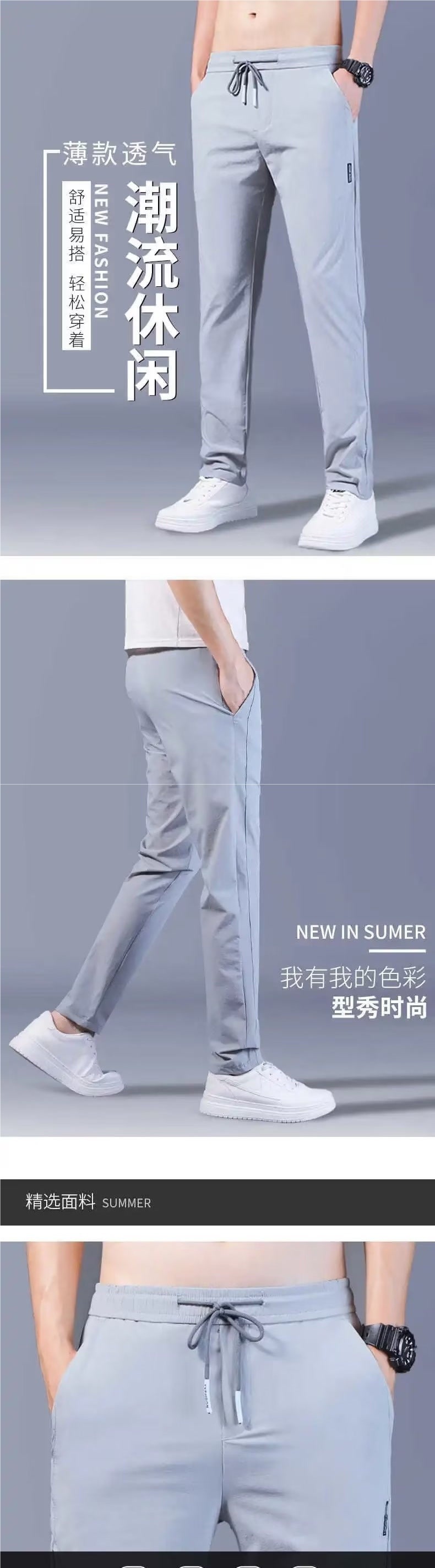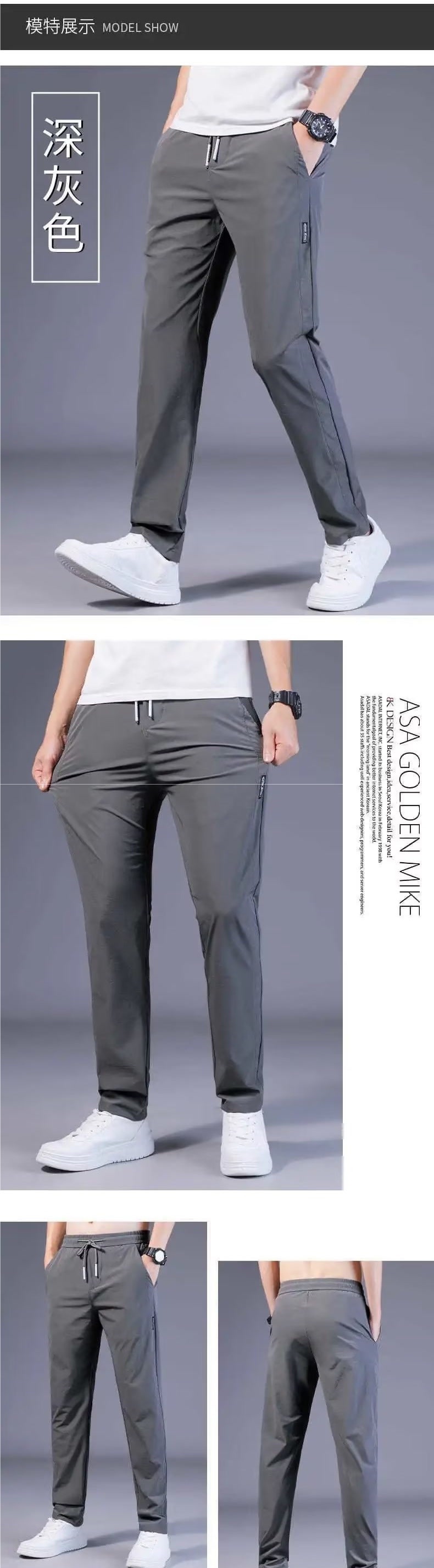 여름 남성용 얇은 속건 캐주얼 바지, 루즈한 대형 스트레이트 팬츠, 신축성 있고 내구성이 뛰어난 스포츠 아이스 실크 바지스토어 가기