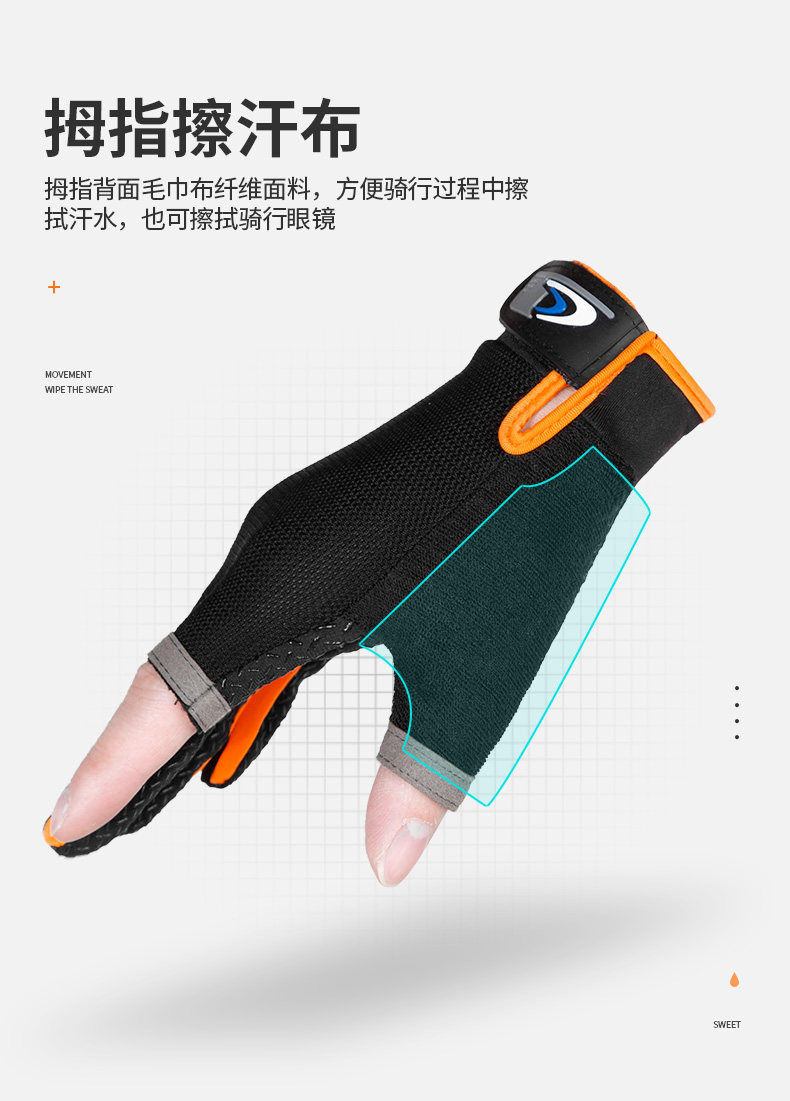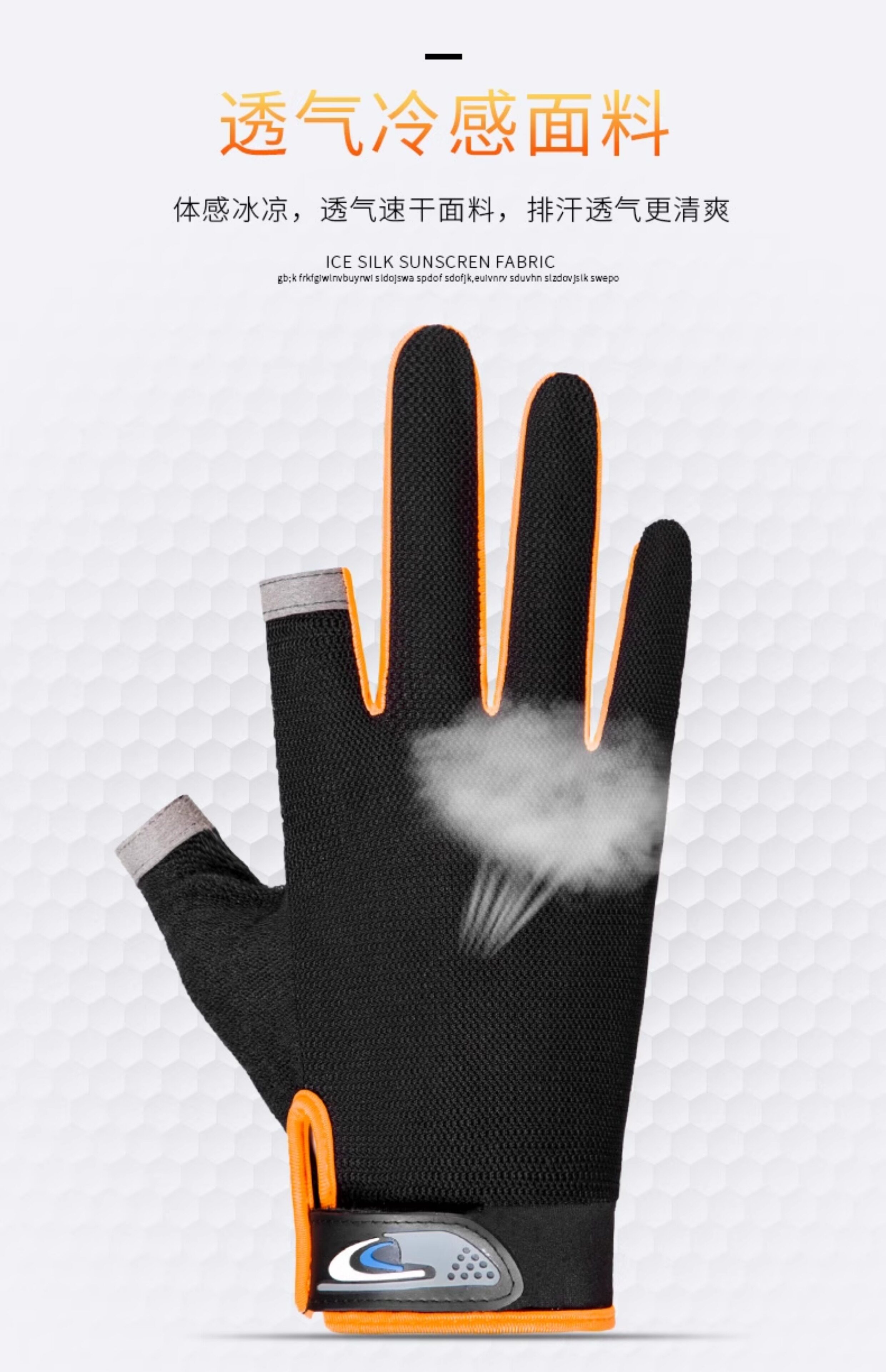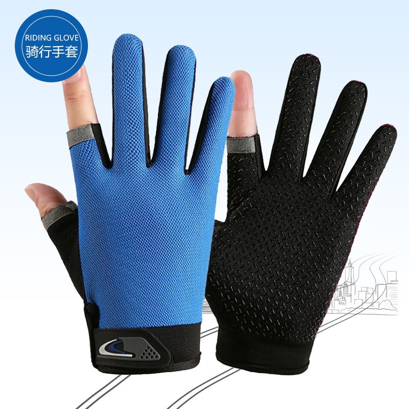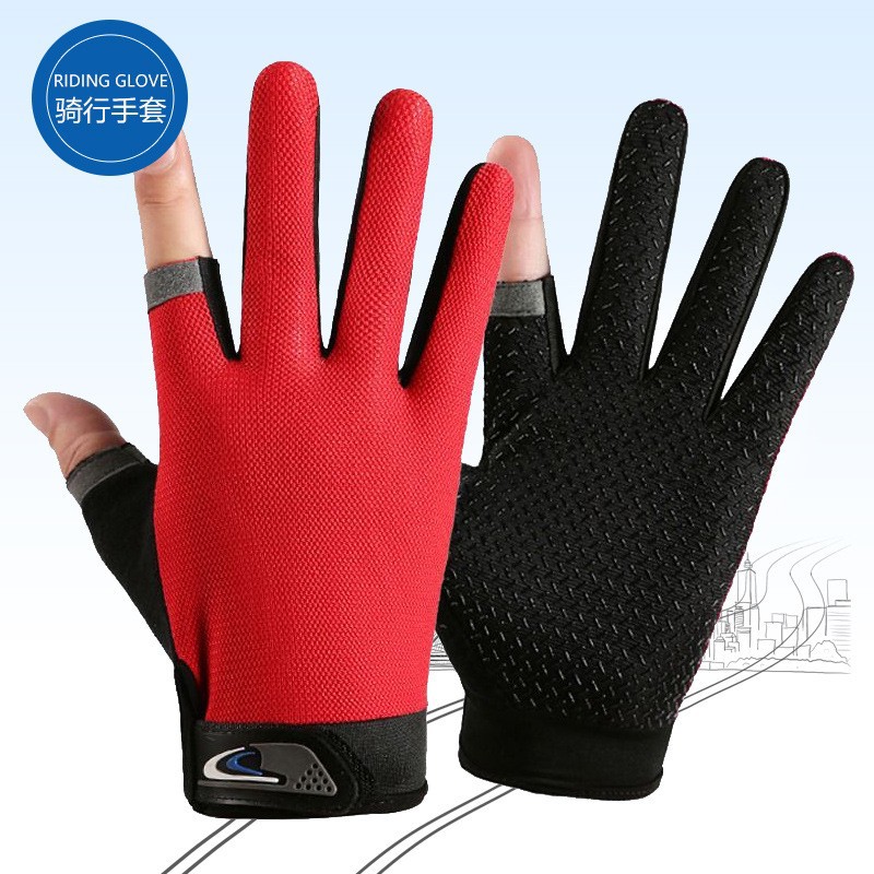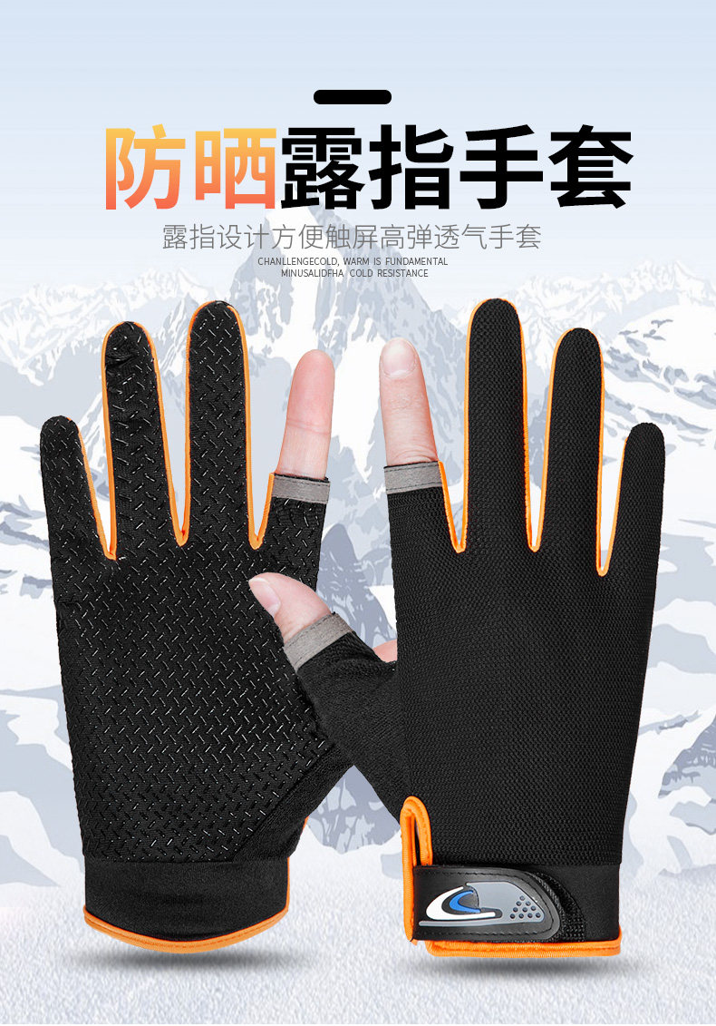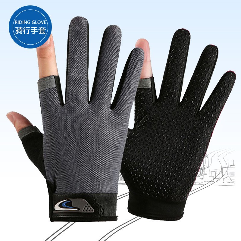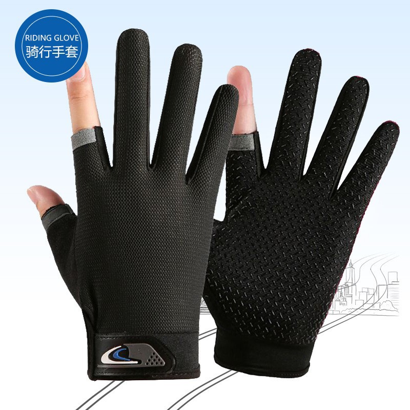 여름용 자외선 차단 장갑, 두 손가락 노출형, 남녀공용, 얇고 통기성 좋으며 속건성, 미끄럼 방지, 내마모성, 야외 라이딩 장갑, 재고 있음