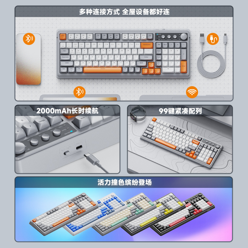 AOC GK210 Bluetooth 무선 3 모드 기계식 키보드 데스크탑 노트북 오피스 게임 새로운 스타일